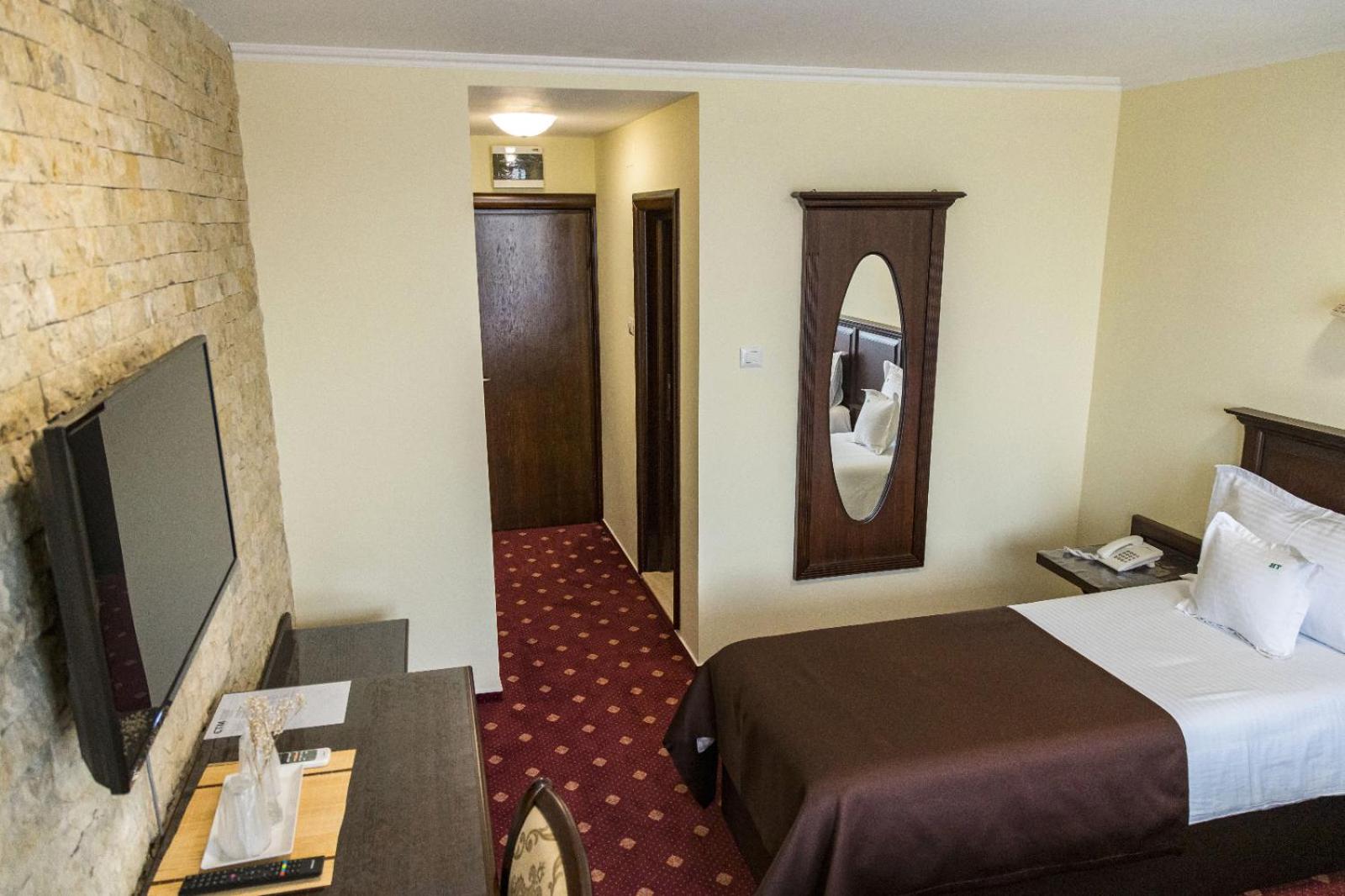 Am ramas cazati o noapte dupa ce am avut un eveniment in restaurantul hotelului, unde s-a consumat mancare si bautură excelente, din productia proprie am inteles. Locatie de lux, intr-o zona cu multa istorie, curatenia si servirea impecabile.