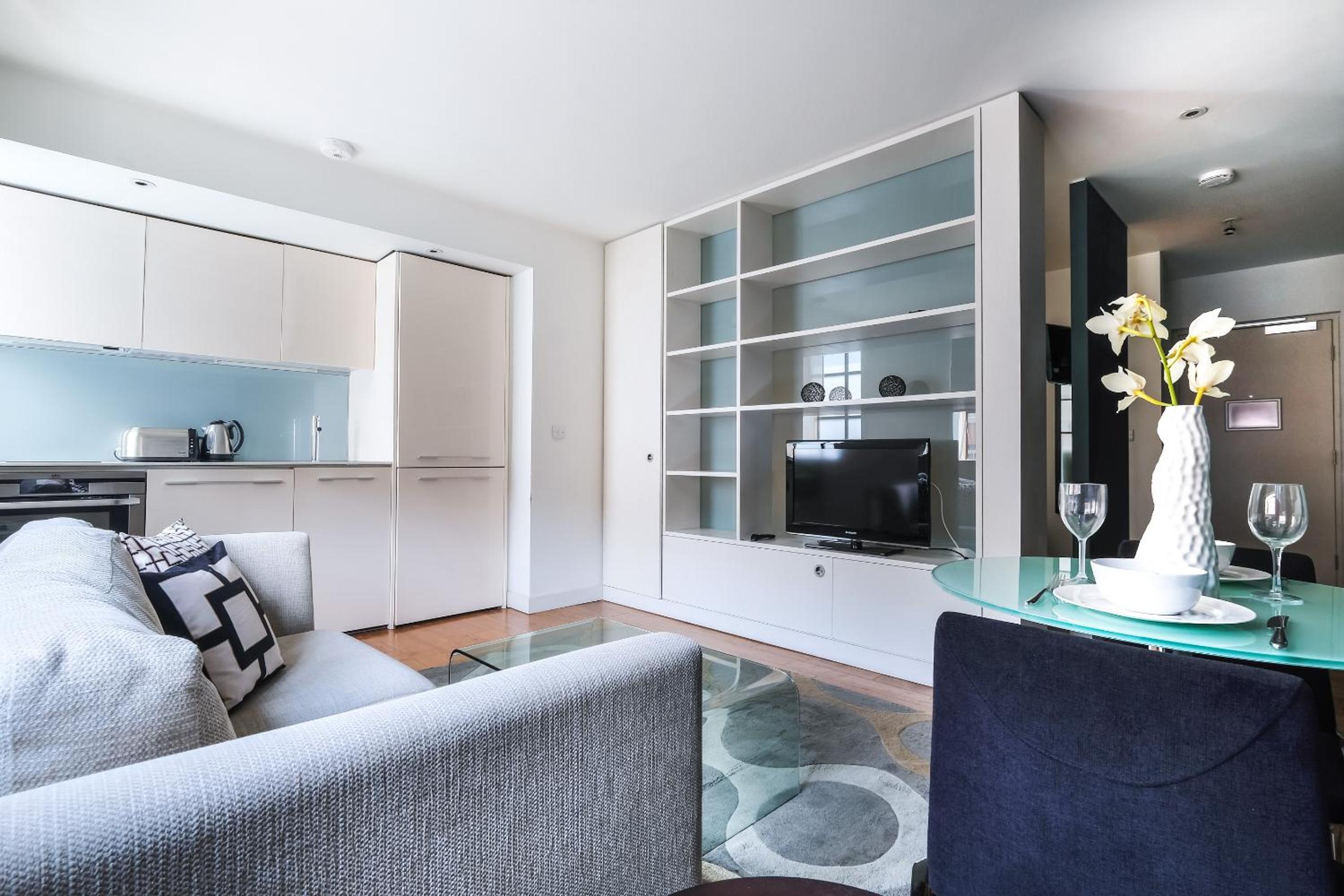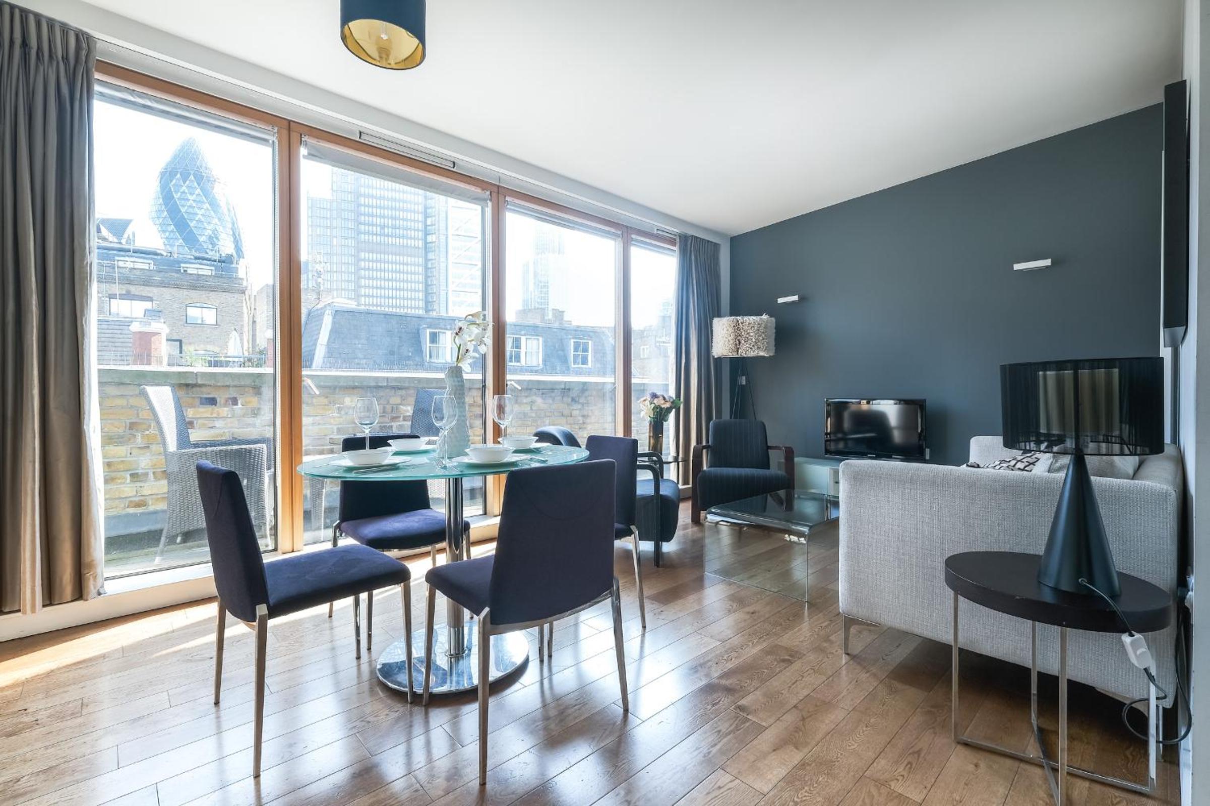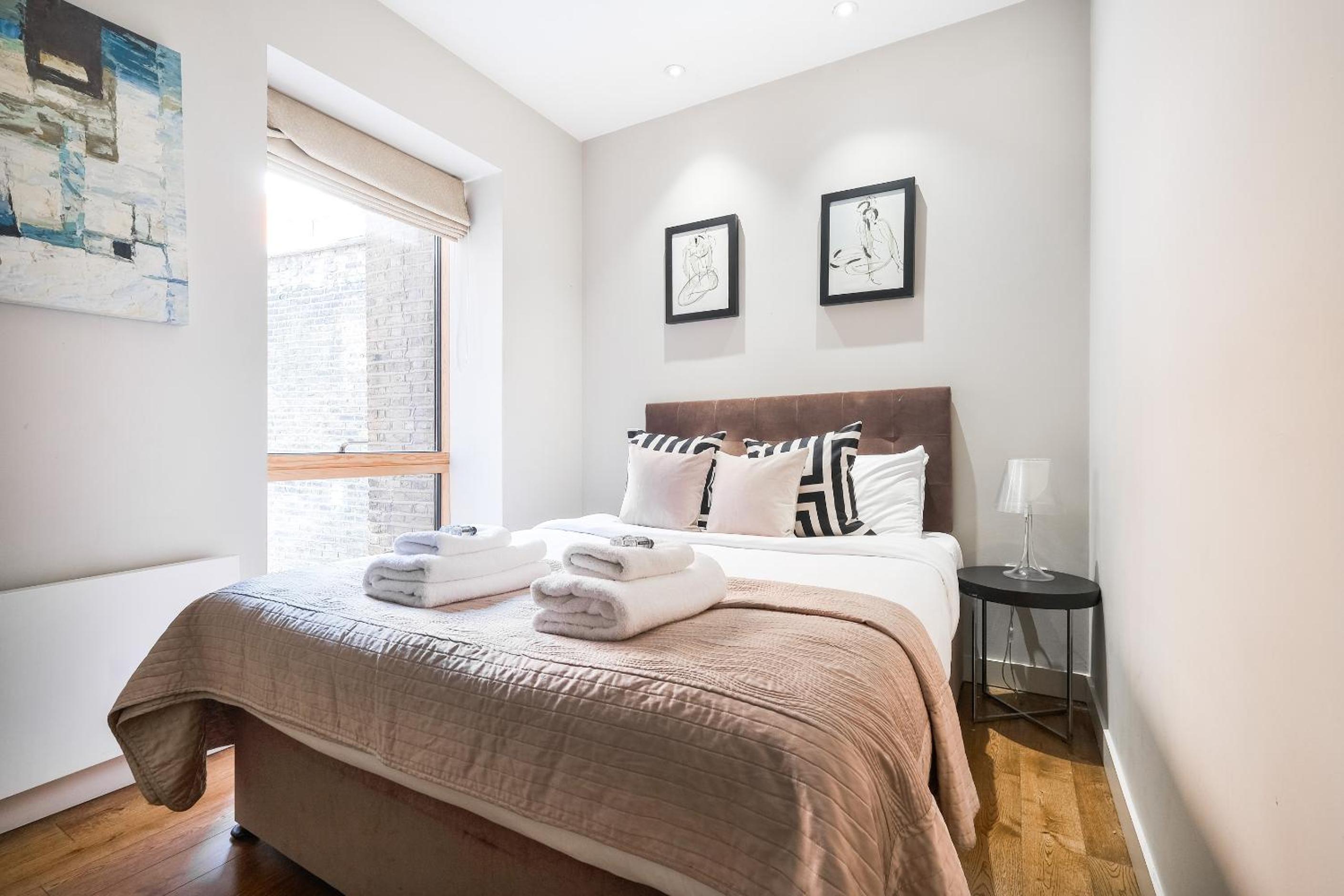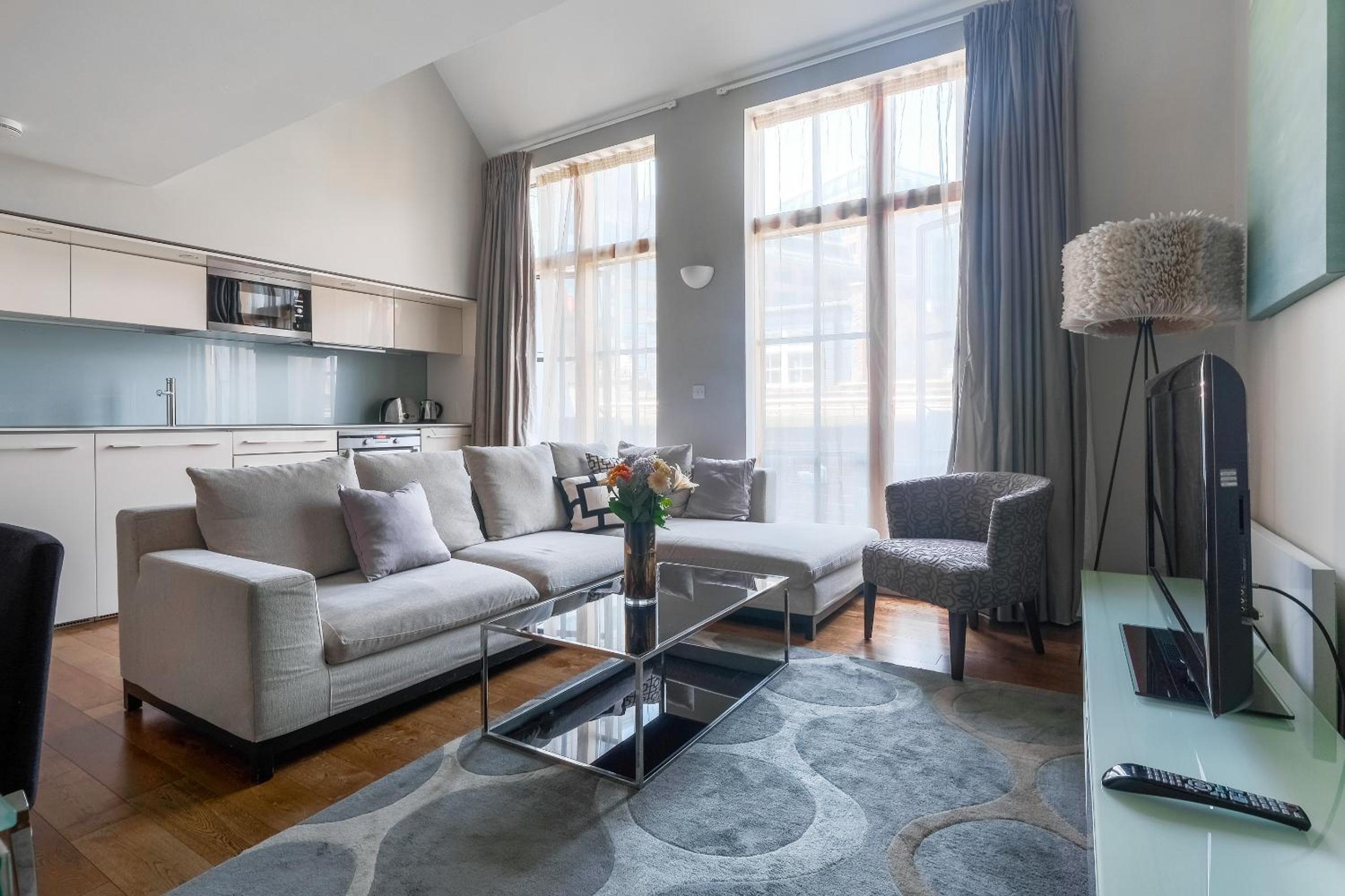 Experience the epitome of luxury at Artillery Lane in the heart of City of London. Each unit is meticulously designed with a seating area, flat-screen TV, and a fully equipped kitchen. Relax in comfort with amenities like a safety deposit box and a private bathroom with a hair dryer.
