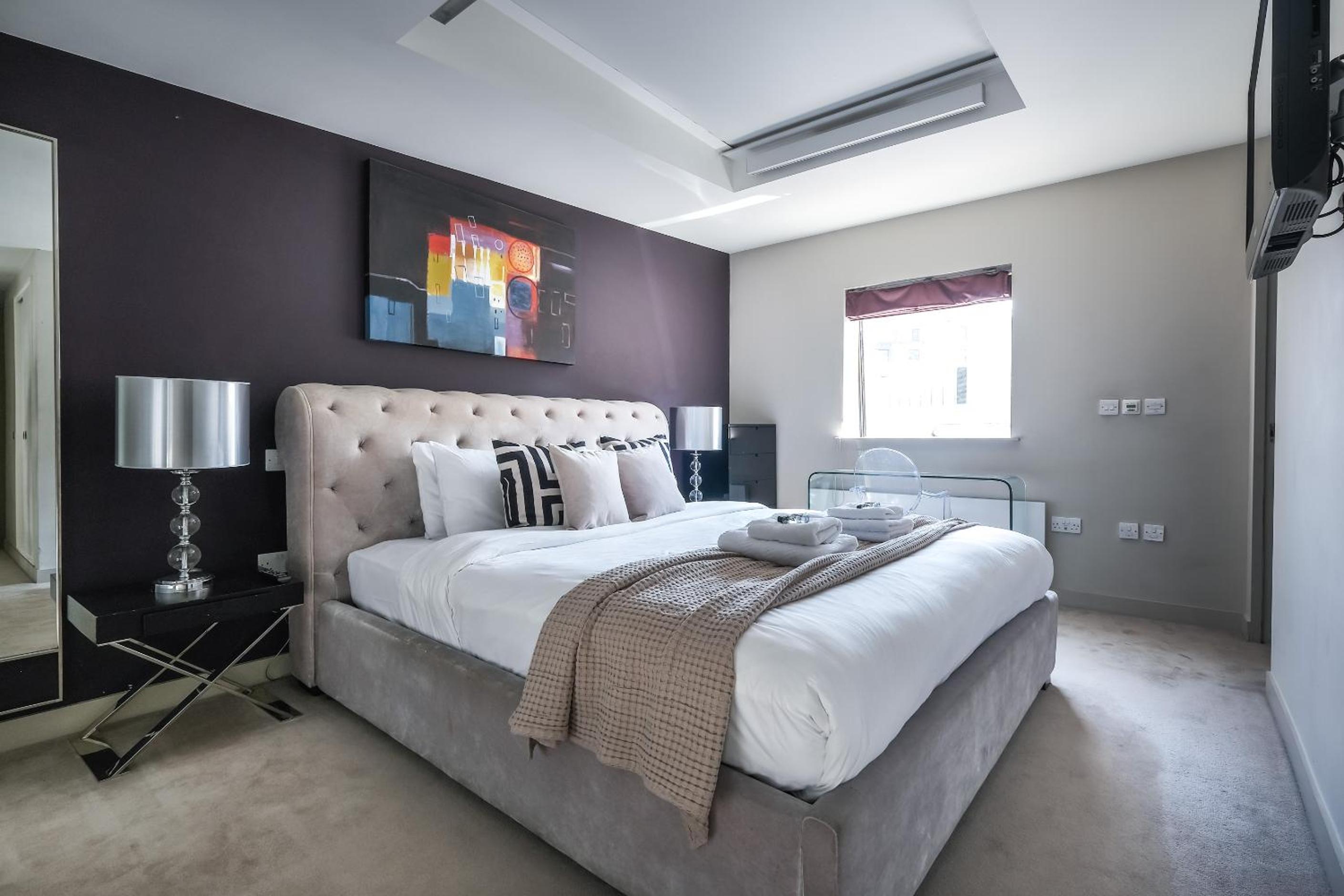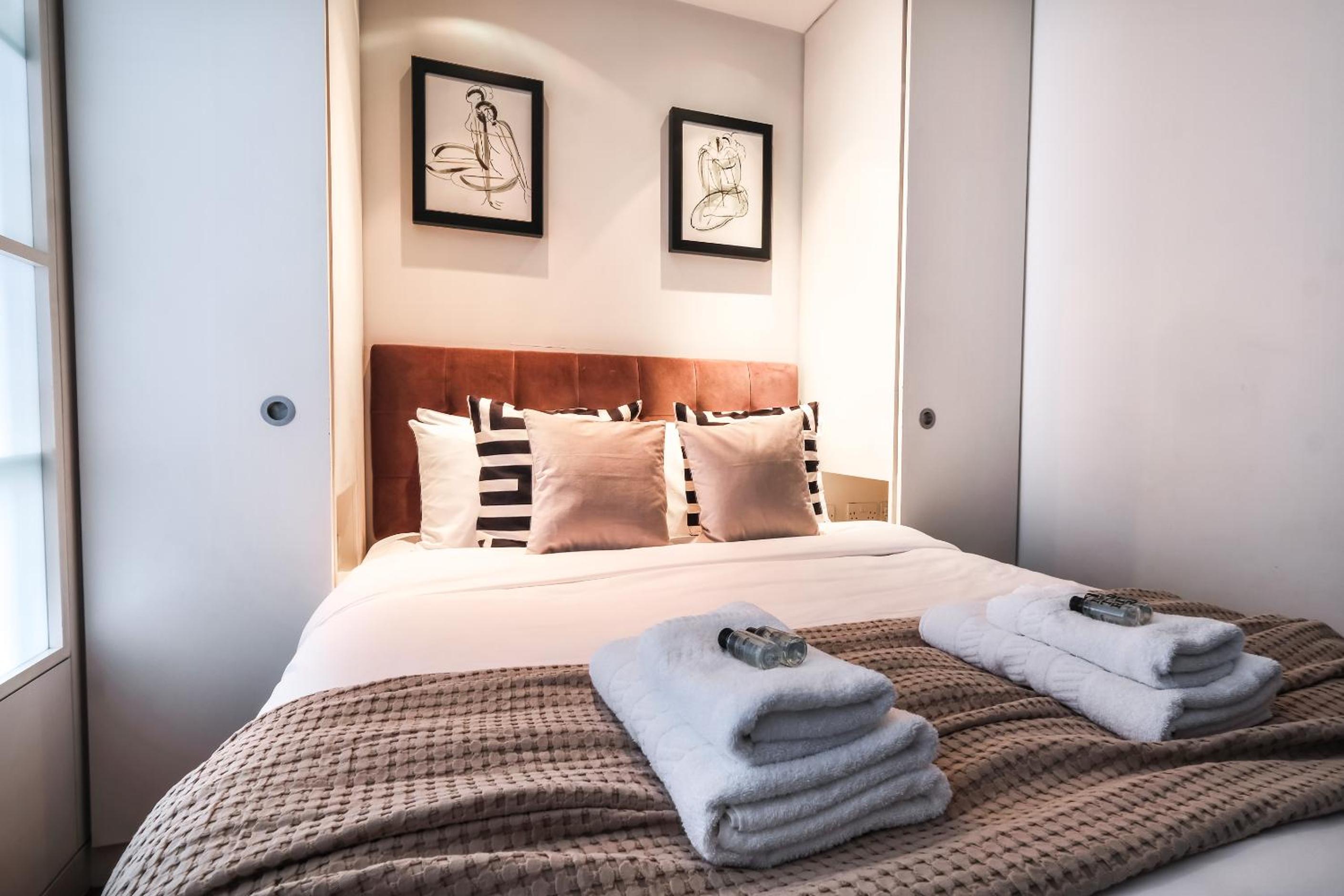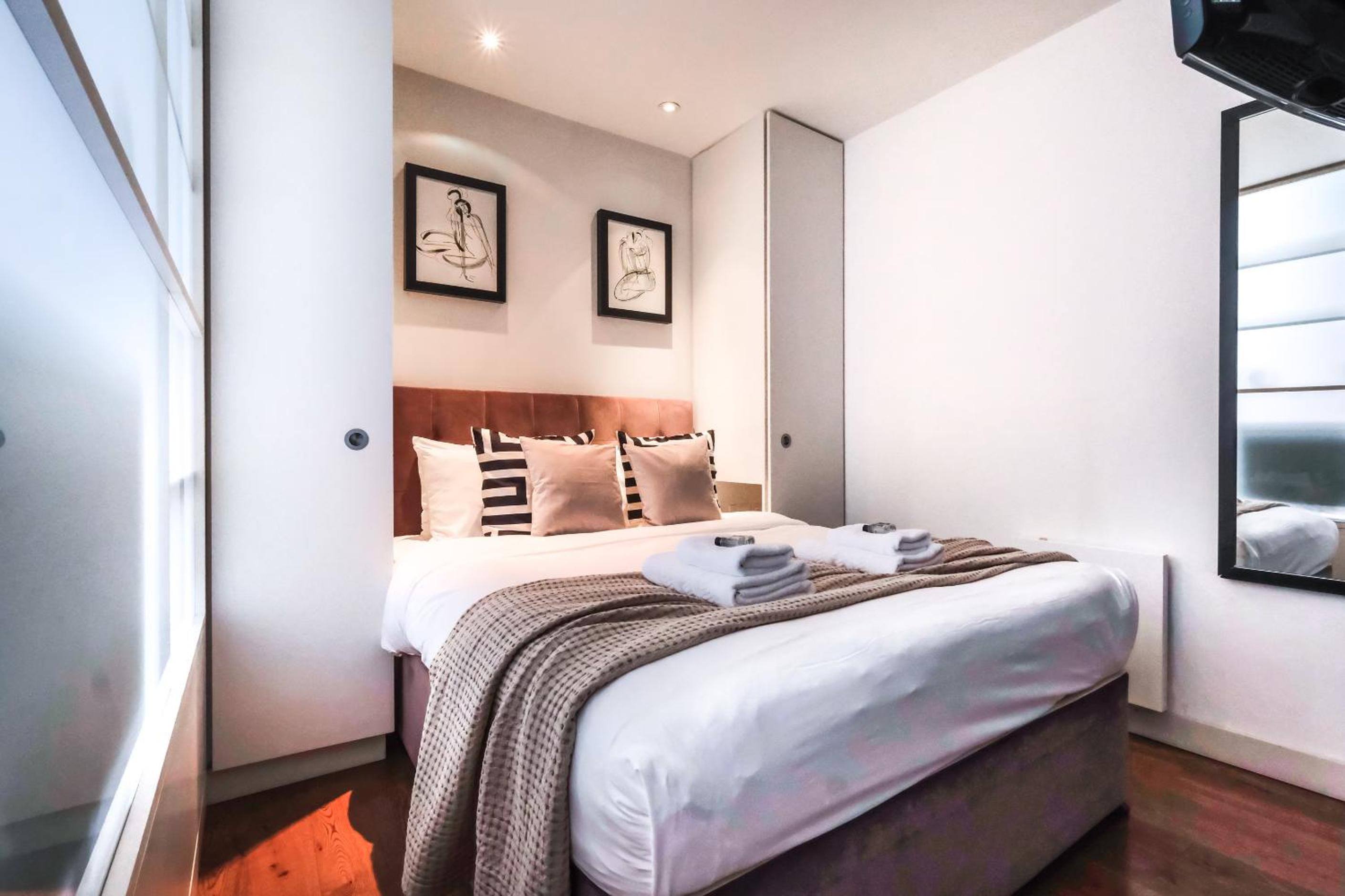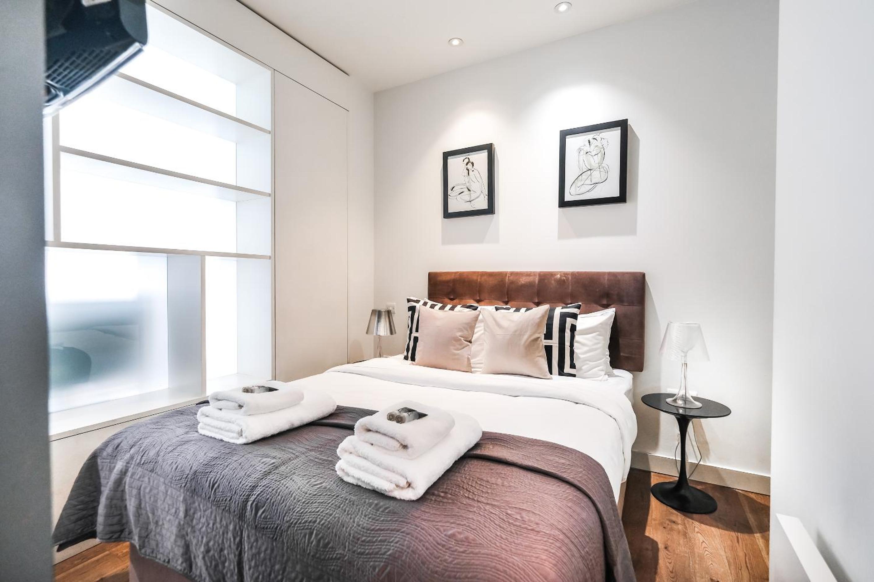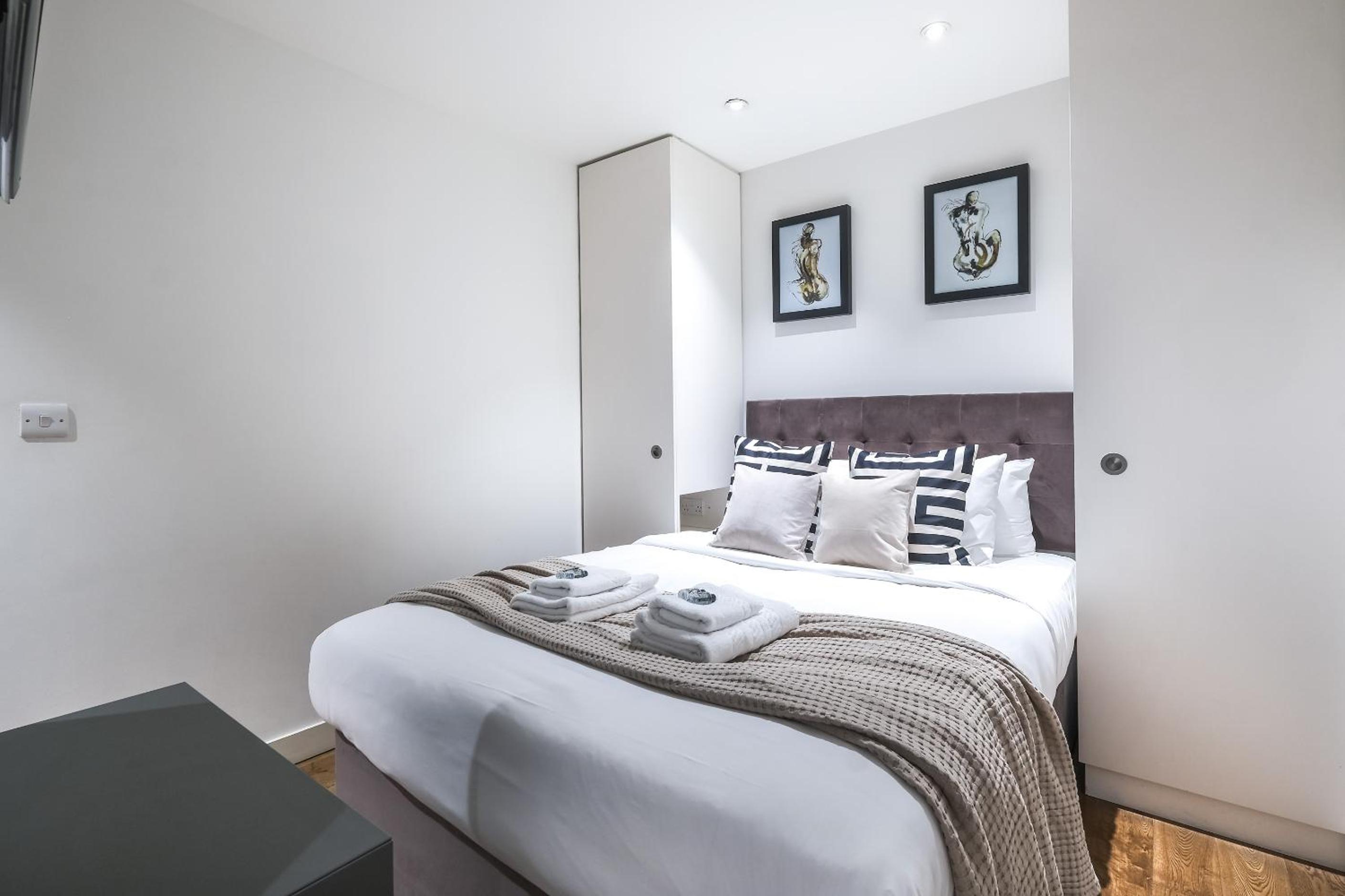 Experience the epitome of luxury at Artillery Lane in the heart of City of London. Each unit is meticulously designed with a seating area, flat-screen TV, and a fully equipped kitchen. Relax in comfort with amenities like a safety deposit box and a private bathroom with a hair dryer.