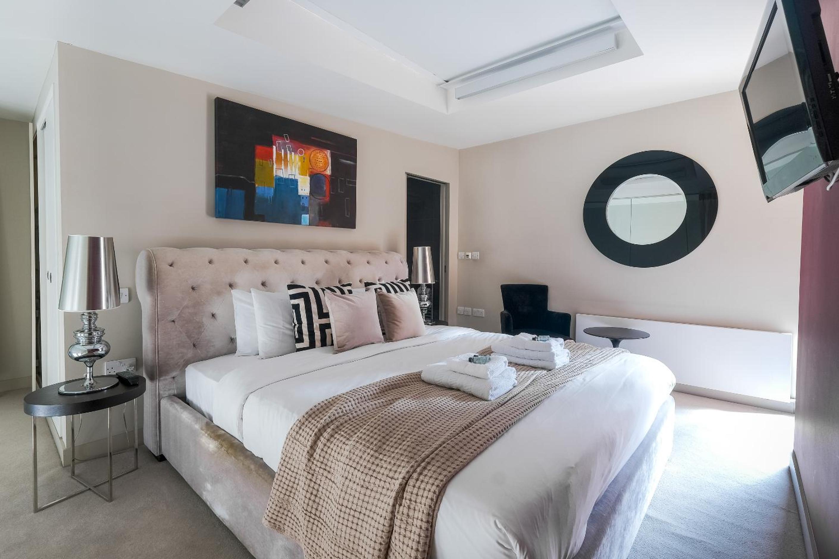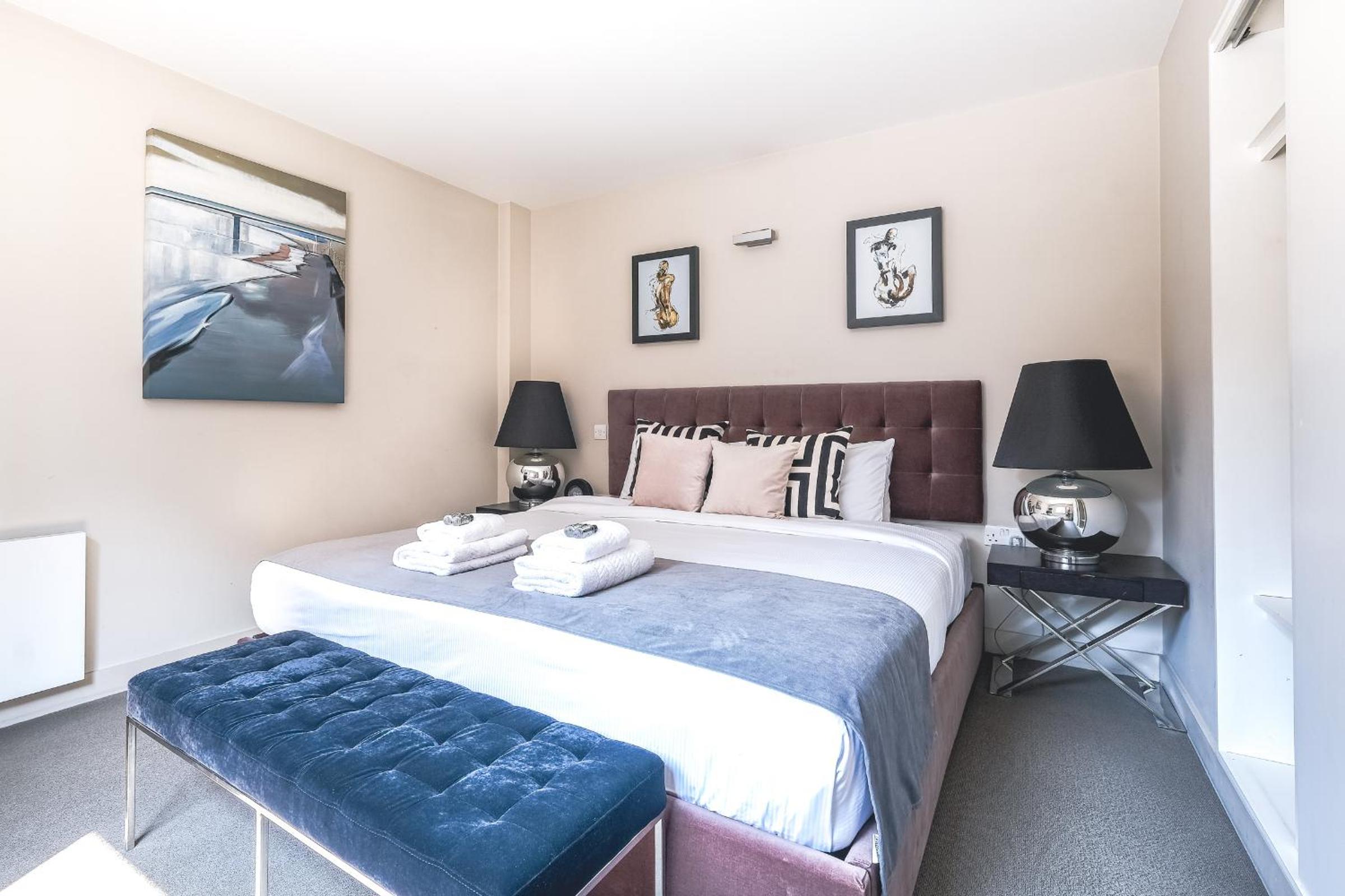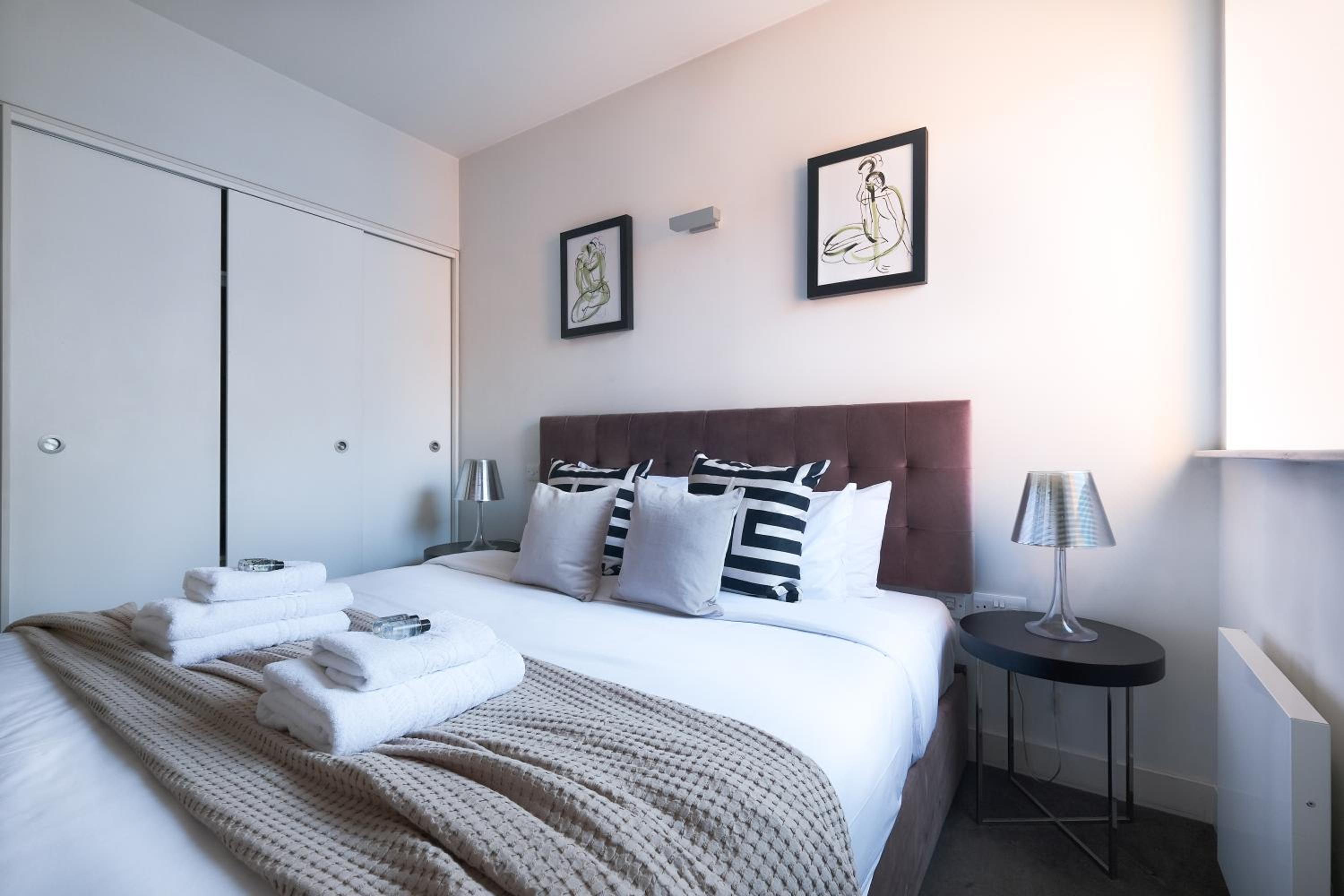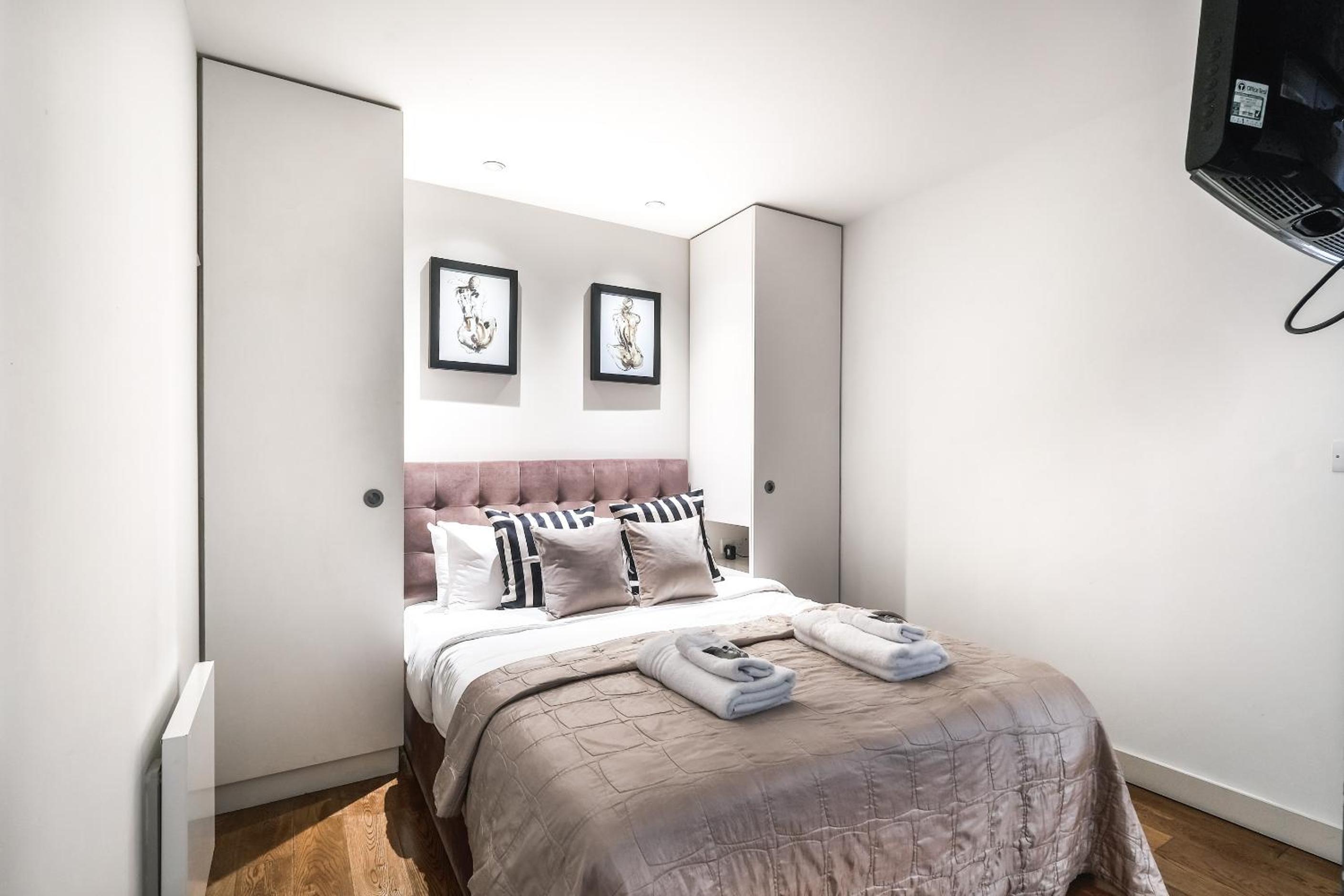 Experience the epitome of luxury at Artillery Lane in the heart of City of London. Each unit is meticulously designed with a seating area, flat-screen TV, and a fully equipped kitchen. Relax in comfort with amenities like a safety deposit box and a private bathroom with a hair dryer.