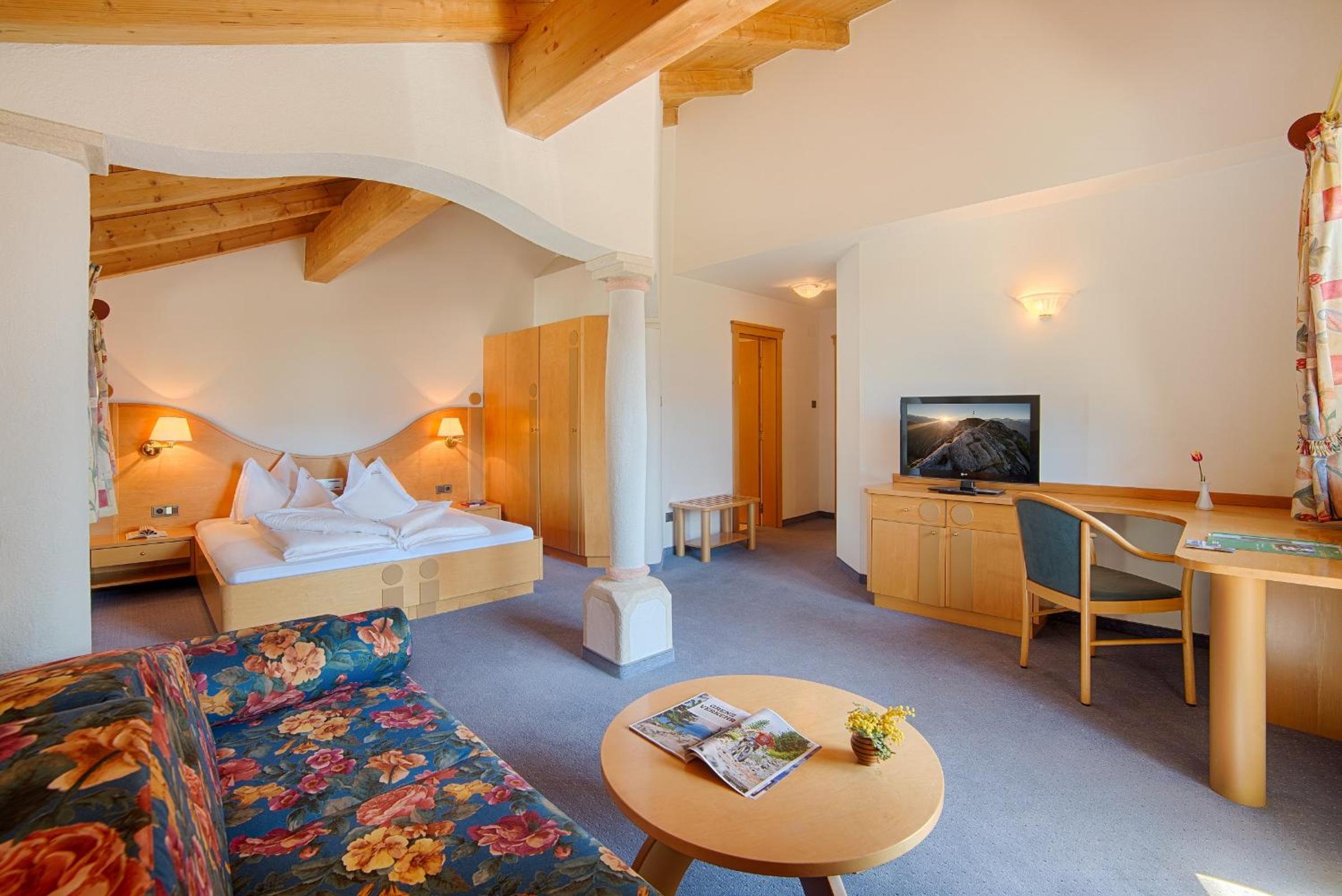 Hotel Gissbach offers stunning views of the Puster Valley and a free wellness centre with a pool, all accessible through the garden. The tastefully decorated rooms with wood furniture and serene color schemes provide a comfortable retreat after a day of exploring.