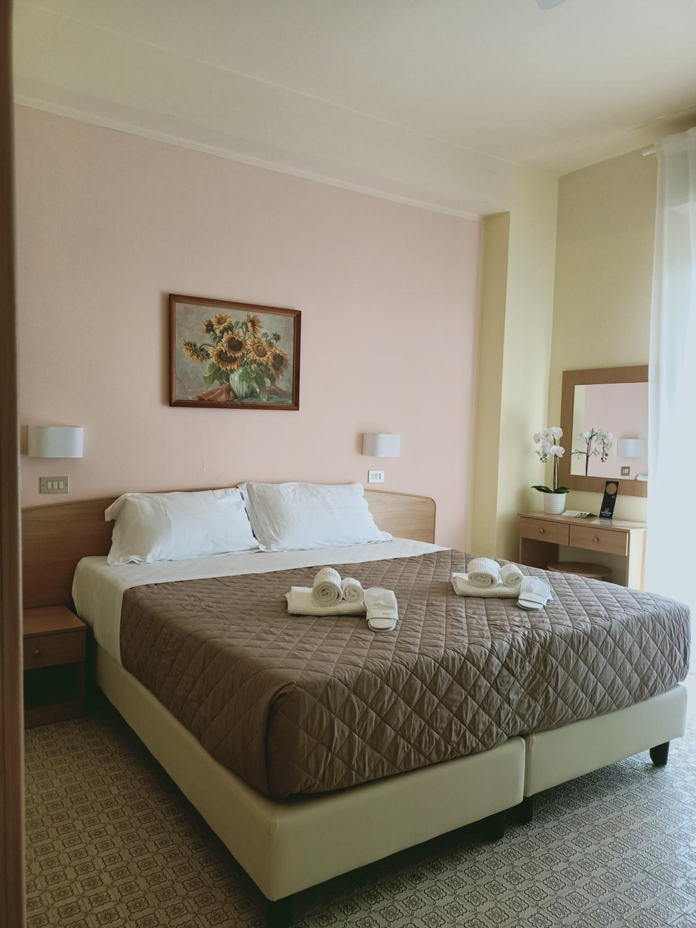 Ottimo albergo a conduzione familiare, per una vacanza senza pretese e in totale relax. Si mangia veramente bene e la cuoca è un personaggio simpaticissimo che ama chiacchierare con gli ospiti. Poiché era bassa stagione mi hanno omaggiato di un upgrade di camera visto che ho pernottato a lungo, ho apprezzato molto! La spiaggia è a 2 passi e anche la via principale lungomare. L'arredamento è un po' retró ma per me non è un problema. Inoltre ho potuto anche suonare il pianoforte presente nella sala comune. Rapporto qualità prezzo molto elevato. Consigliato