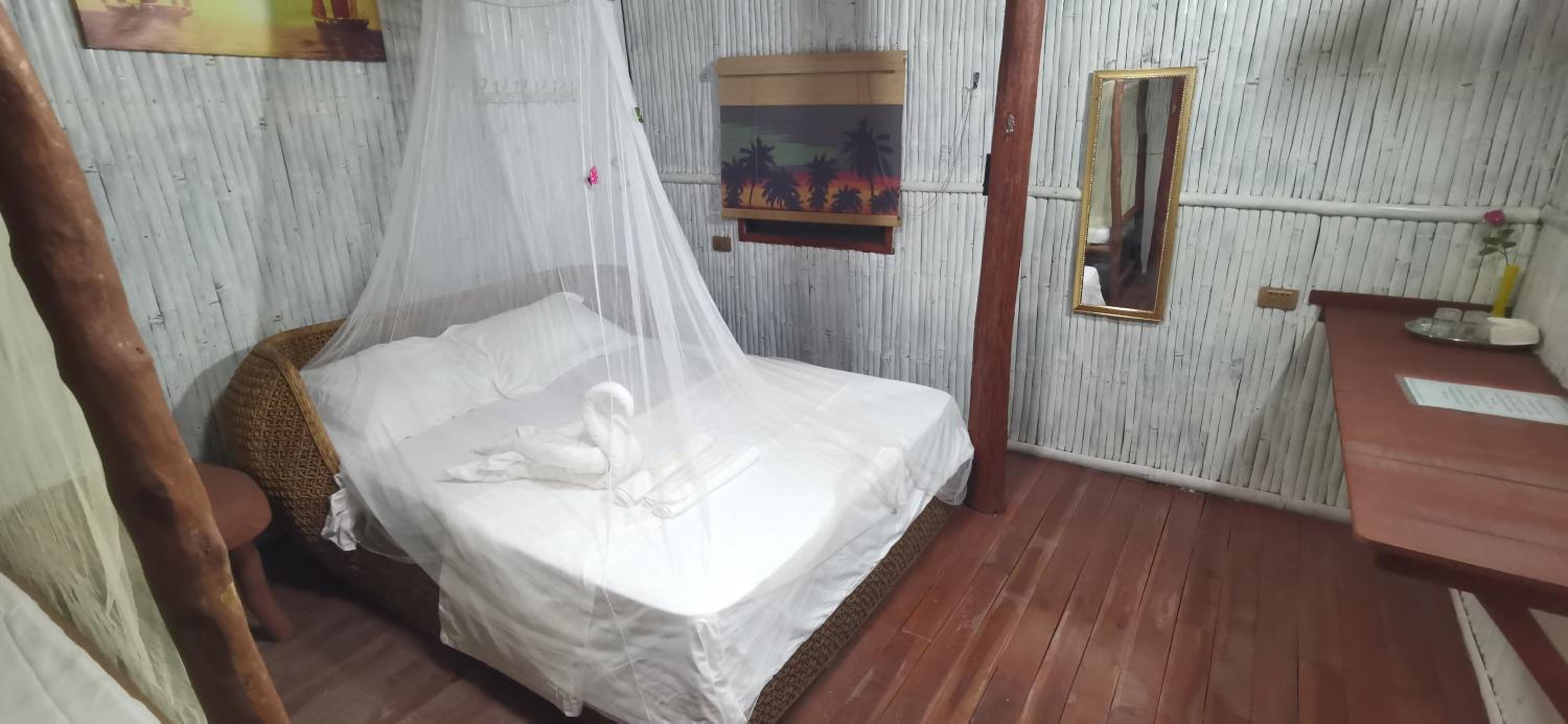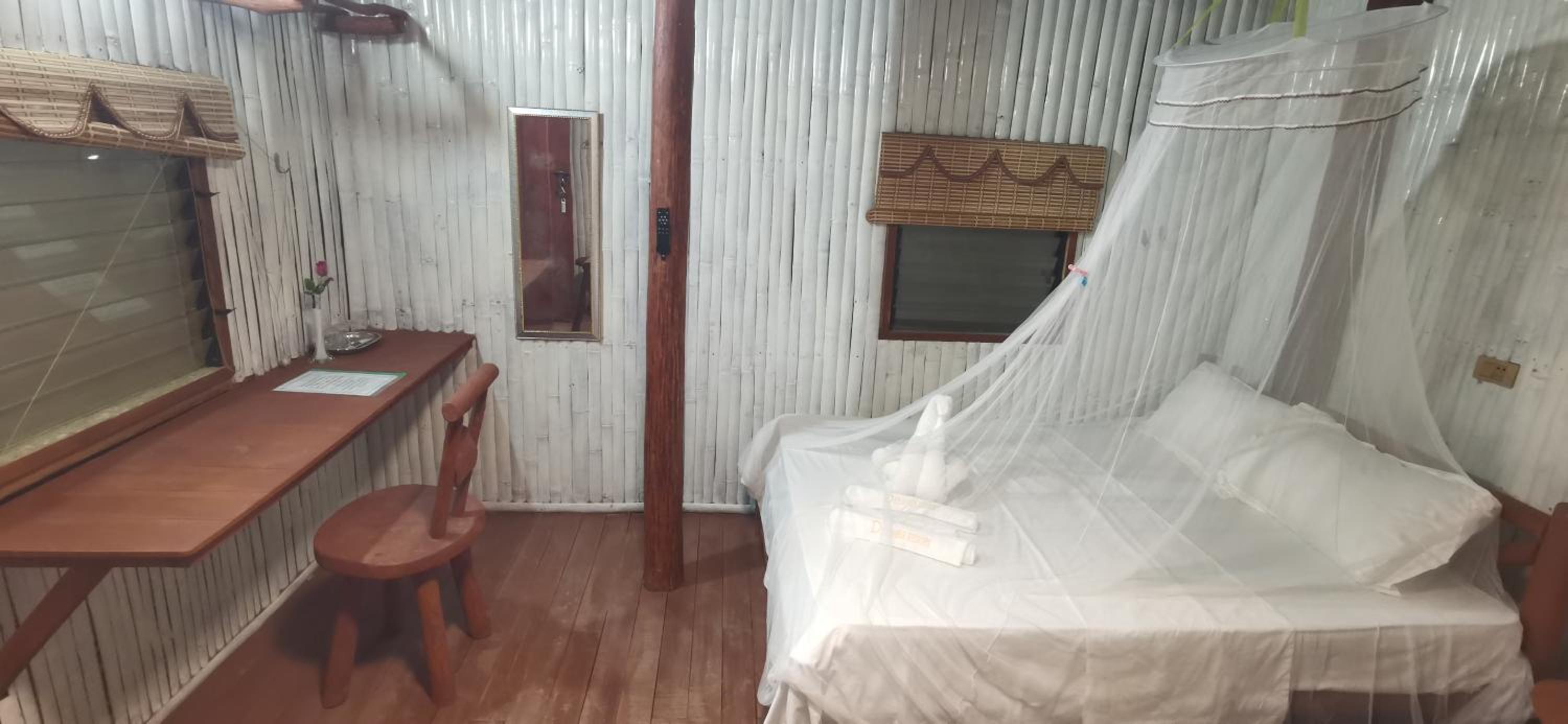 Super accueil, réactivité du personnel, le cadre est top avec sa superbe nature. Eau chaude pour la douche, petit en-cas au matin, chambre grande, propre avec Clim et moustiquaire de princesse. Le propriétaire nous a même déposé en voiture au terminal gratuitement. Je recommande fortement pour le rapport qualité prix qui est raisonnable