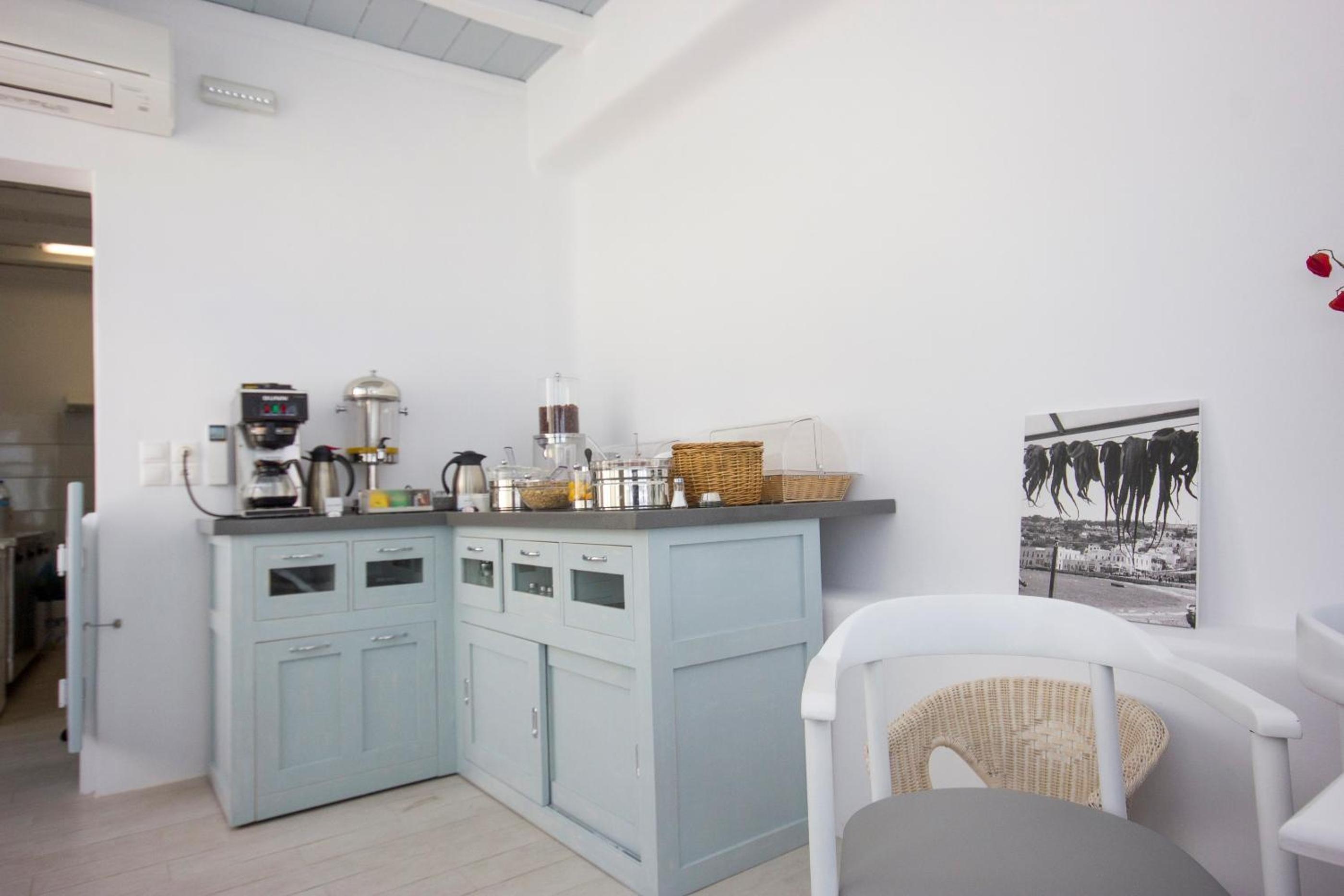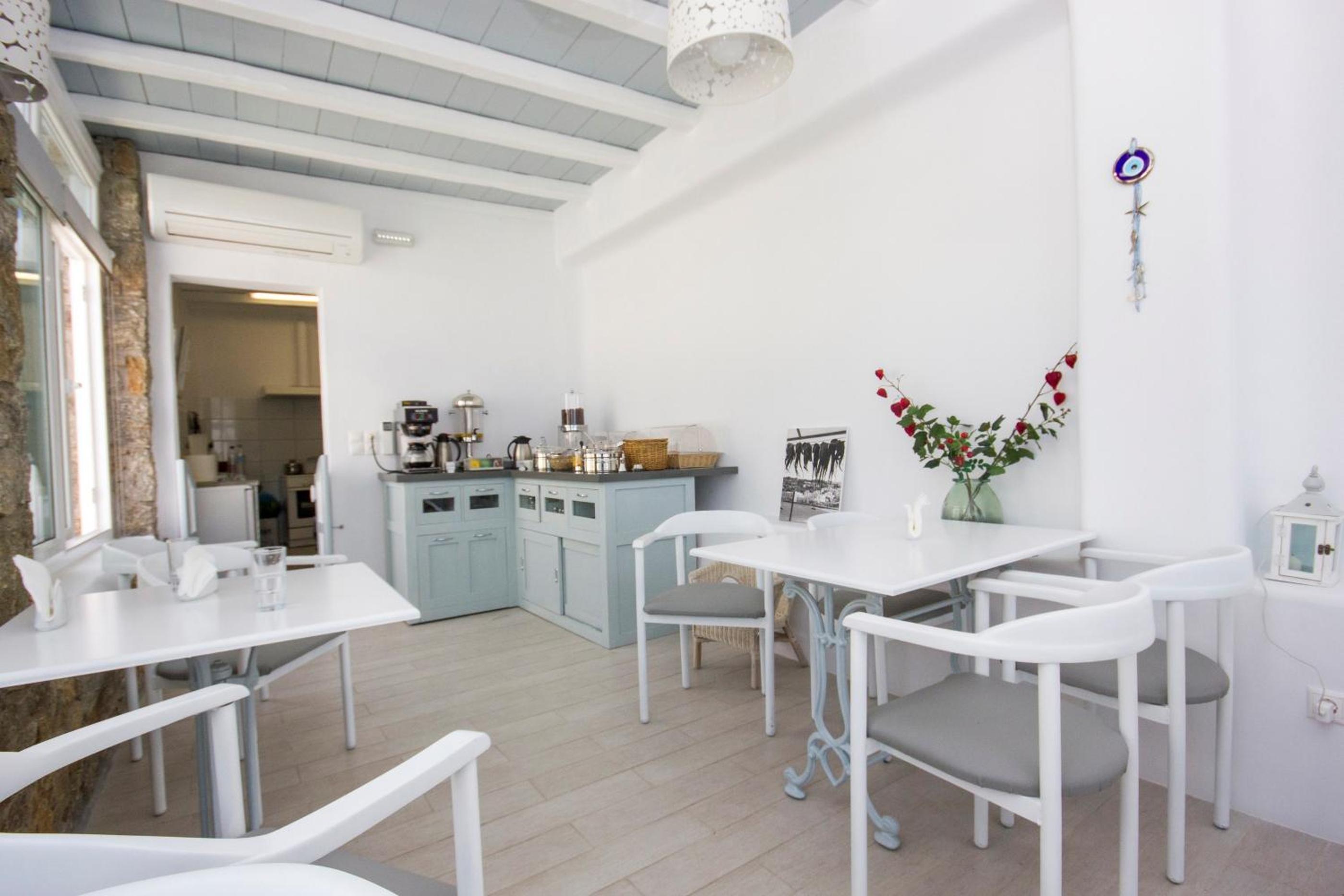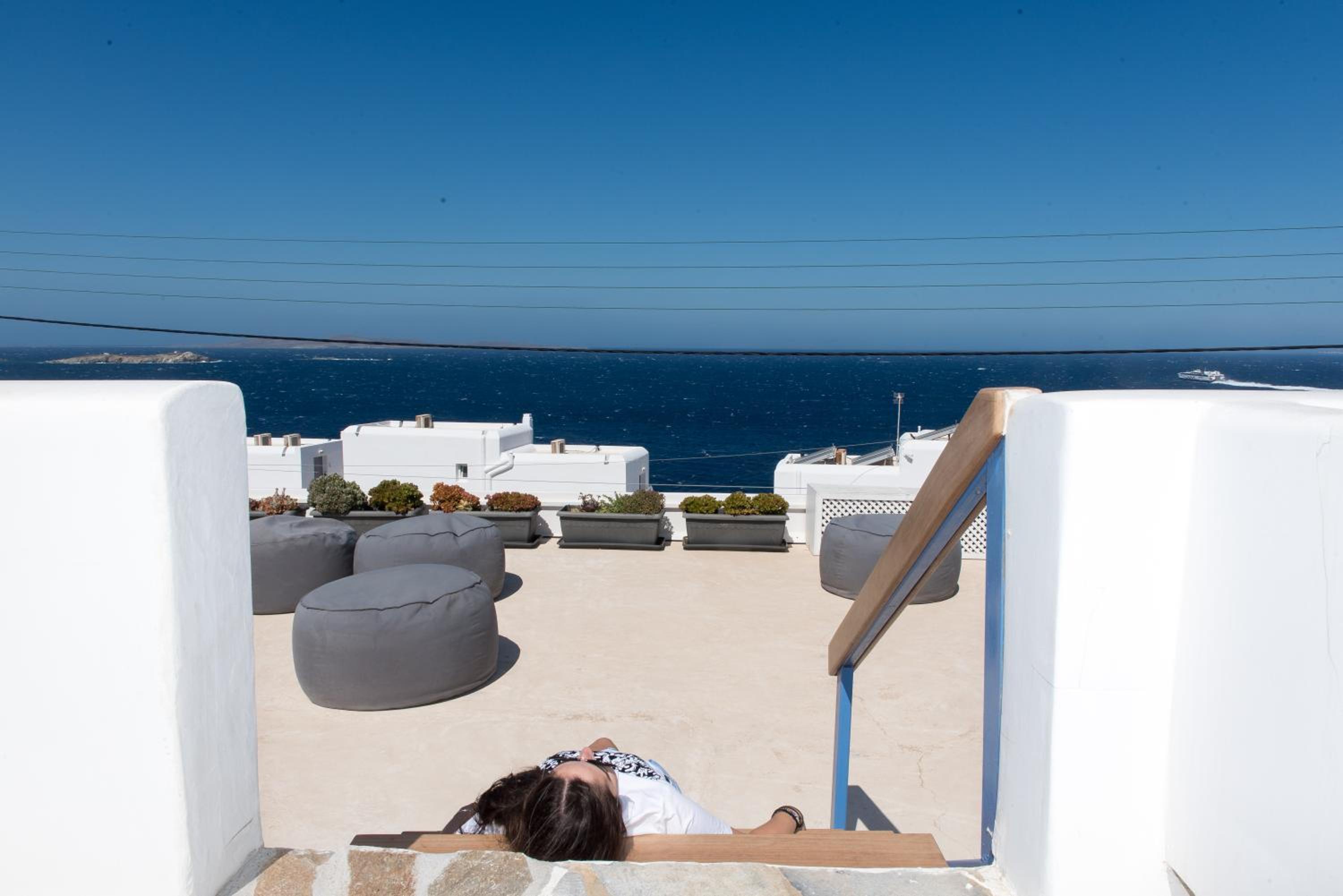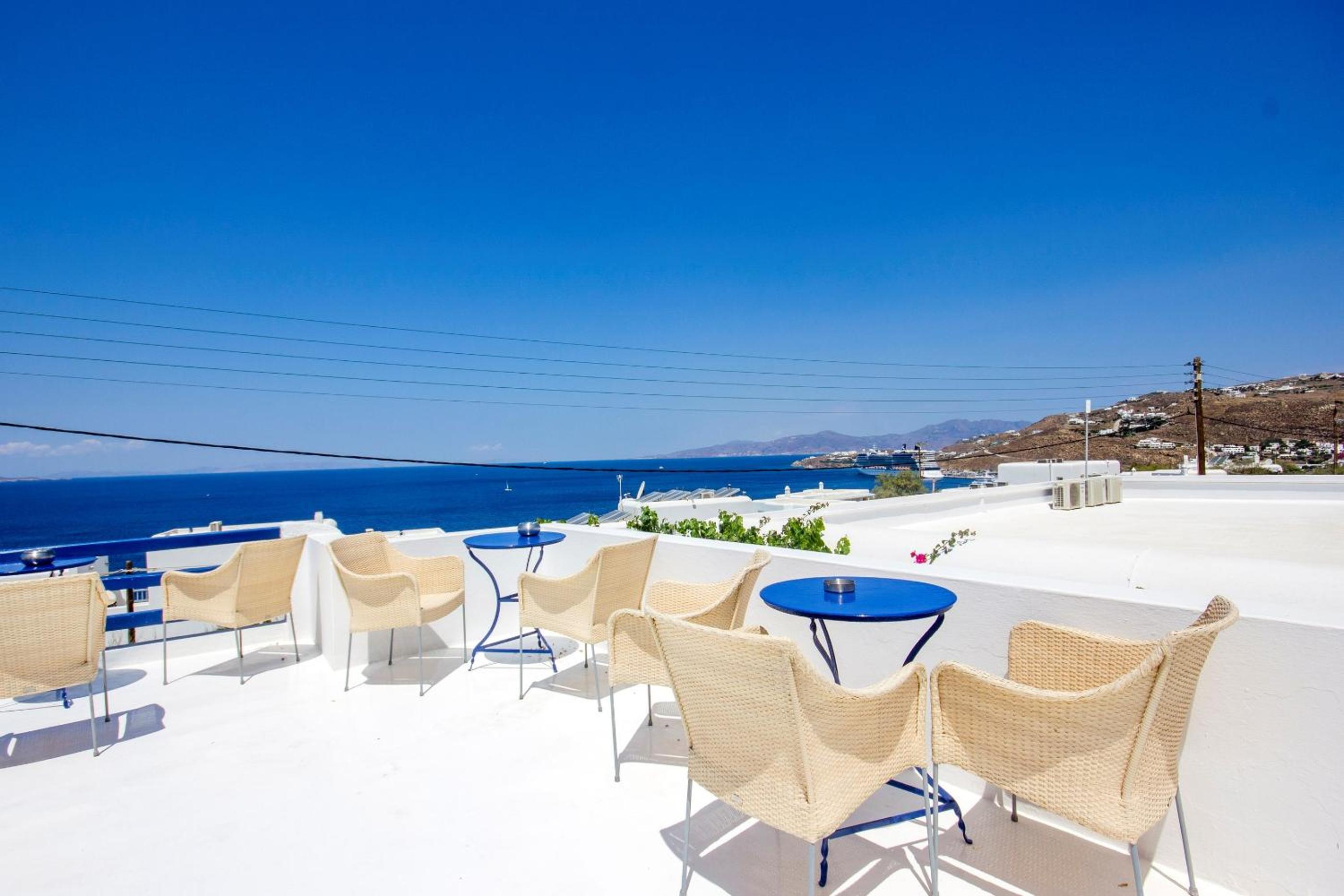 Indulge in a delightful breakfast on our terrace, offering breathtaking views of Mykonos City and the enchanting island of Delos. Unwind in the afternoon with a glass of wine while watching the passing ships, creating unforgettable moments.
