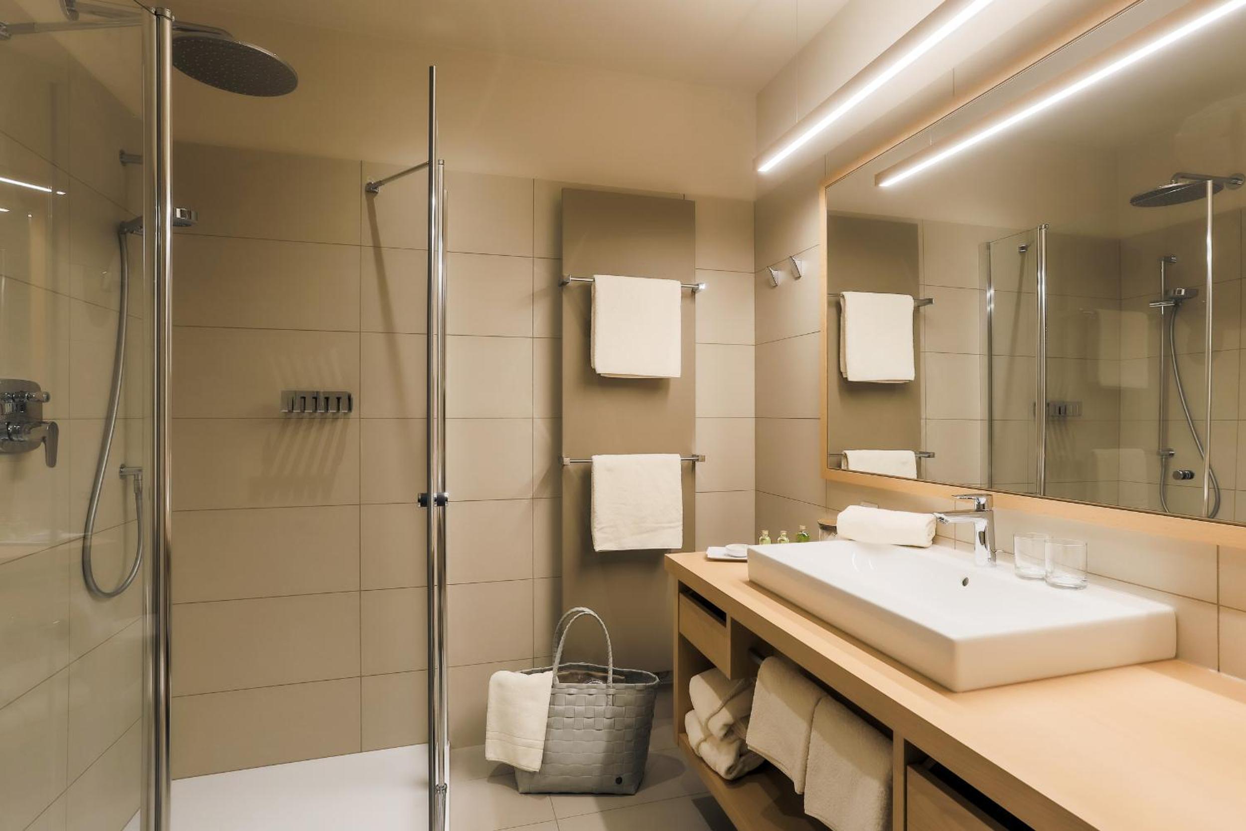 Indulge in the wellness facilities at Spitaler Hotel, which include a Finnish sauna, herbal sauna, steam bath, and hot tub. After pampering yourself, recharge in the small gym or the serene relaxation area with candles.