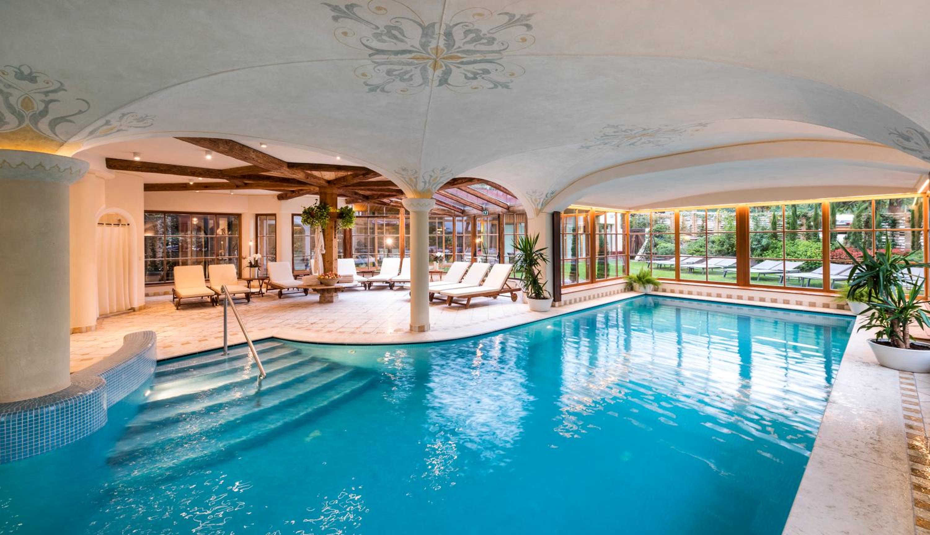 Hotel Spitaler offers an outdoor pool with hydromassage and a paddling pool with slide, creating a perfect blend of relaxation and fun. The stylish wellness centre with indoor pool is ideal for unwinding after a day of exploring the beautiful Frangarto surroundings.