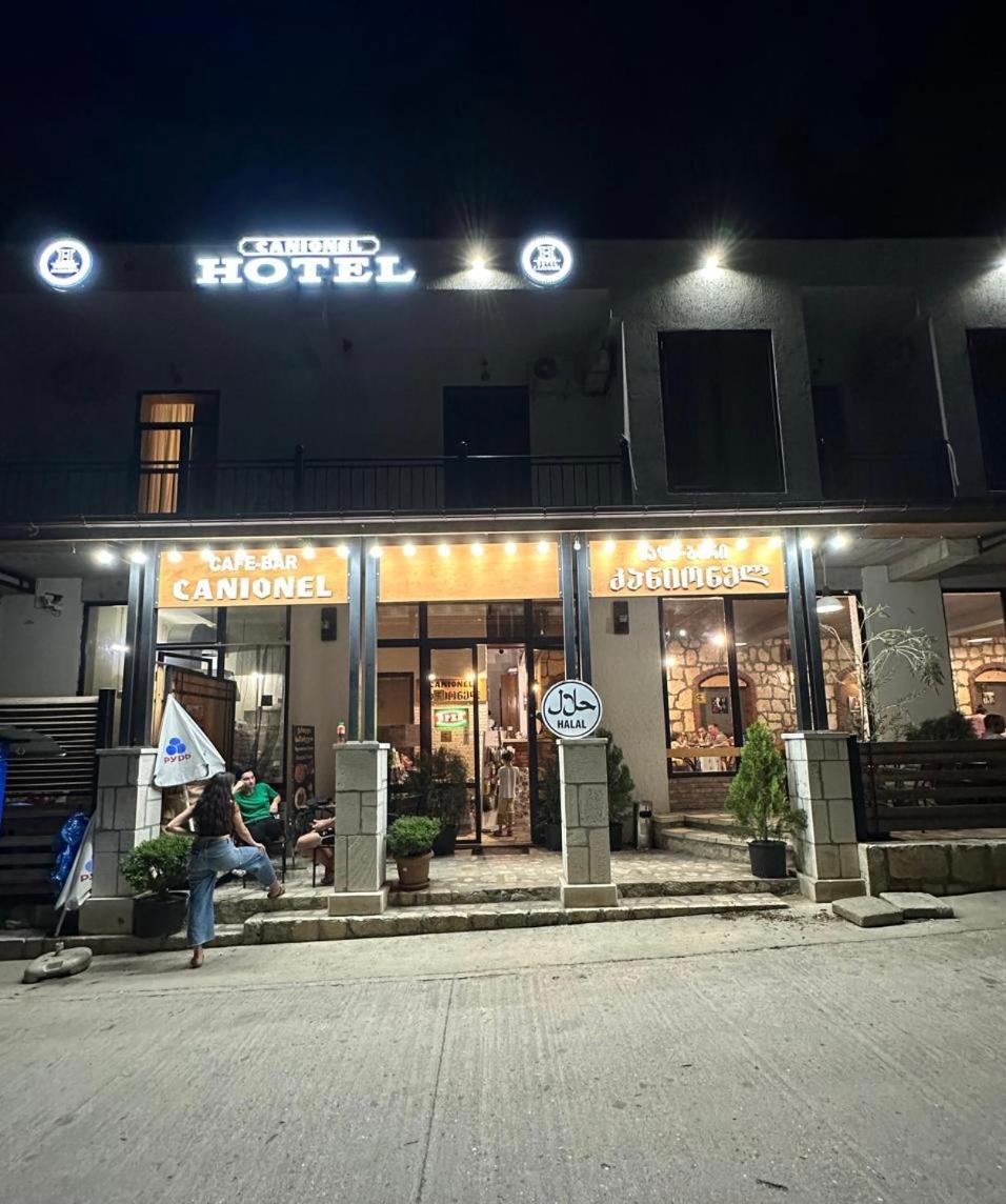 The Canionel guesthouse is situated right at the Martvili canyon, in the middle of the tourist attractions, and next to the visitor center. During the day, the area is very busy with tourists arriving for the day. Very calm during the night, when the tourists have gone. The rooms were comfortable, simple and very clean. We had a little balcony which I loved. You can make your own coffee and tea at a table next to reception and there is a restaurant serving beautiful Georgian dishes attached to the hotel. Staff were very friendly. We had a great jeep tour to visit the waterfalls with the hotel manager.