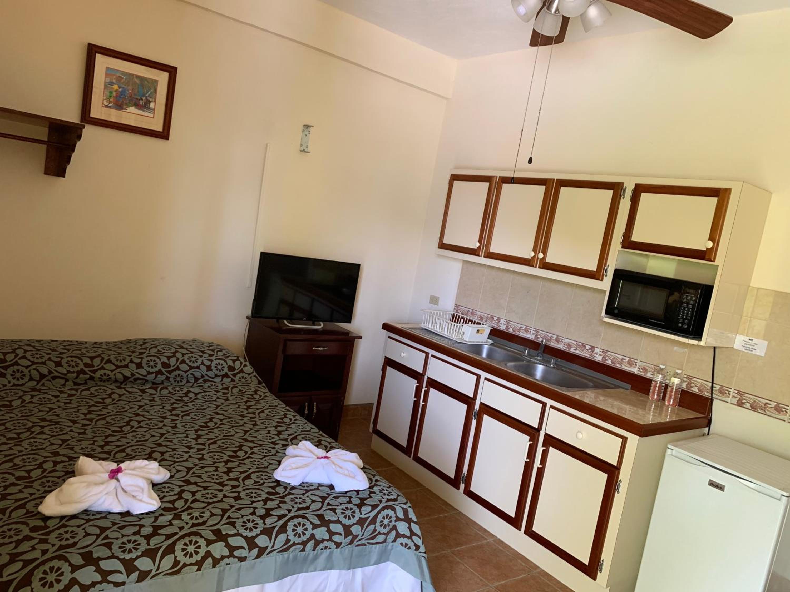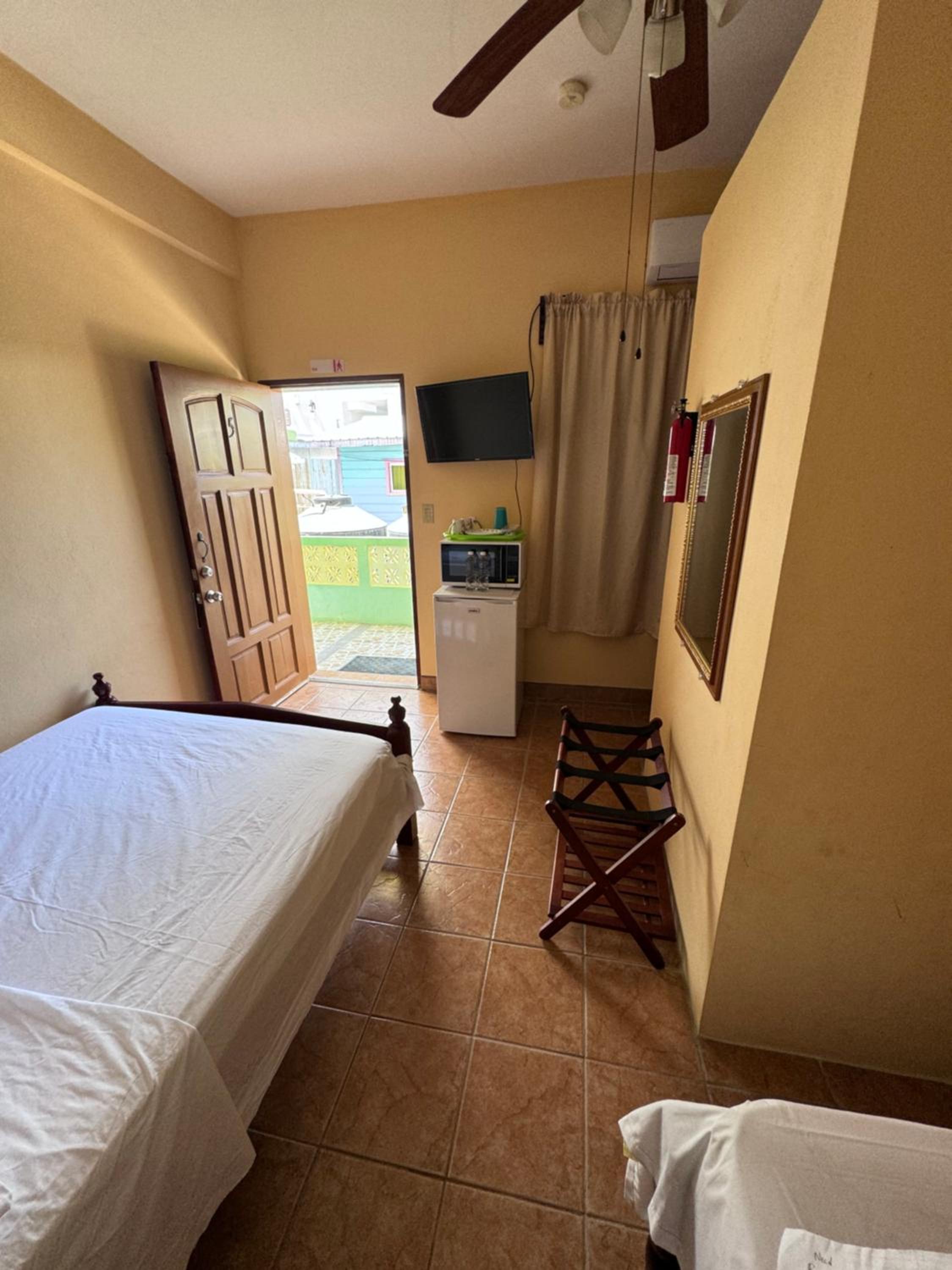 The plug socket melted and nearly caused a fire but for our swift action. This meant that the microwave was out of action (which was one of the key reasons that we booked the accommodation).. The shower was open to the room, so everything felt damp. The room was cramped and sadly we had the room facing the sceptic tank. All in all it wasnt the same value for money as we had had in other rooms on Caye Caulker.