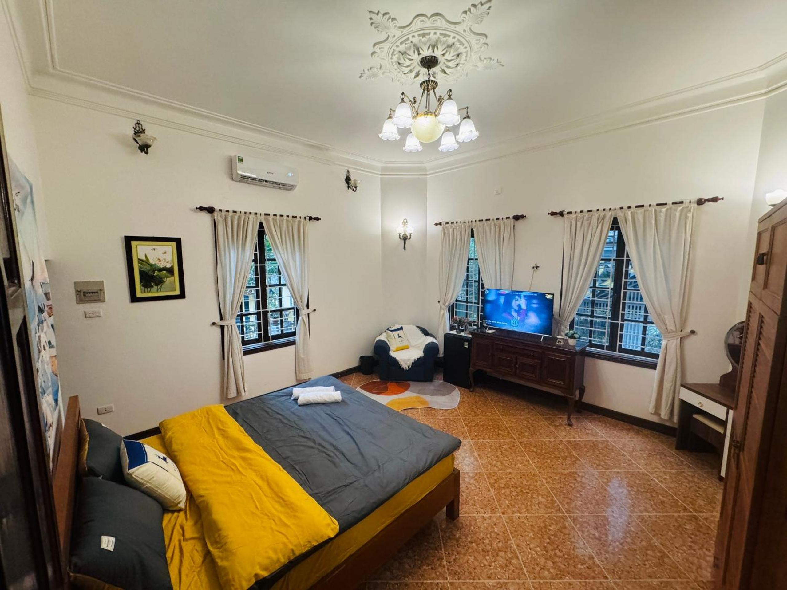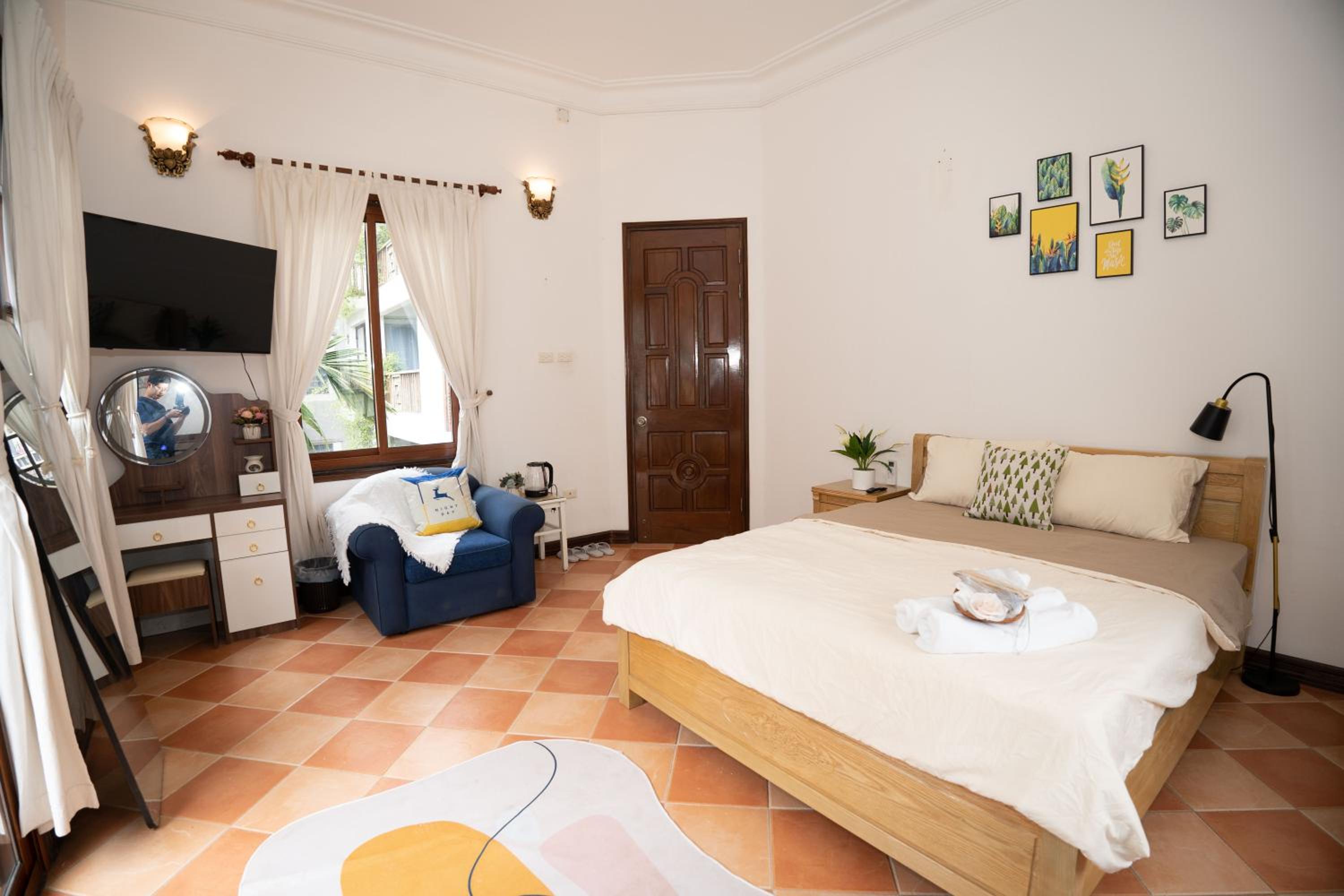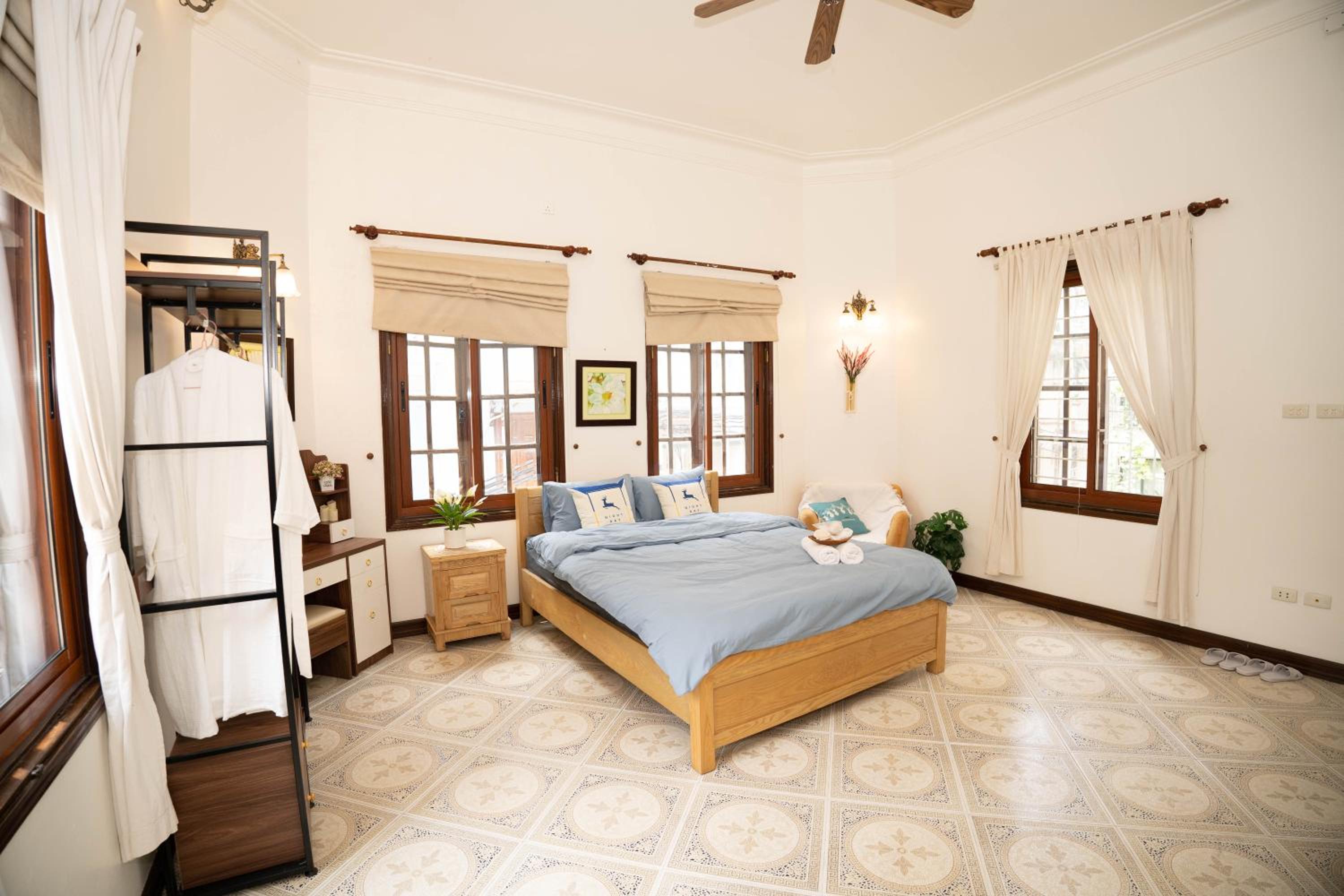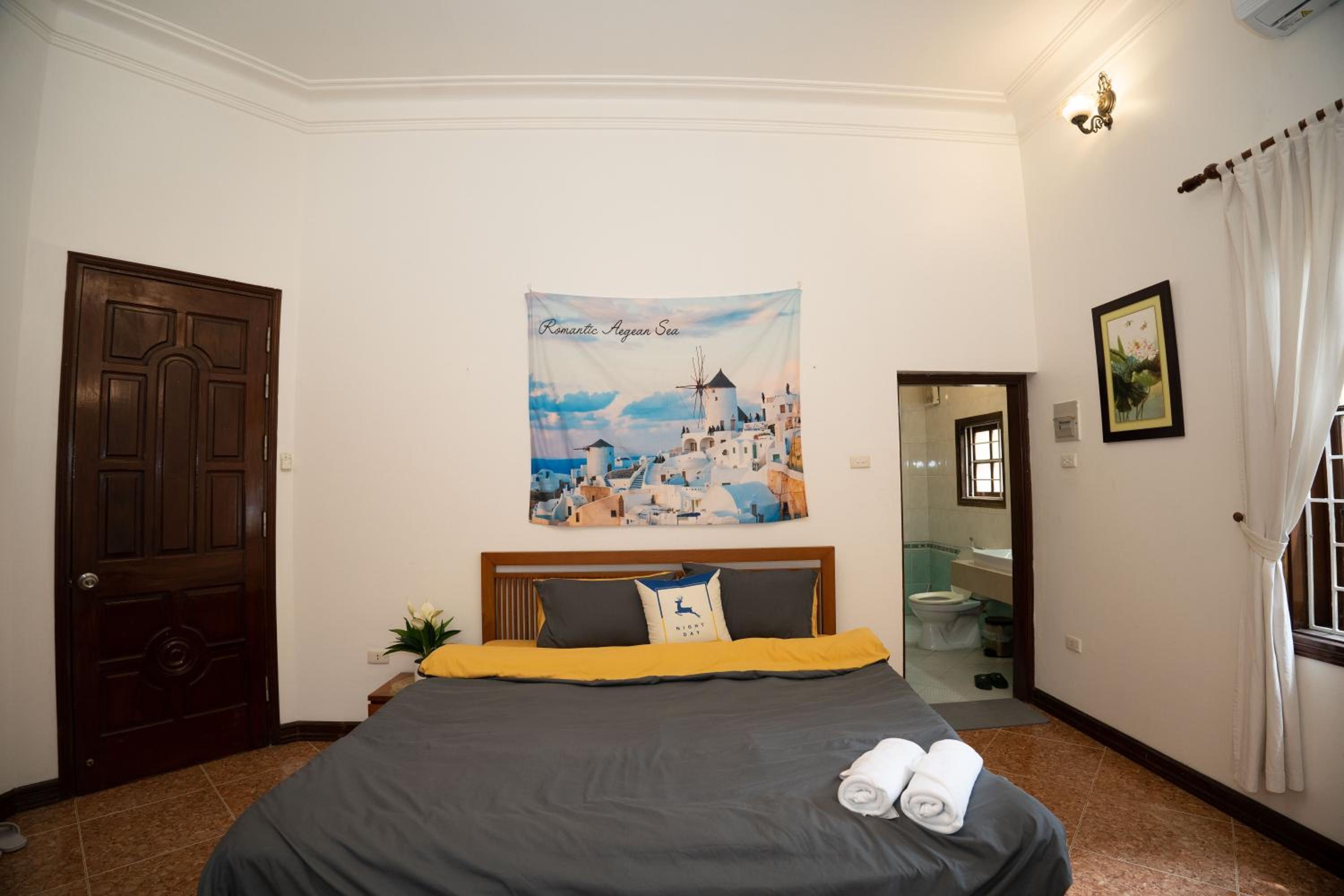 Indulge in a comfortable stay with modern amenities such as air conditioning, flat-screen TV with streaming services, and a private bathroom with bathrobes and slippers.
