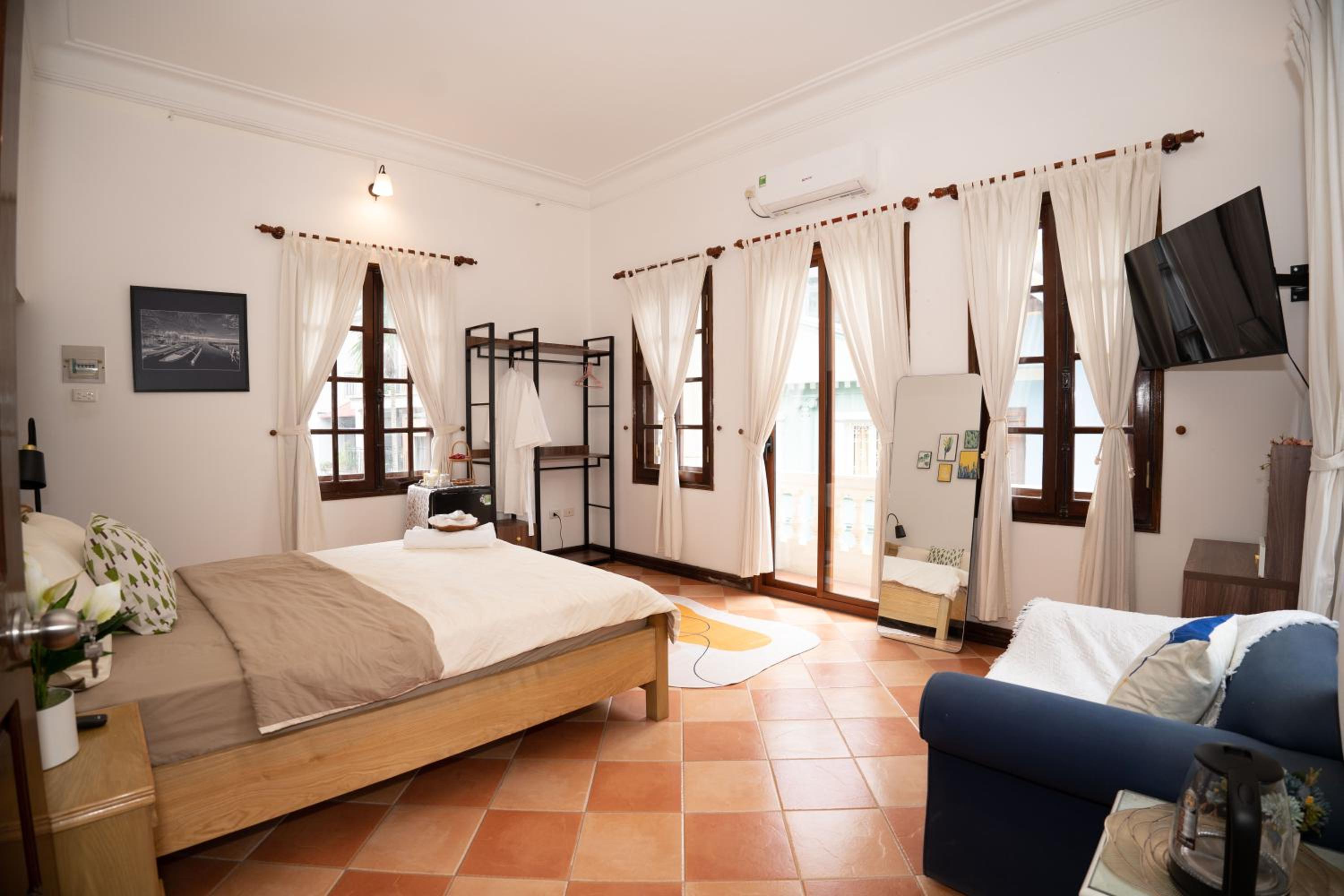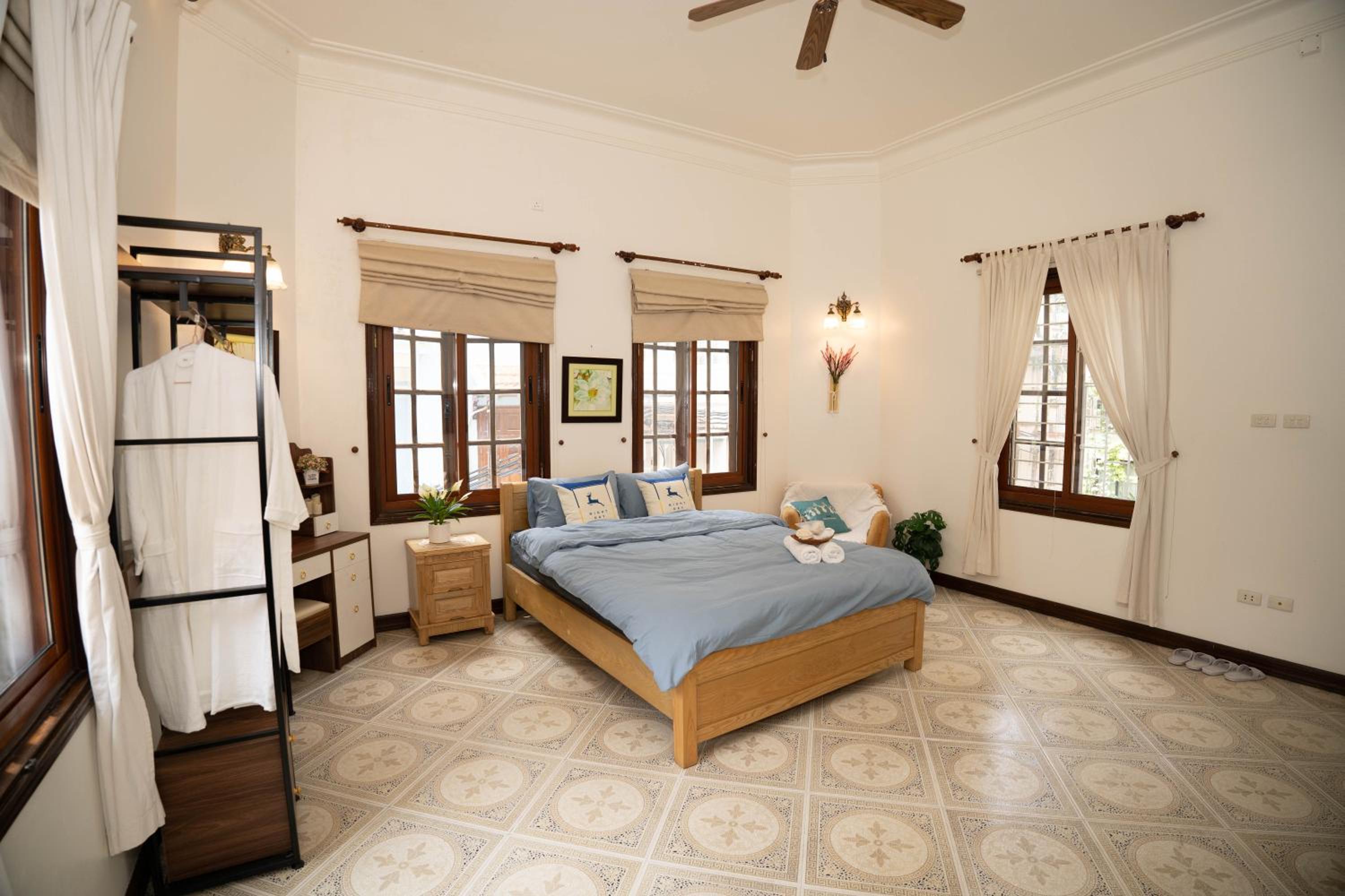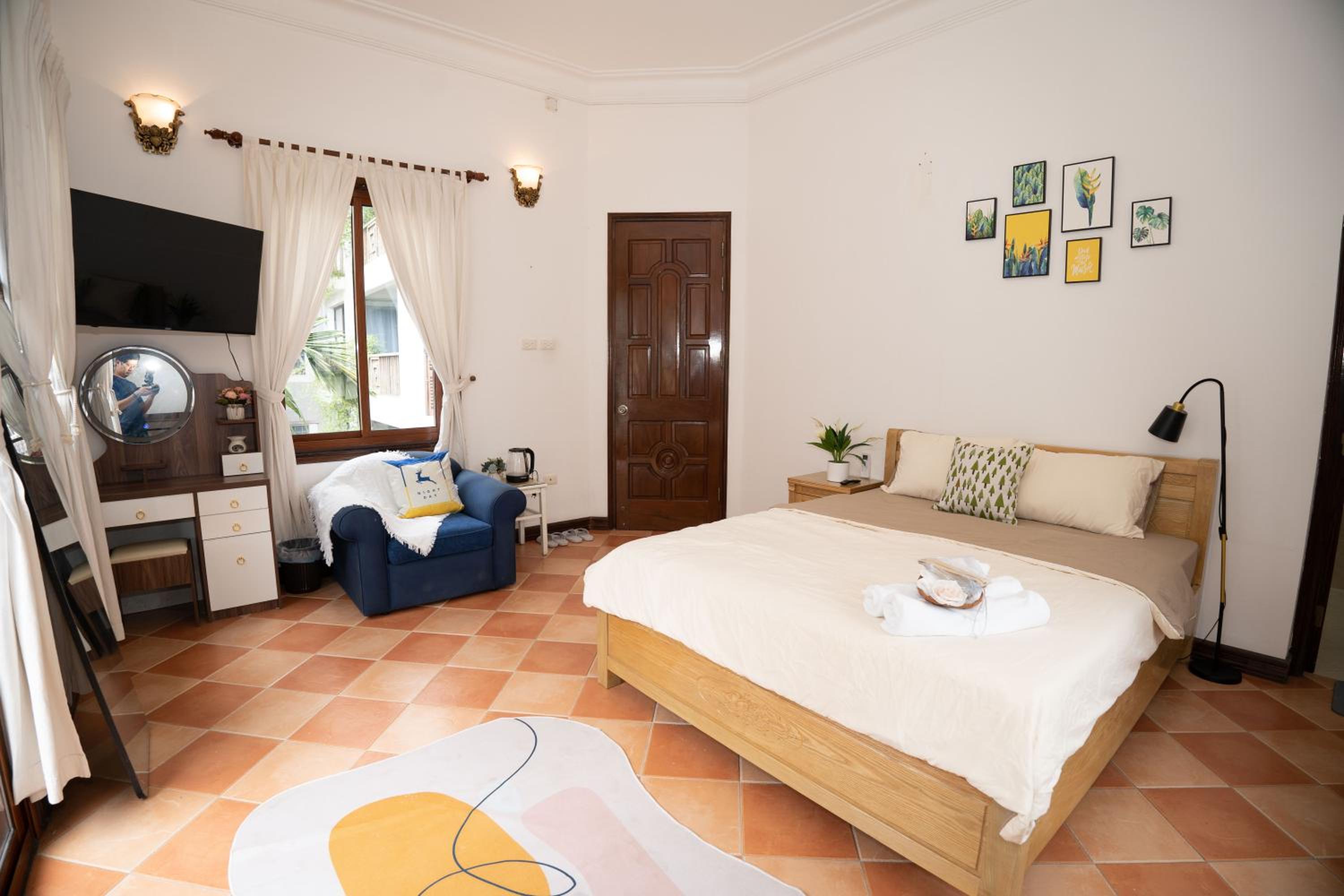 Indulge in a comfortable stay with modern amenities such as air conditioning, flat-screen TV with streaming services, and a private bathroom with bathrobes and slippers.