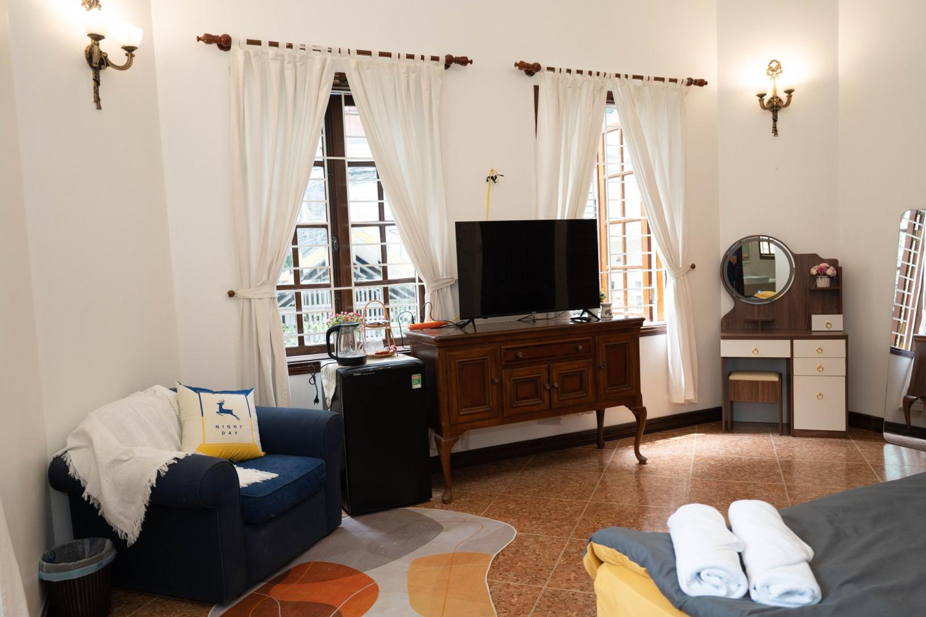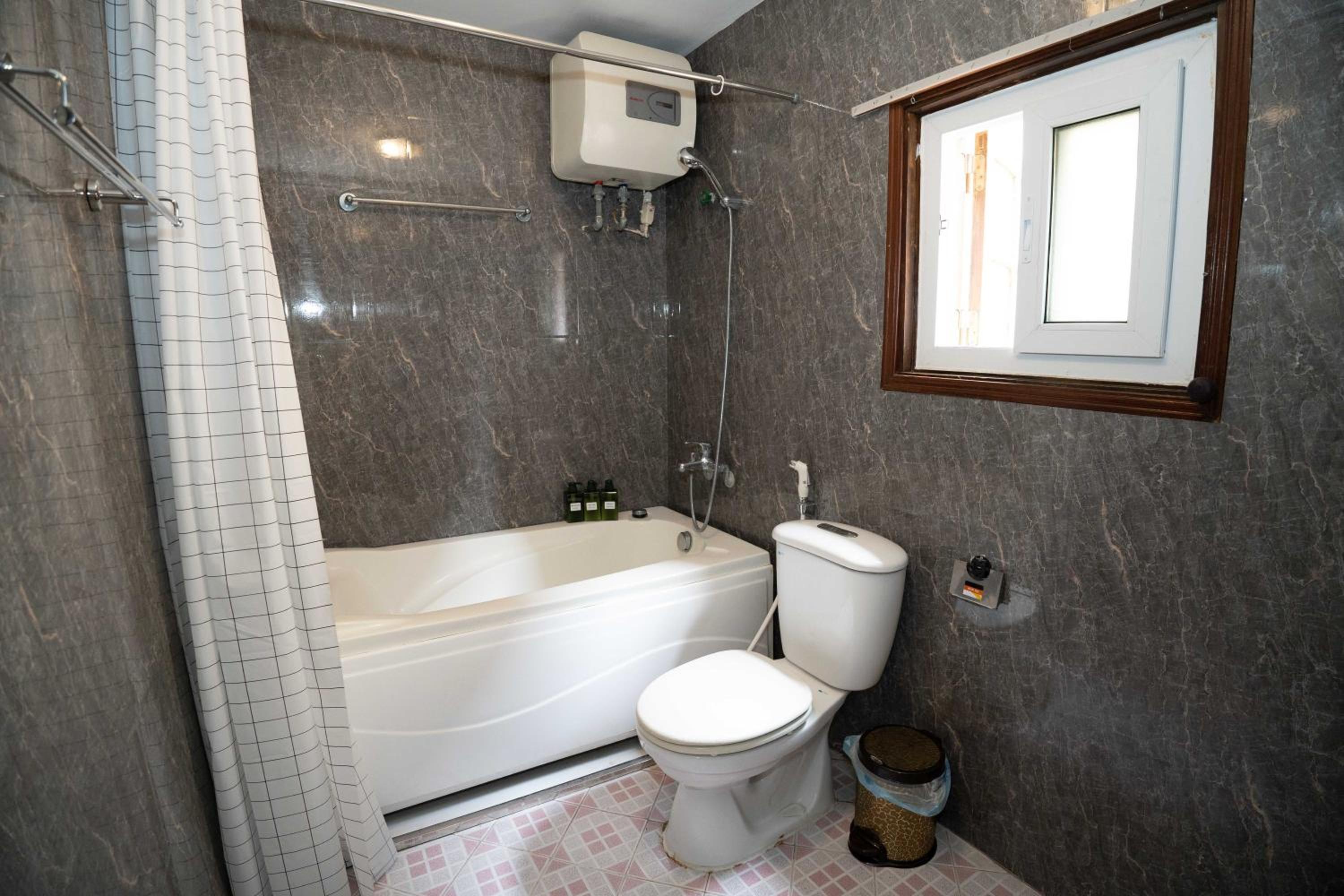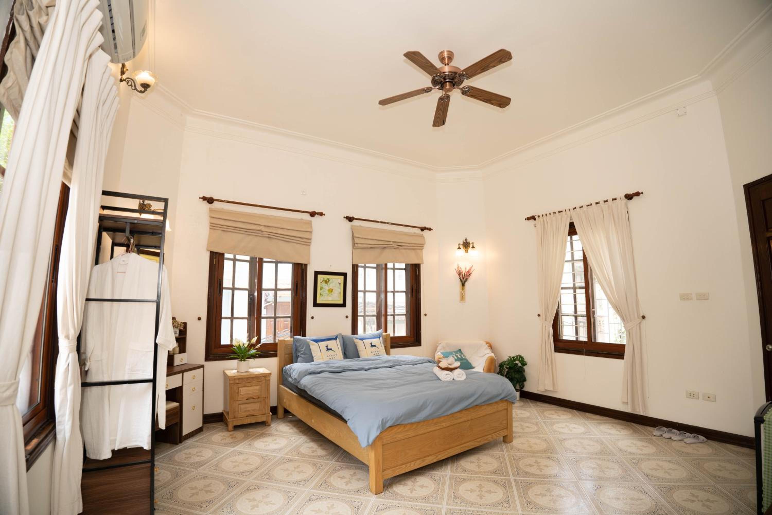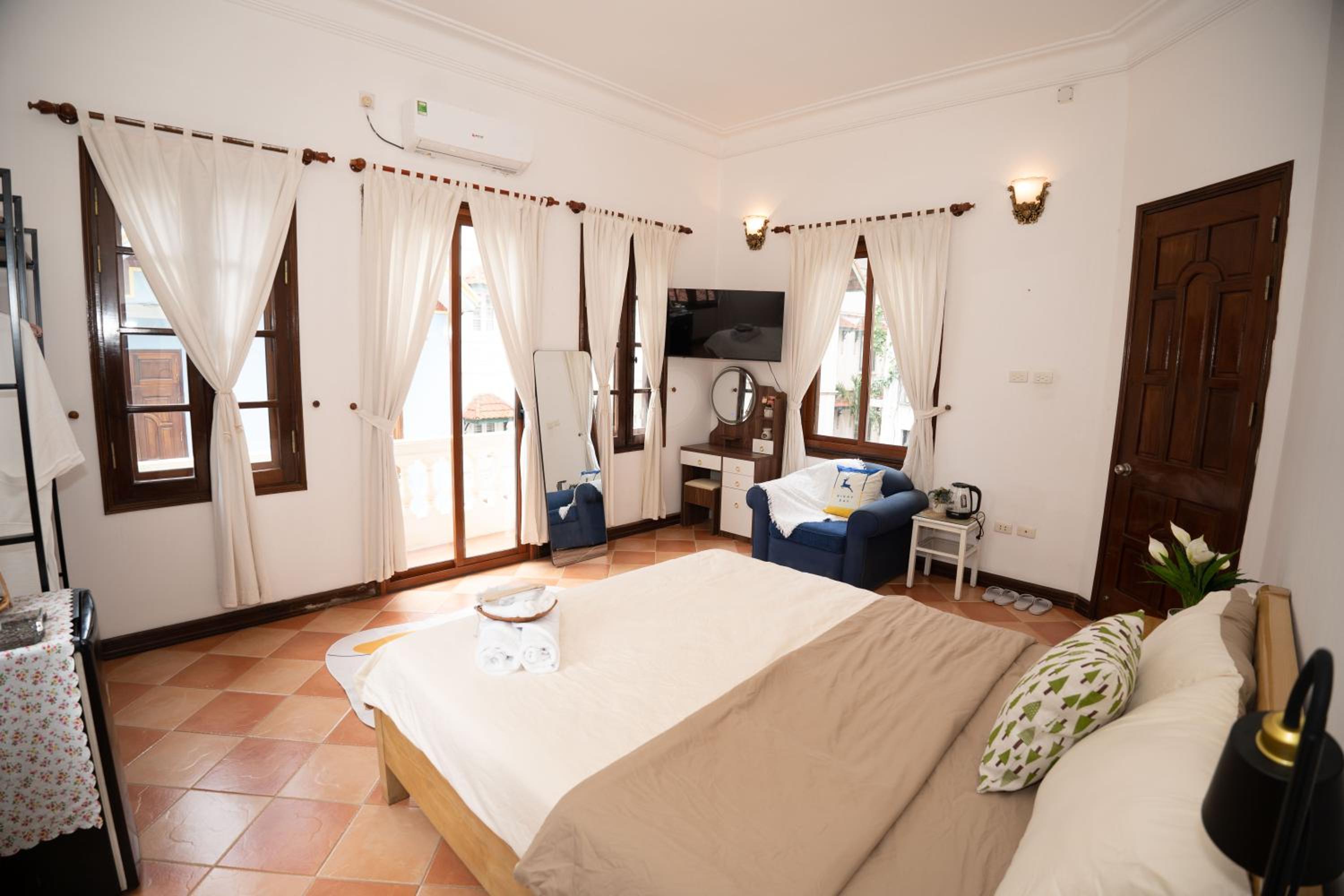 Indulge in a comfortable stay with modern amenities such as air conditioning, flat-screen TV with streaming services, and a private bathroom with bathrobes and slippers.