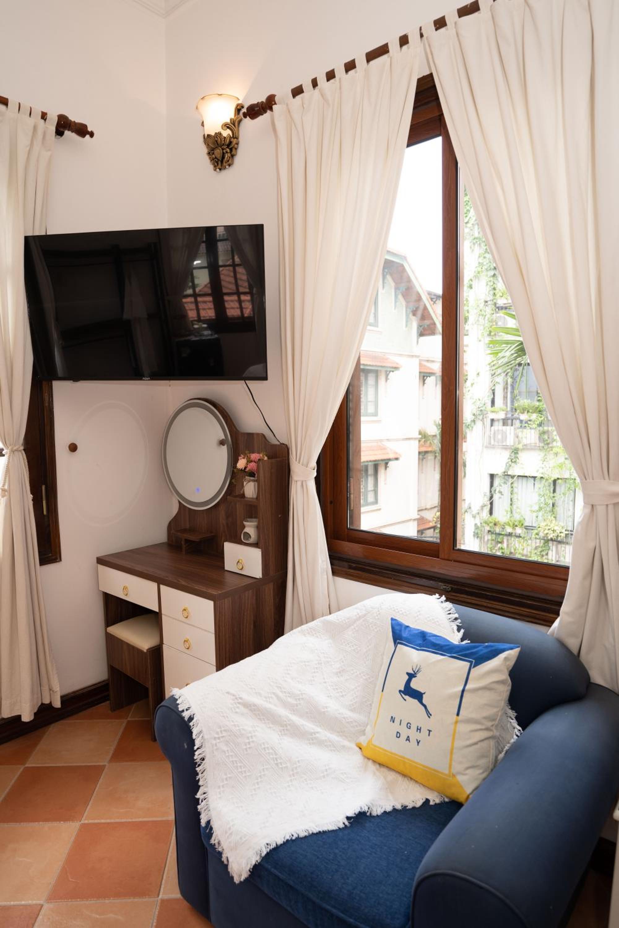 Enjoy the peaceful surroundings with views of the city and inner courtyard, perfect for unwinding after a day of exploring the nearby attractions.
