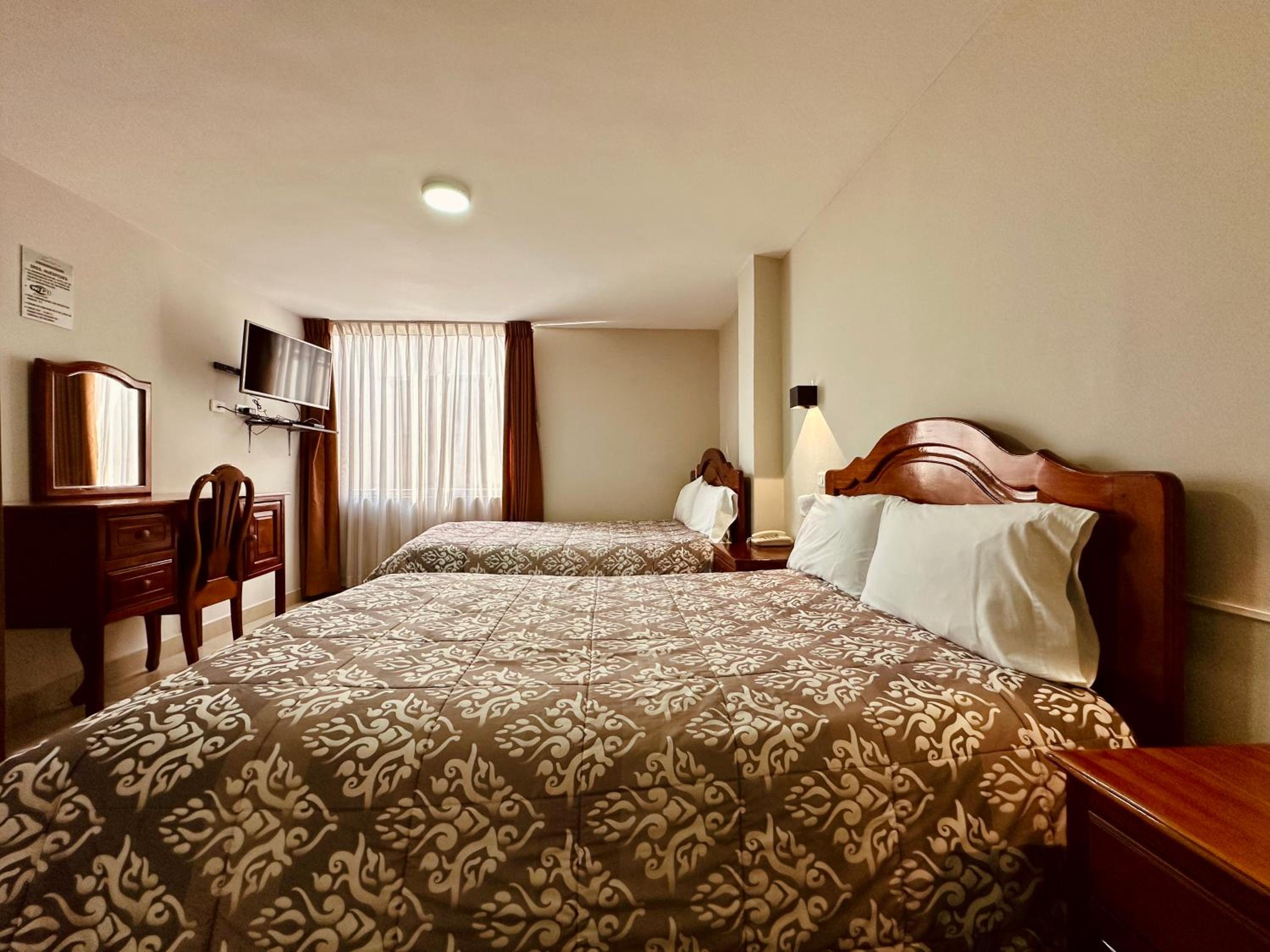 Experience the best of Quito at Hotel Internacional Tiwintza. Unwind in our comfortable rooms with city views and enjoy conveniences like room service and a 24-hour front desk. Start your day right with our scrumptious continental and American breakfast options. Conveniently located near top attractions like Quicentro Shopping Mall and La Carolina Park, our hotel is the perfect choice for your stay in the city. Book now to enjoy a memorable experience at Hotel Internacional Tiwintza.