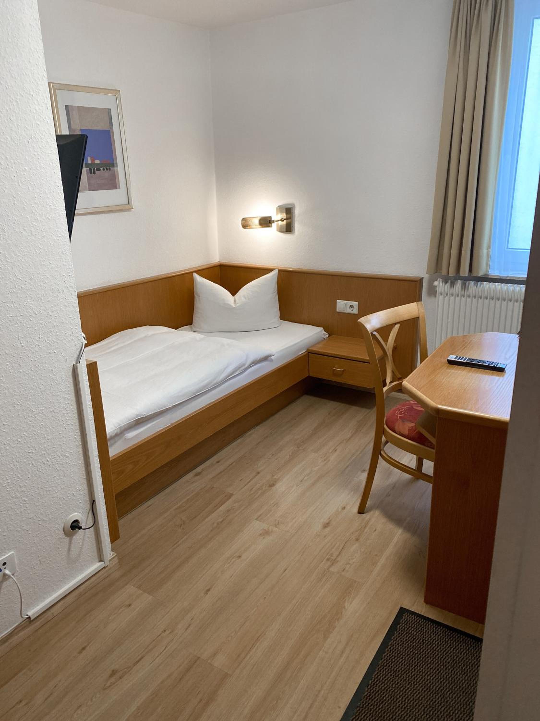 Sehr freundlich, das Frühstück sehr gut 👍 und ausreichend. Das Zimmer war sehr sauber, super Matratze, neues Bad. Mit dem Fernseher hatte ich Probleme.Das Griechische Restaurant im Haus ist sehr zu empfehlen. Super Lage in der Stadt. Parkplatz etwas schwierig.