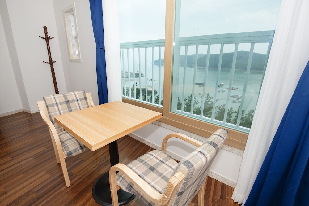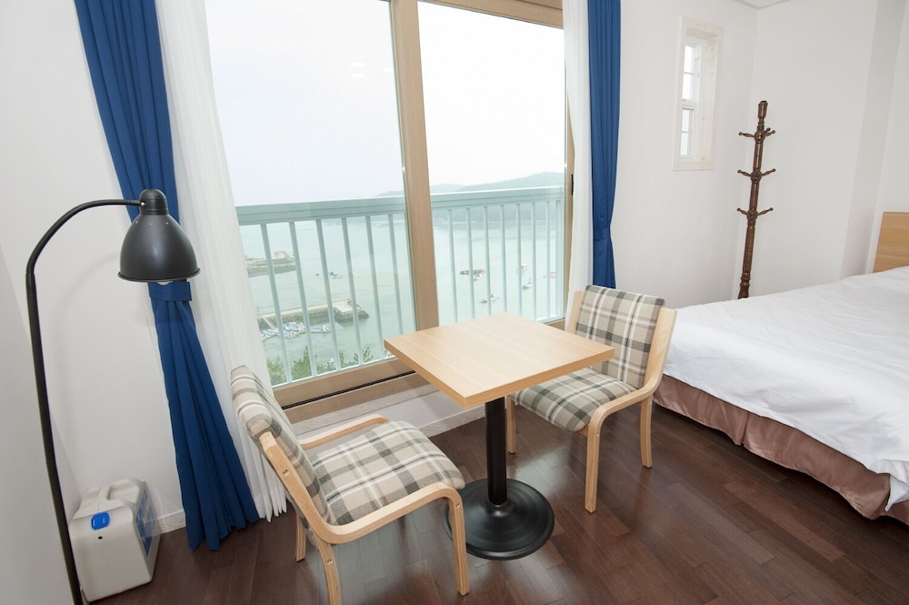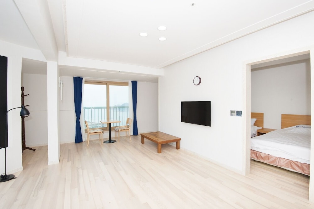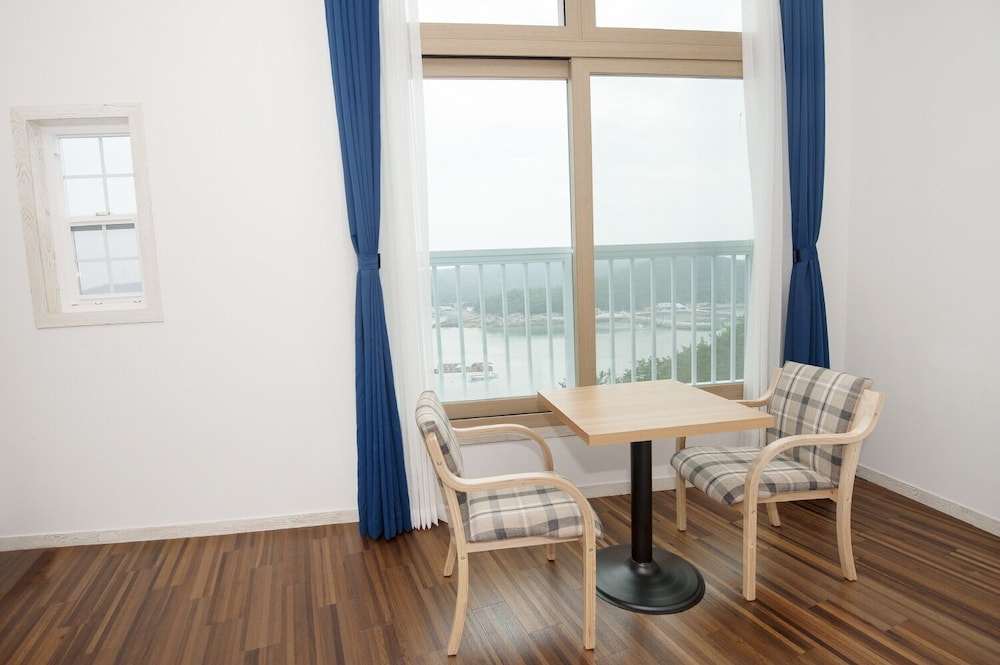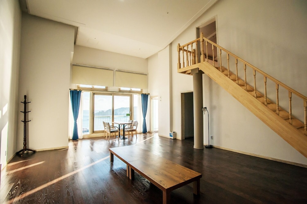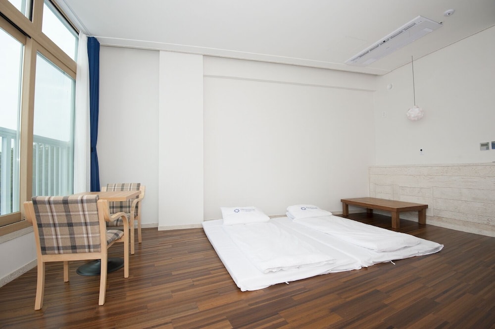 8세 포함 5인 가족, 온돌식 원룸 숙박. 리모델링을 비교적 최근에 마친 것 같고 넓은 마루 원룸에 깨끗한 호텔식 침구, 내부 시원하고 조용. 잡내없음. 공용주방 이용가능한 점 편리. 간소하고 깔끔한 인테리어가 오히려 깨끗해보여서 괜찮은 듯. 주차 편리. 가성비 나쁘지않음. 숙소 내 운영하는 편의시설 없는 듯(혹은 코로나 이후 미운영하는 것일 수 있음). 하지만 읍에 있는 마트에서 필요 물품 구입 후 체크인하기 거리 멀지 않음. 자연 속에 있어서 야간 체크인시 진입로 좀 어두움. 건물 외관 조명이 좀더 밝거나 꾸밈등이 있다면 더 좋을 듯. 아침에 바다 전망이 아름다웠고 씻고 편안히 잘수있는 숙소의 기본에 충실해서 좋았음.