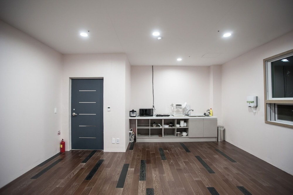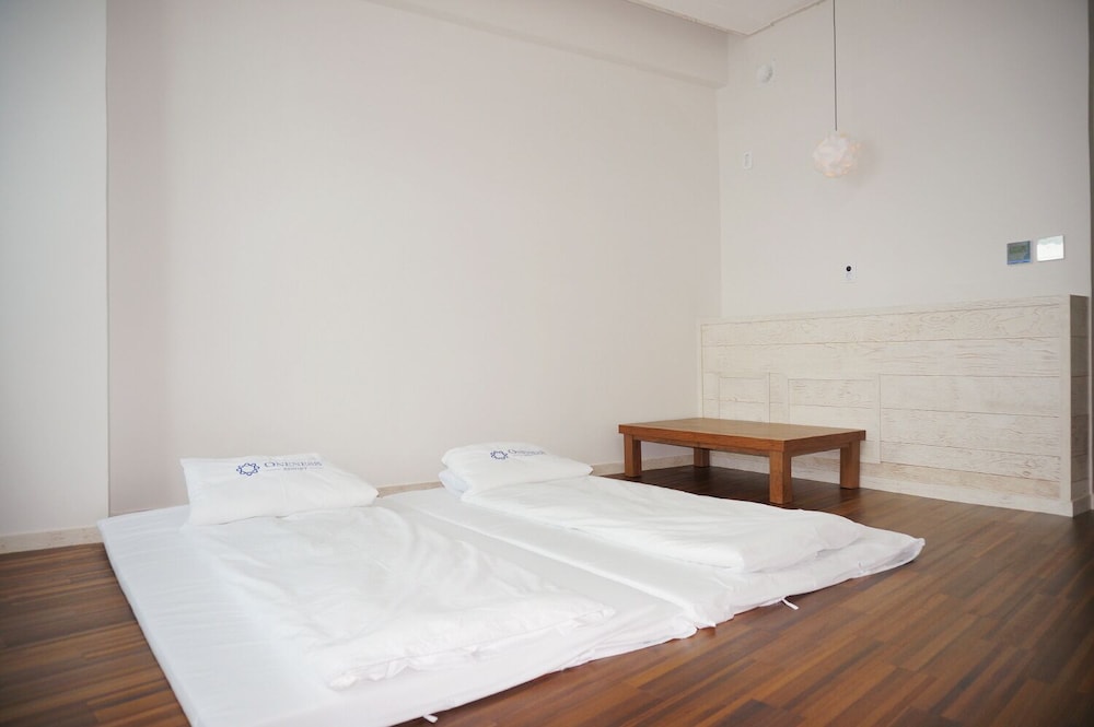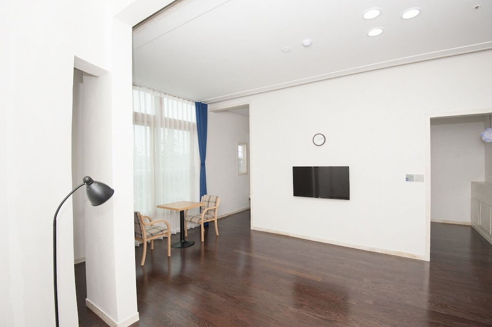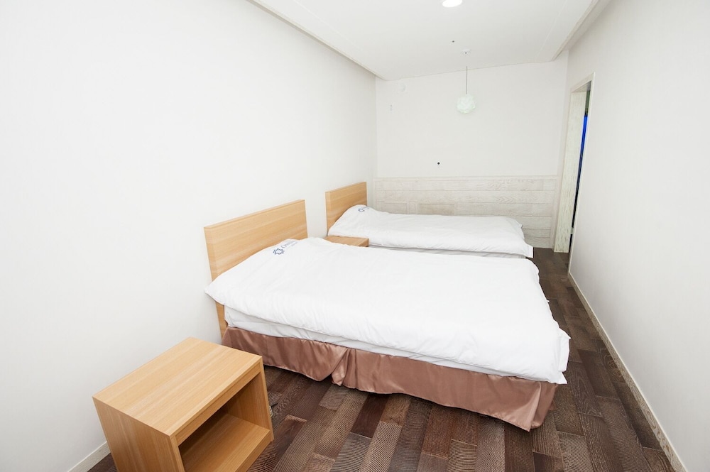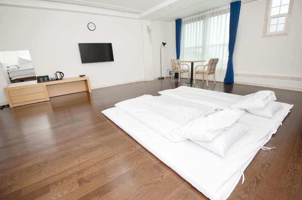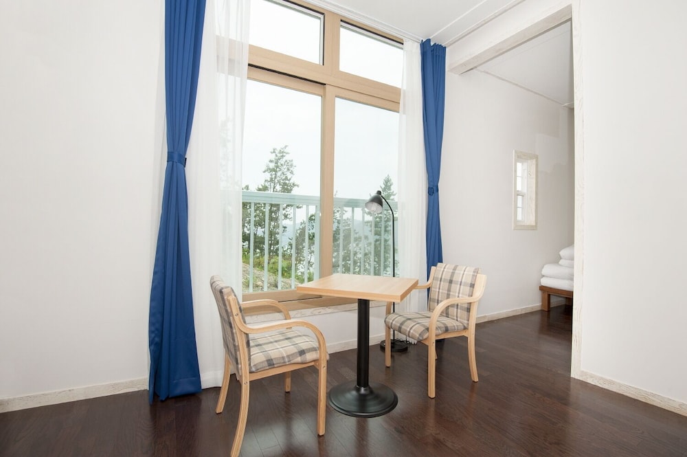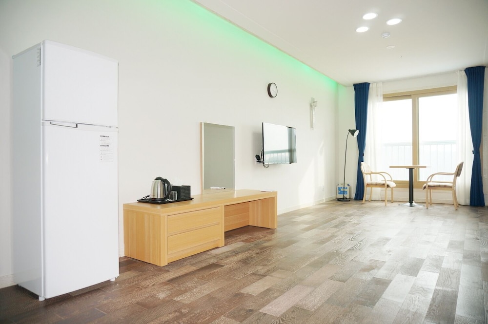 8세 포함 5인 가족, 온돌식 원룸 숙박. 리모델링을 비교적 최근에 마친 것 같고 넓은 마루 원룸에 깨끗한 호텔식 침구, 내부 시원하고 조용. 잡내없음. 공용주방 이용가능한 점 편리. 간소하고 깔끔한 인테리어가 오히려 깨끗해보여서 괜찮은 듯. 주차 편리. 가성비 나쁘지않음. 숙소 내 운영하는 편의시설 없는 듯(혹은 코로나 이후 미운영하는 것일 수 있음). 하지만 읍에 있는 마트에서 필요 물품 구입 후 체크인하기 거리 멀지 않음. 자연 속에 있어서 야간 체크인시 진입로 좀 어두움. 건물 외관 조명이 좀더 밝거나 꾸밈등이 있다면 더 좋을 듯. 아침에 바다 전망이 아름다웠고 씻고 편안히 잘수있는 숙소의 기본에 충실해서 좋았음.