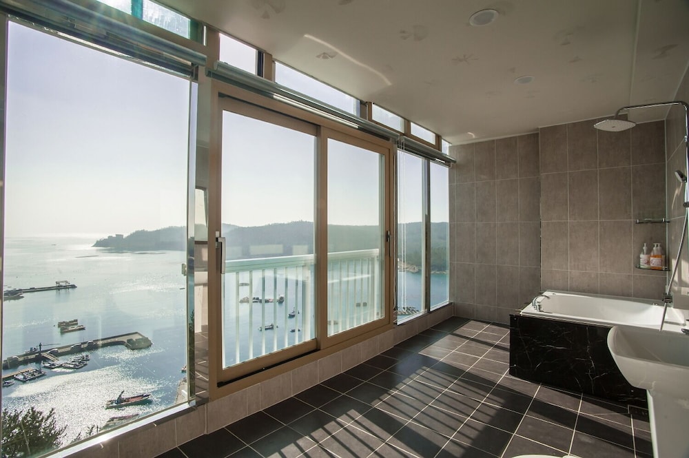 내부 시설이 다소 아쉬움이 있습니다. 1층 커피숍 등 부대시설은 운영되지 않고 로비 내 조명도 켜지 않아 분위기도 어둡고 횡합니다. 방문한 날 4팀 정도가 이용한듯 한데 11평짜리 룸을 이용했는데 베개는 1개씩 밖에 없고 옷장도 없고 옷걸이도 없고 슬리퍼도 없고 구두손도 없습니다. 가격치곤 모텔 느낌이 다소 드네요. 리조트인데 간단한 취사도구도 없습니다. 아쉽습니다. 그나마 객실 모두 바다가 방향이라 그건 좋네요.