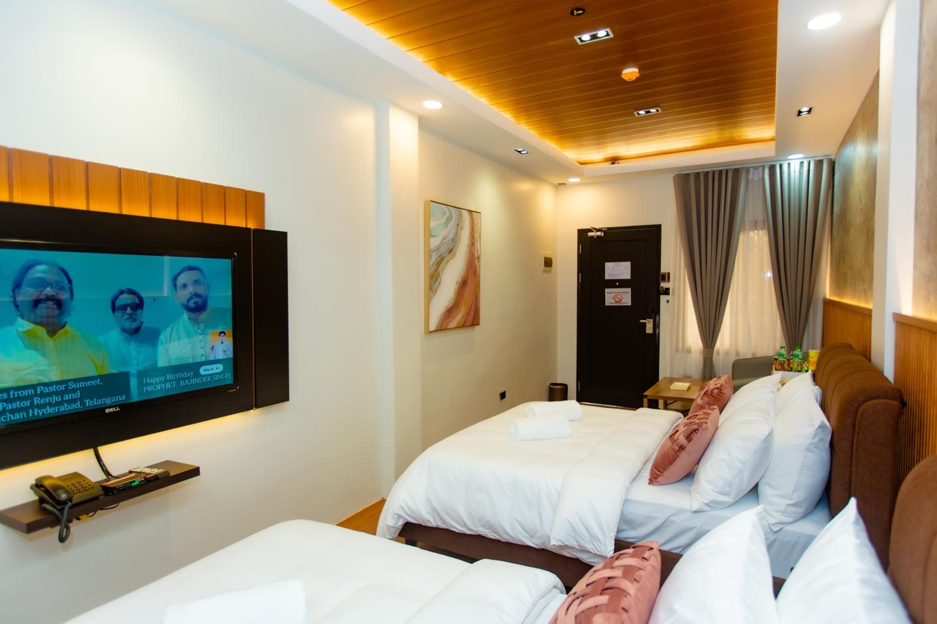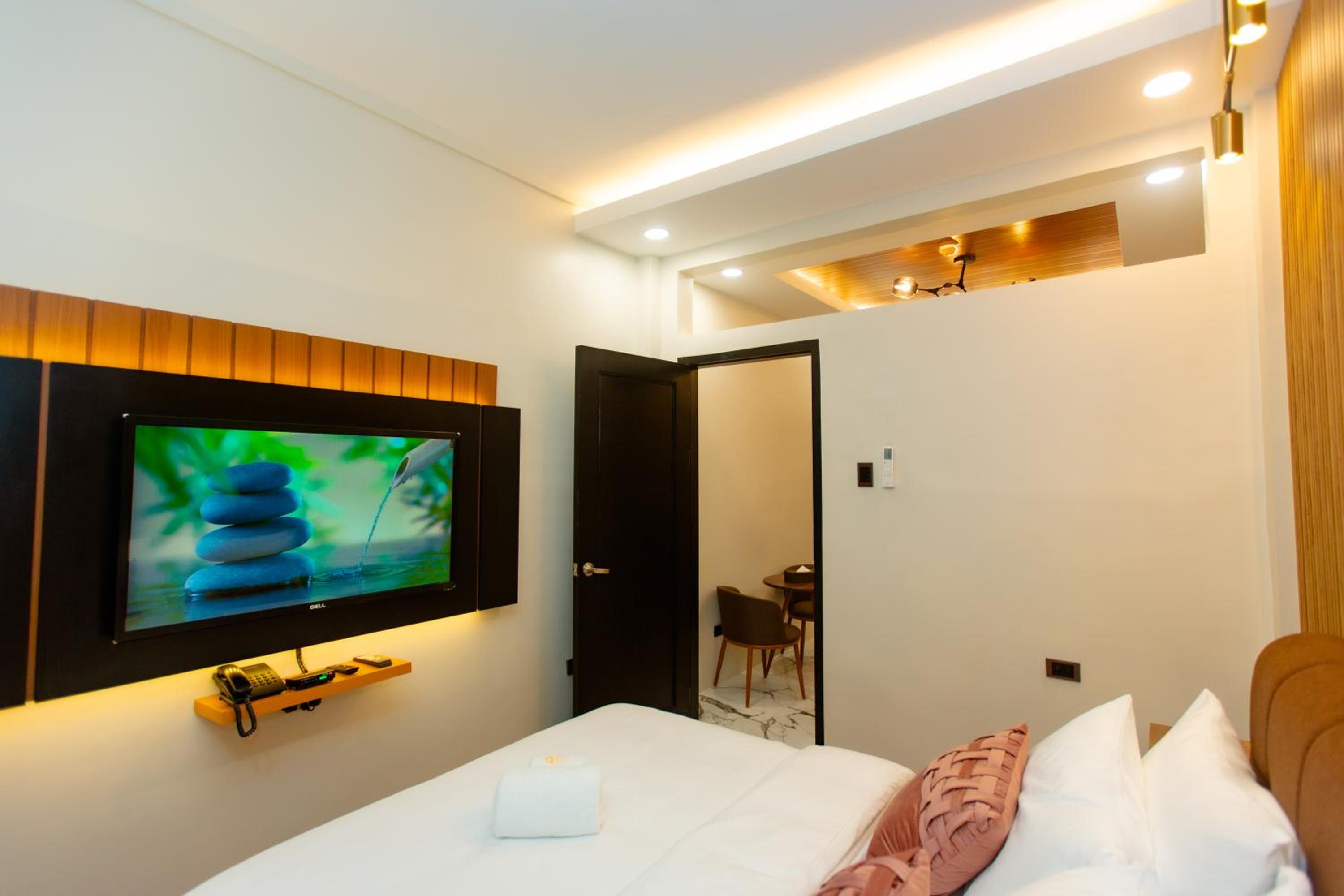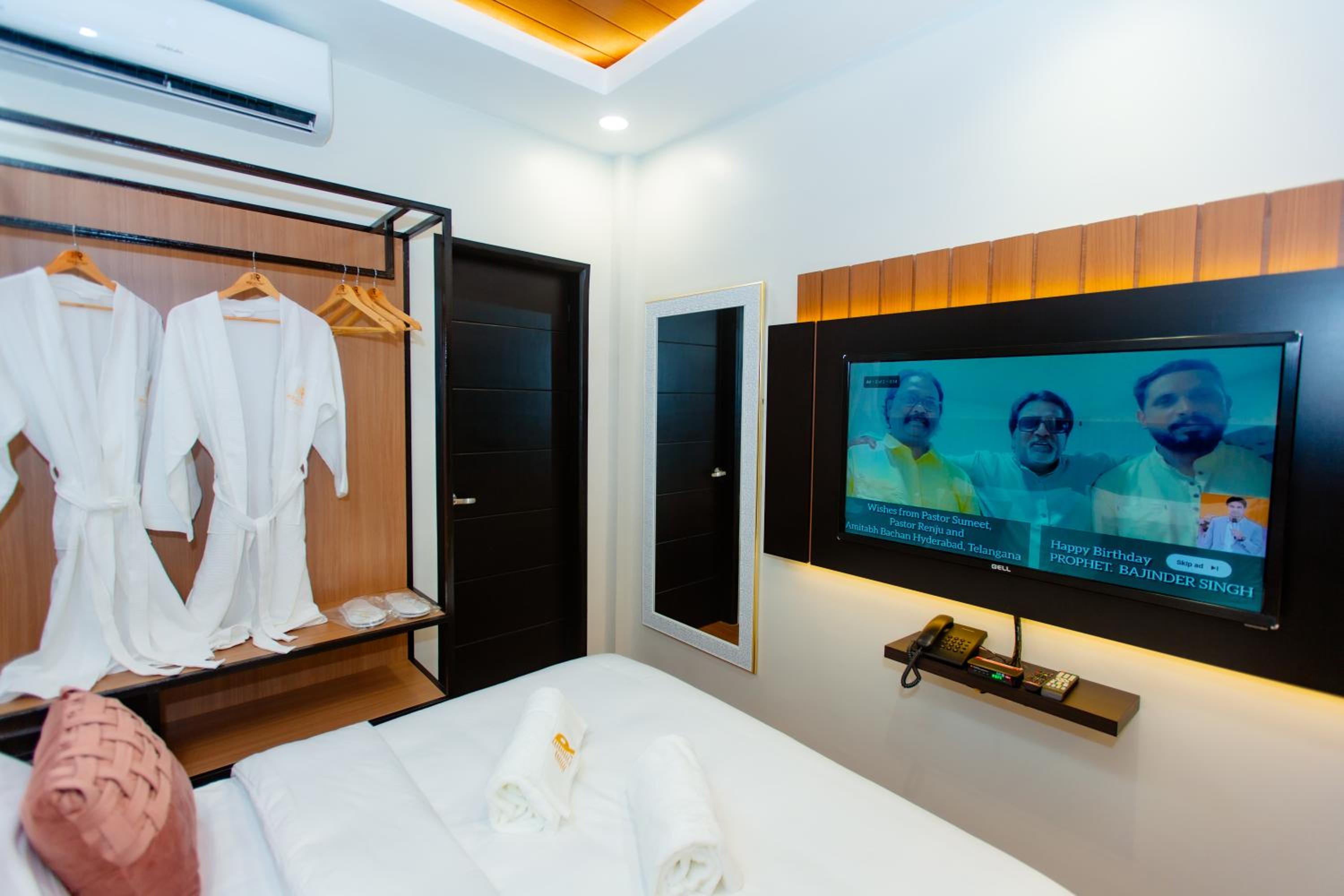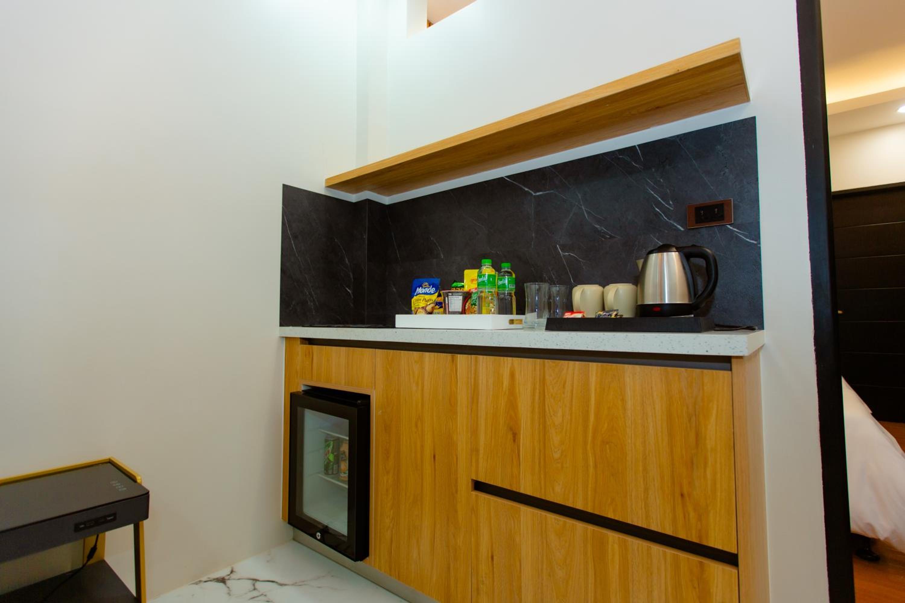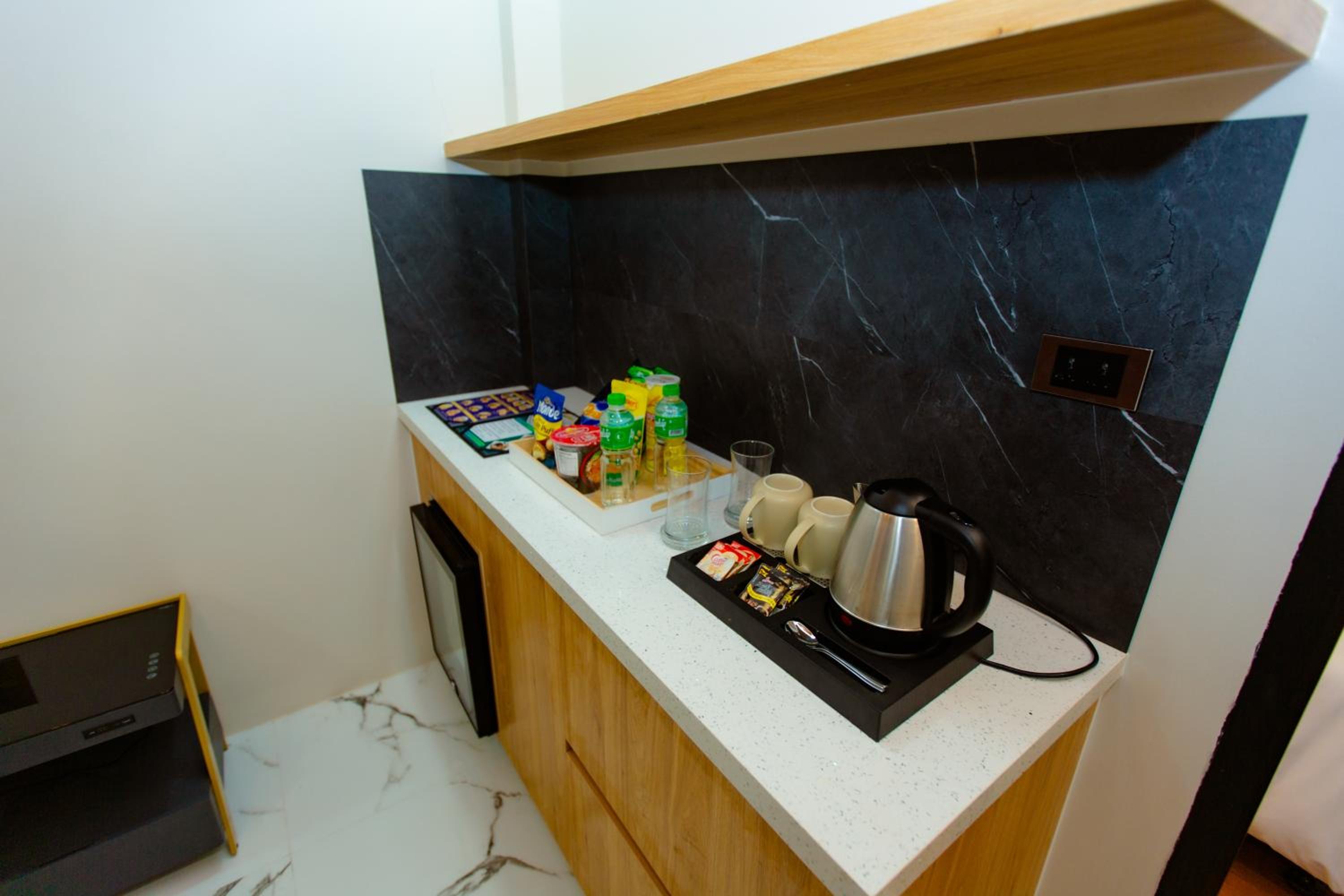 Very new hotel, clean and comfortable rooms with very hi-tech facilities. All the usual amenities were provided. Large courtyard for self-parking with security guard monitoring. Breakfast was provided to the room at the requested time, from a selection of four options, nothinmg fancy but perfectly adequate.
