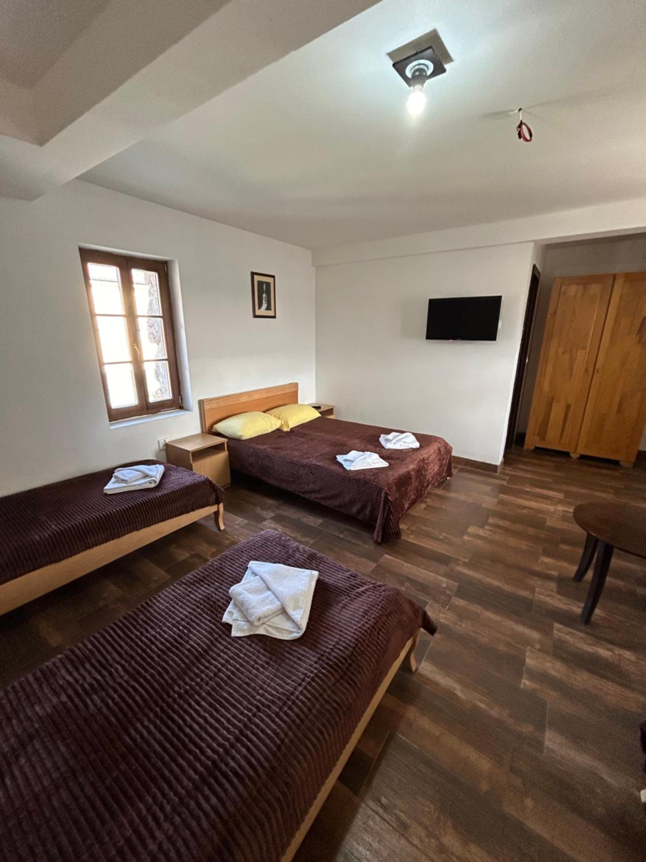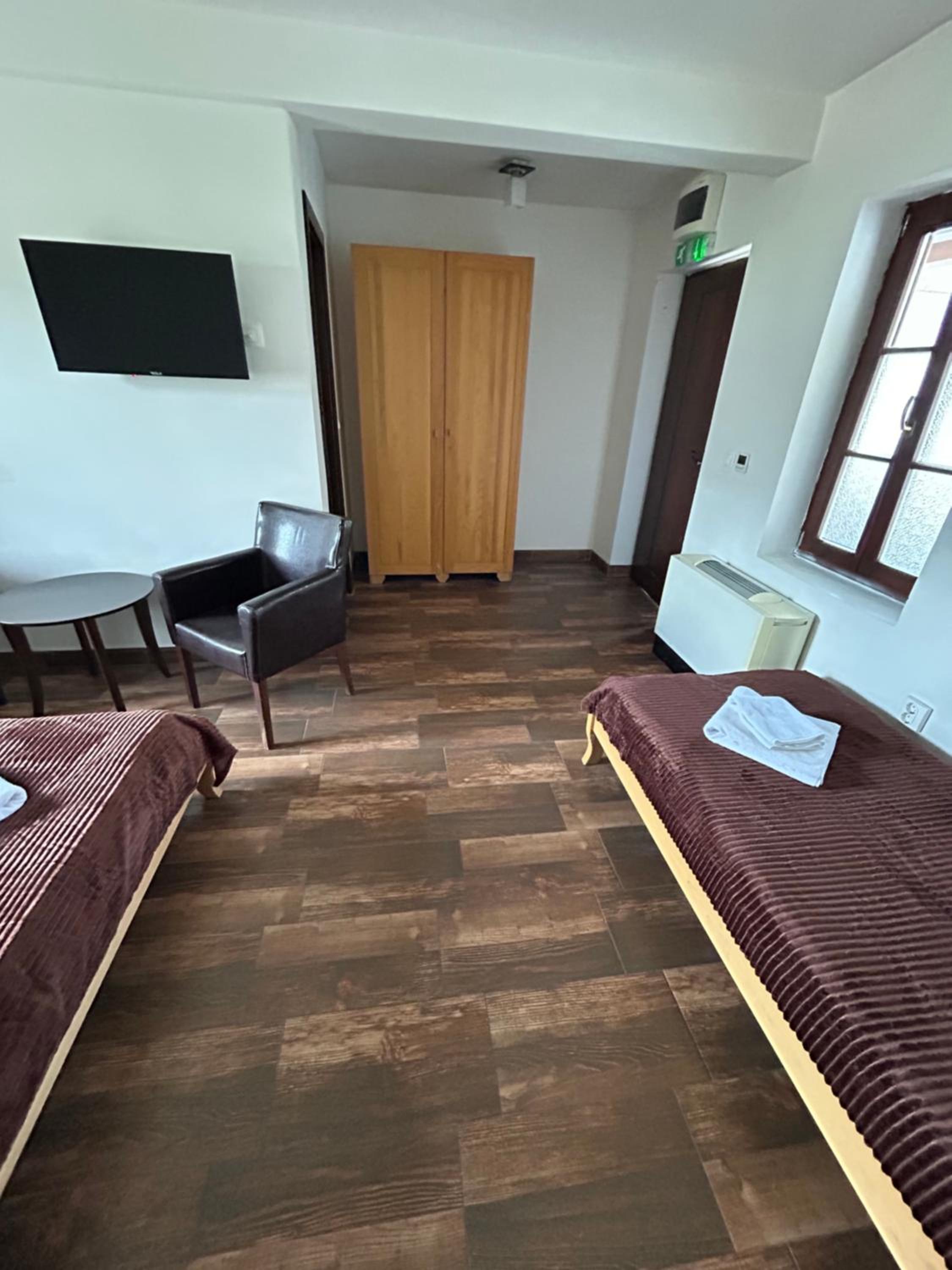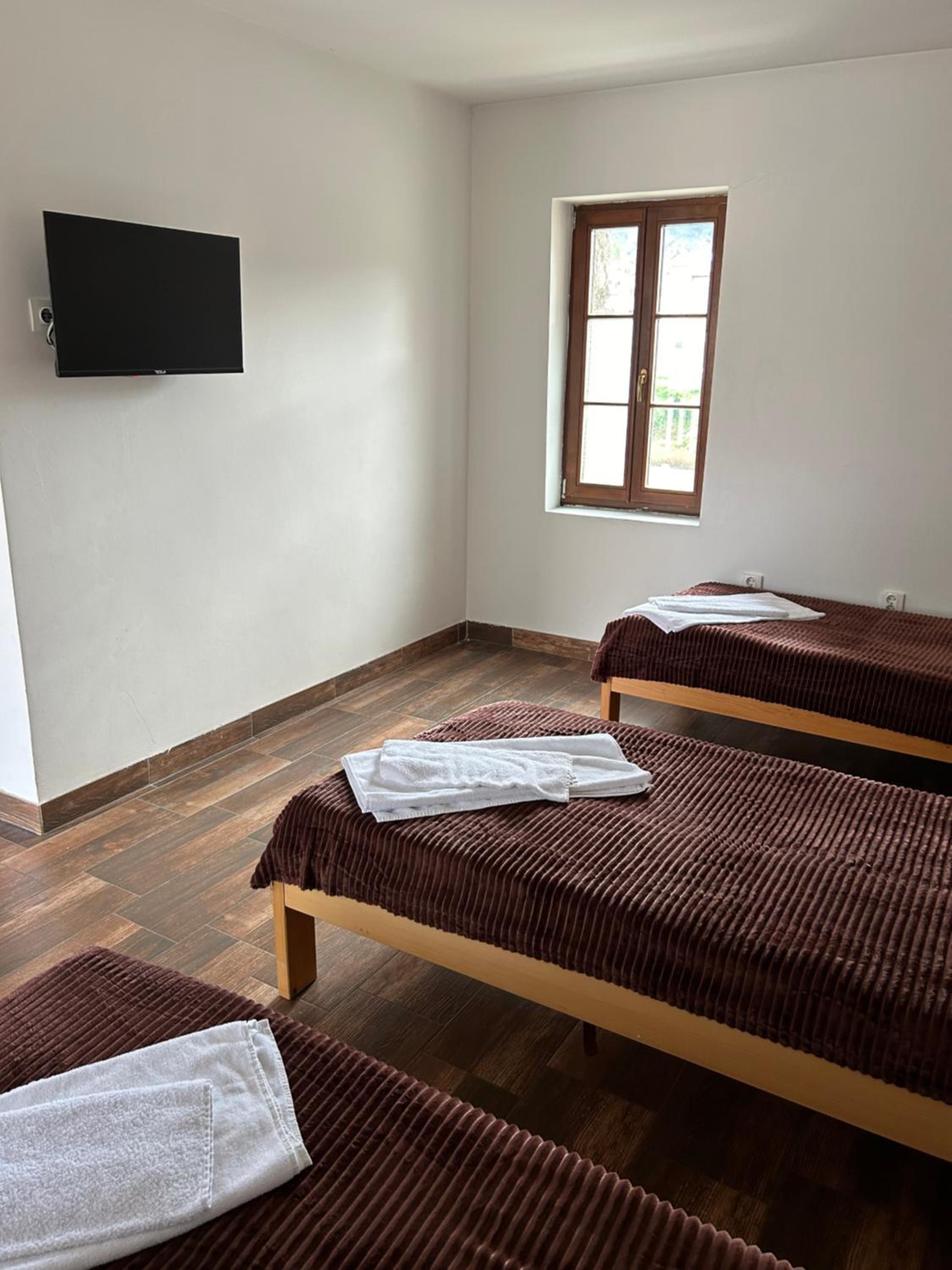 Odlicna lokacija, na samom ulasku u Andricgrad. Jednostavna soba, tri kreveta, natkasna, ormar i tv. Osoblje na recepciji jako ljubazno.