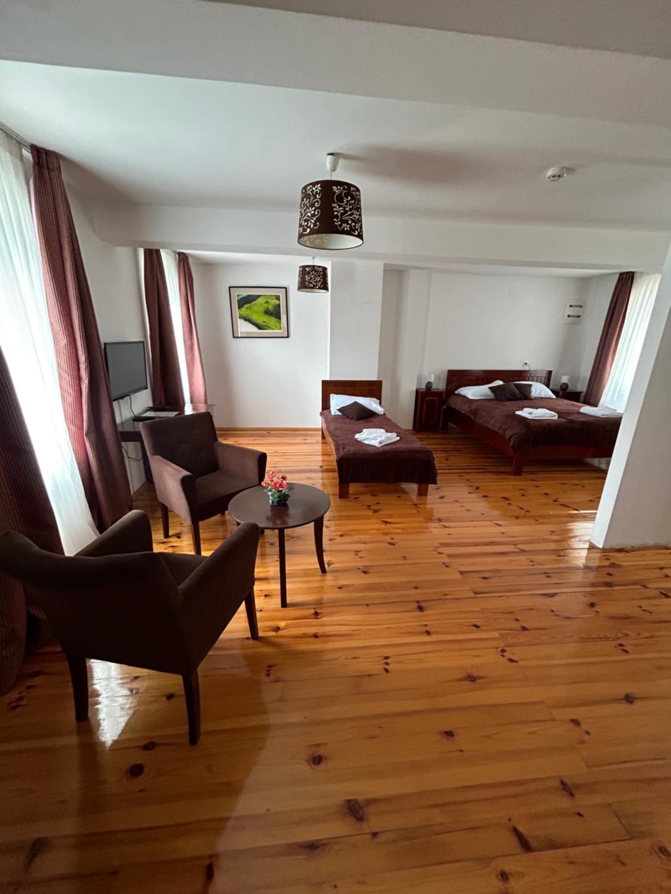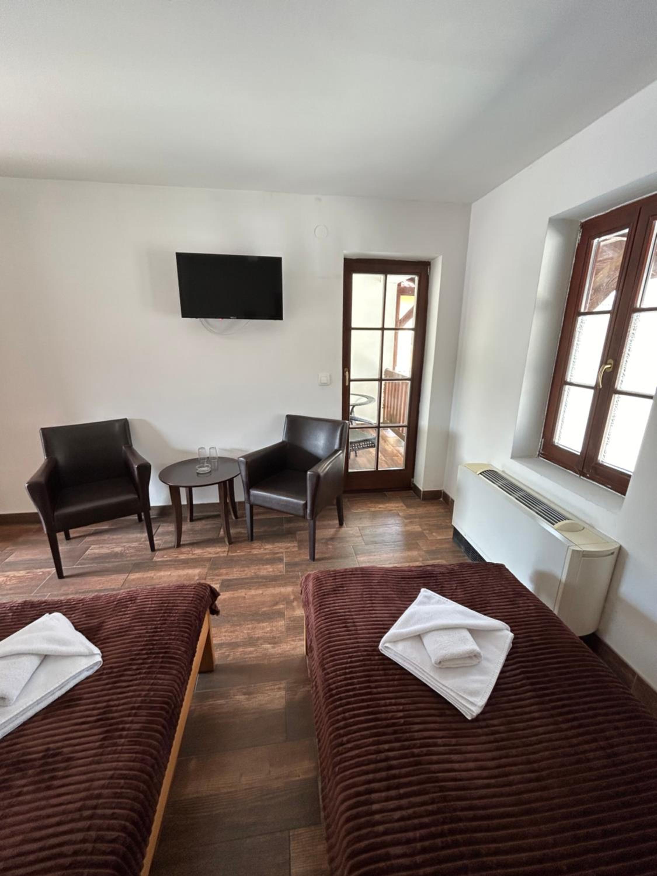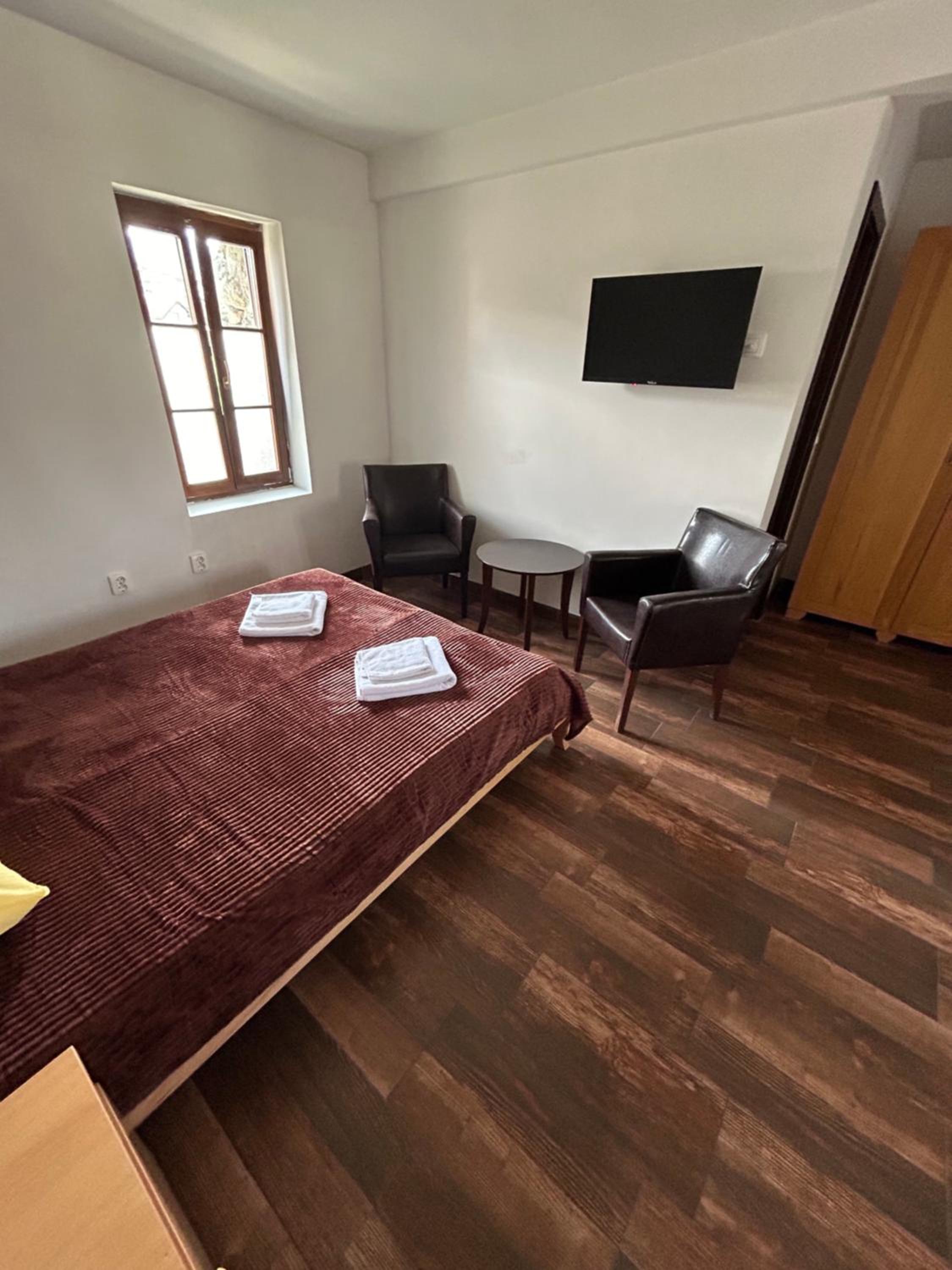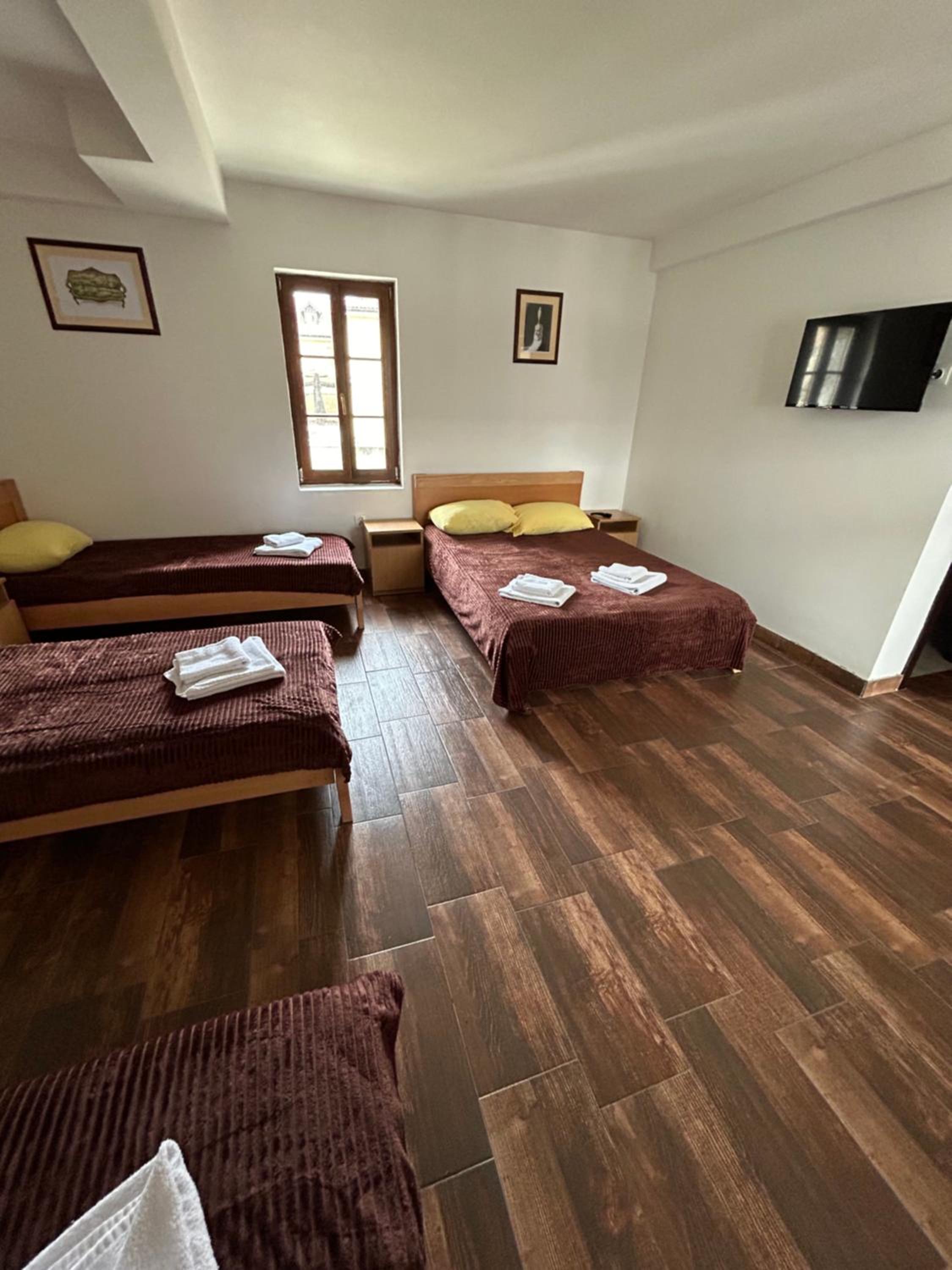 Odlicna lokacija, na samom ulasku u Andricgrad. Jednostavna soba, tri kreveta, natkasna, ormar i tv. Osoblje na recepciji jako ljubazno.