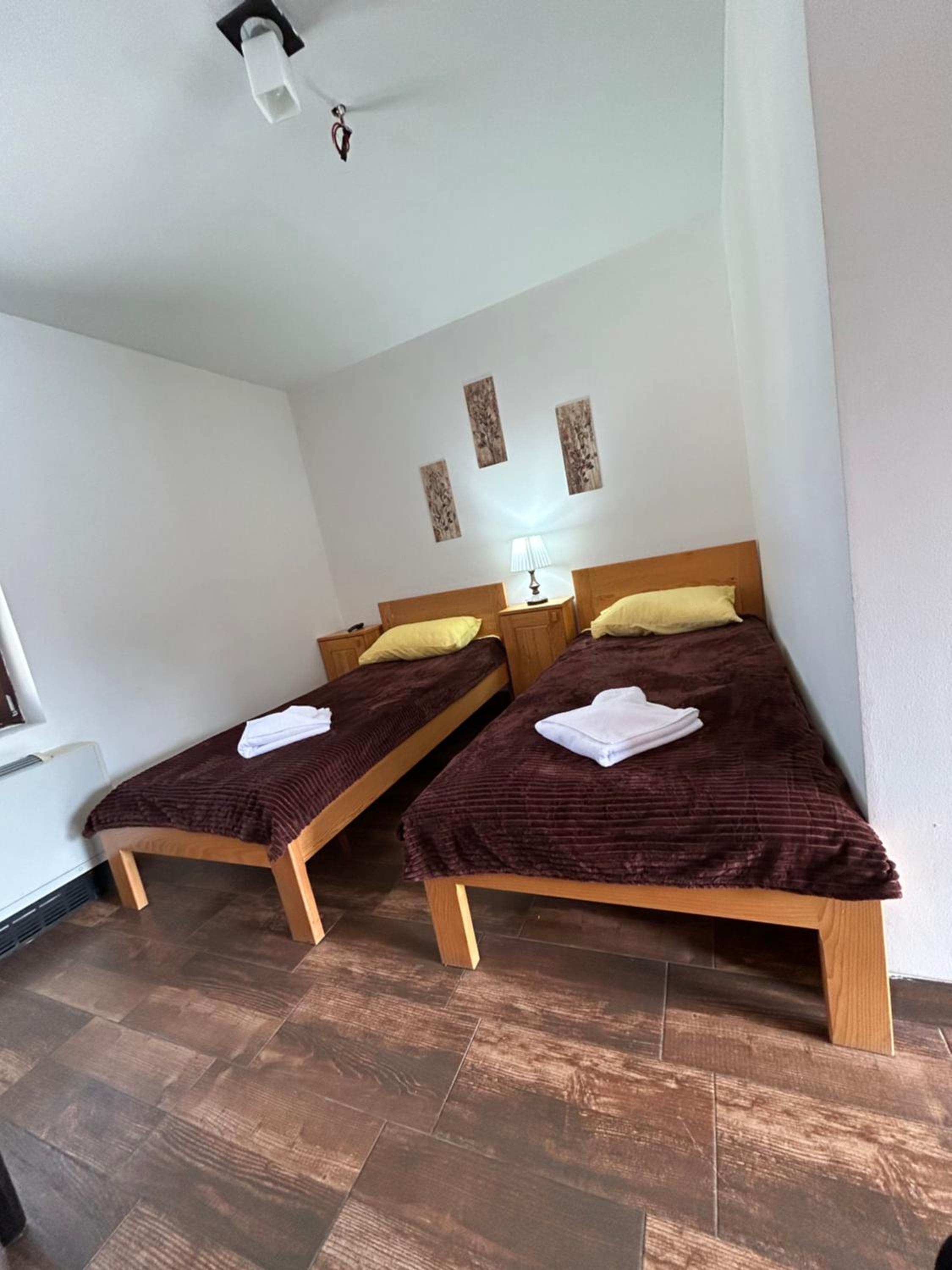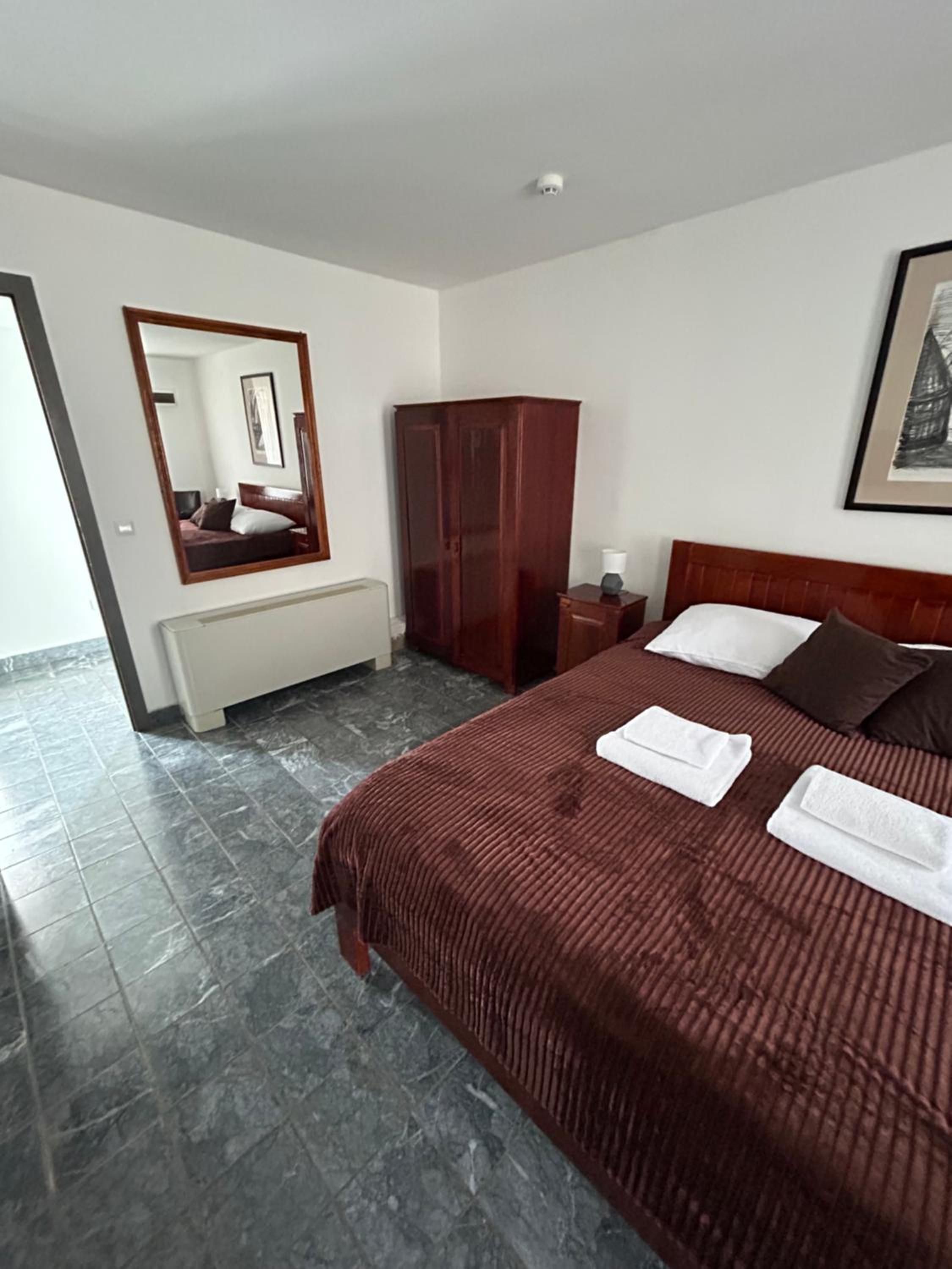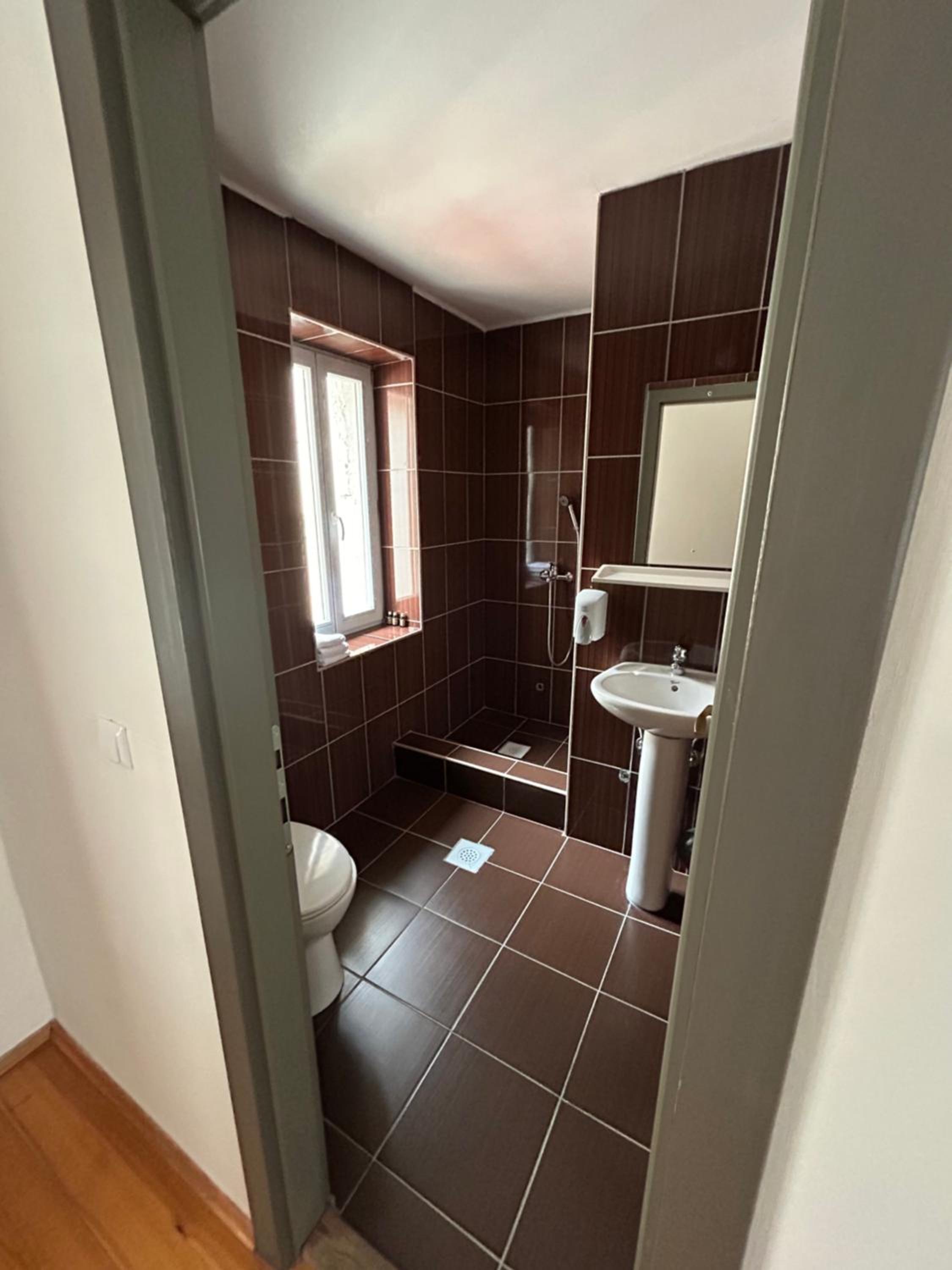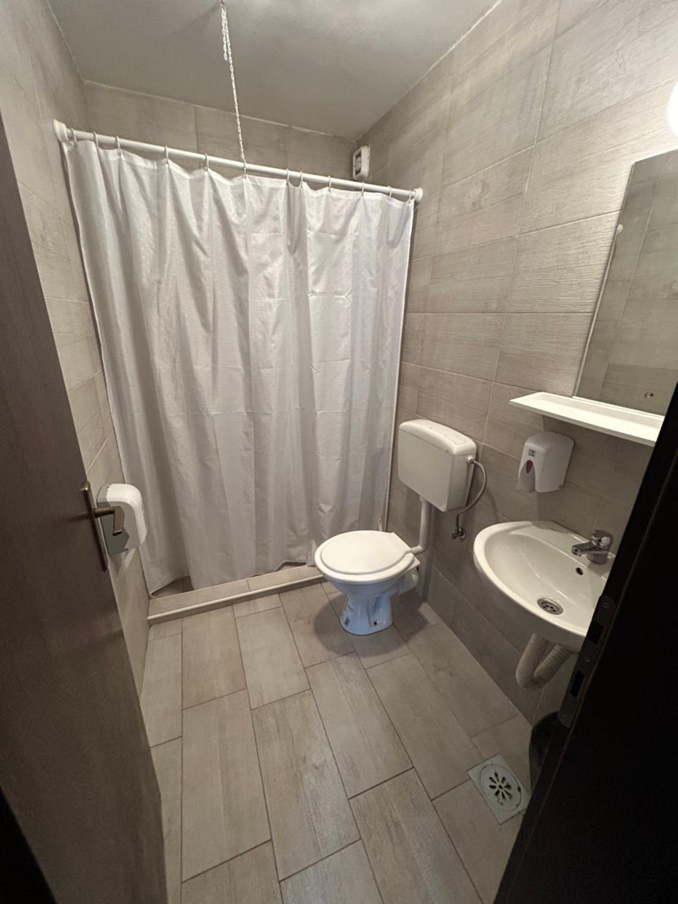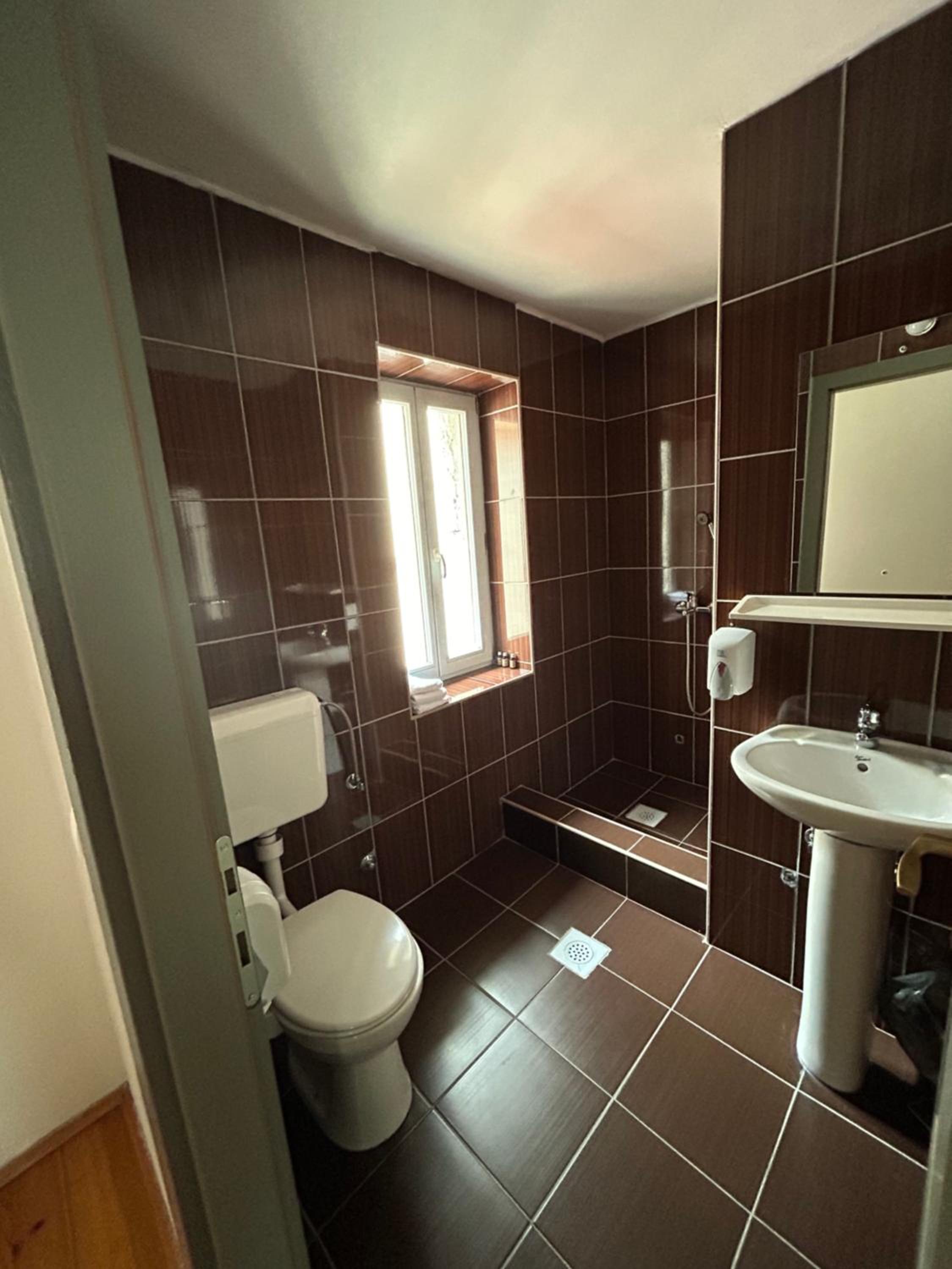 Jako zapusteno, viri zica iz tuša, voda prska jer glava tuša nije ispravna, celo kupatilo je u tiplovima gde je bilo nekad nesto a sada ne stoji nista, dosta polomljenih ili napuklih plocica. Kamenac u wc šolji. Grejanje u sobi skoro pa nikakvo. Pored vrata stoji uređaj koji jedva da izduvava vazduh koji je bio mlak, čak ni topao. Jako star uređaj. Najveći problem jeste što sve deluje kao da se održava jako nemarno.Odseli smo dve noći, nismo videli nikoga od osoblja osim recepcije. Sve u svemu, jedan od lošijih smeštaja u kojima smo odseli.