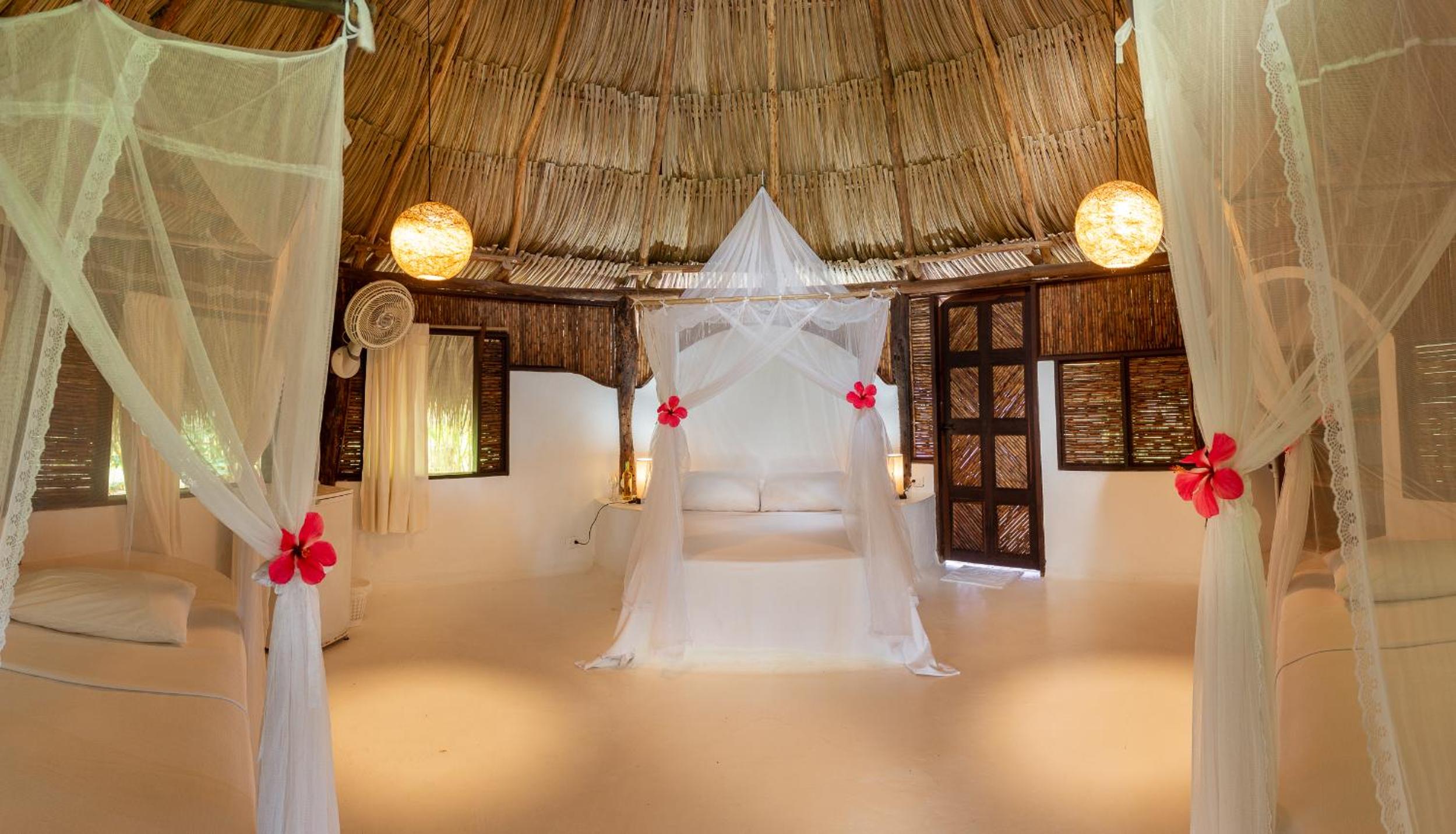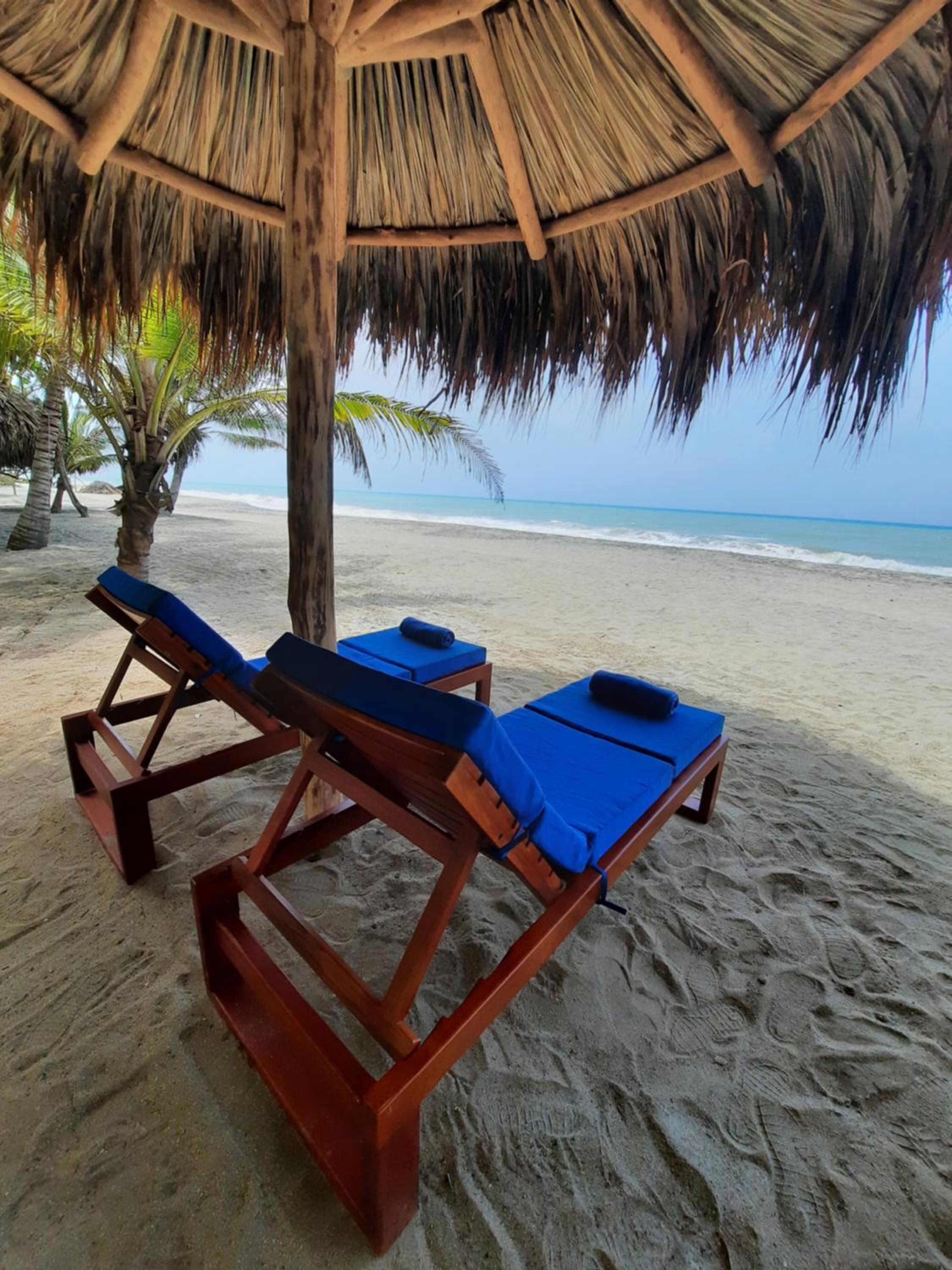 Es un eco lodge, con baño exterior, mosquitero. Super bonito, muy diferente a hoteles tradicionales. Ideal para ir a desconectarse, leer, estar relajado. Tiene una playa bonita, aun no se la ha comido el mar como en otros sitios en palomino. El personal super querido, amable.