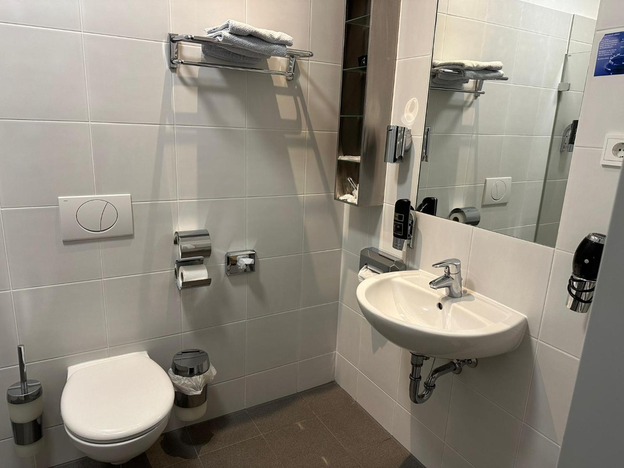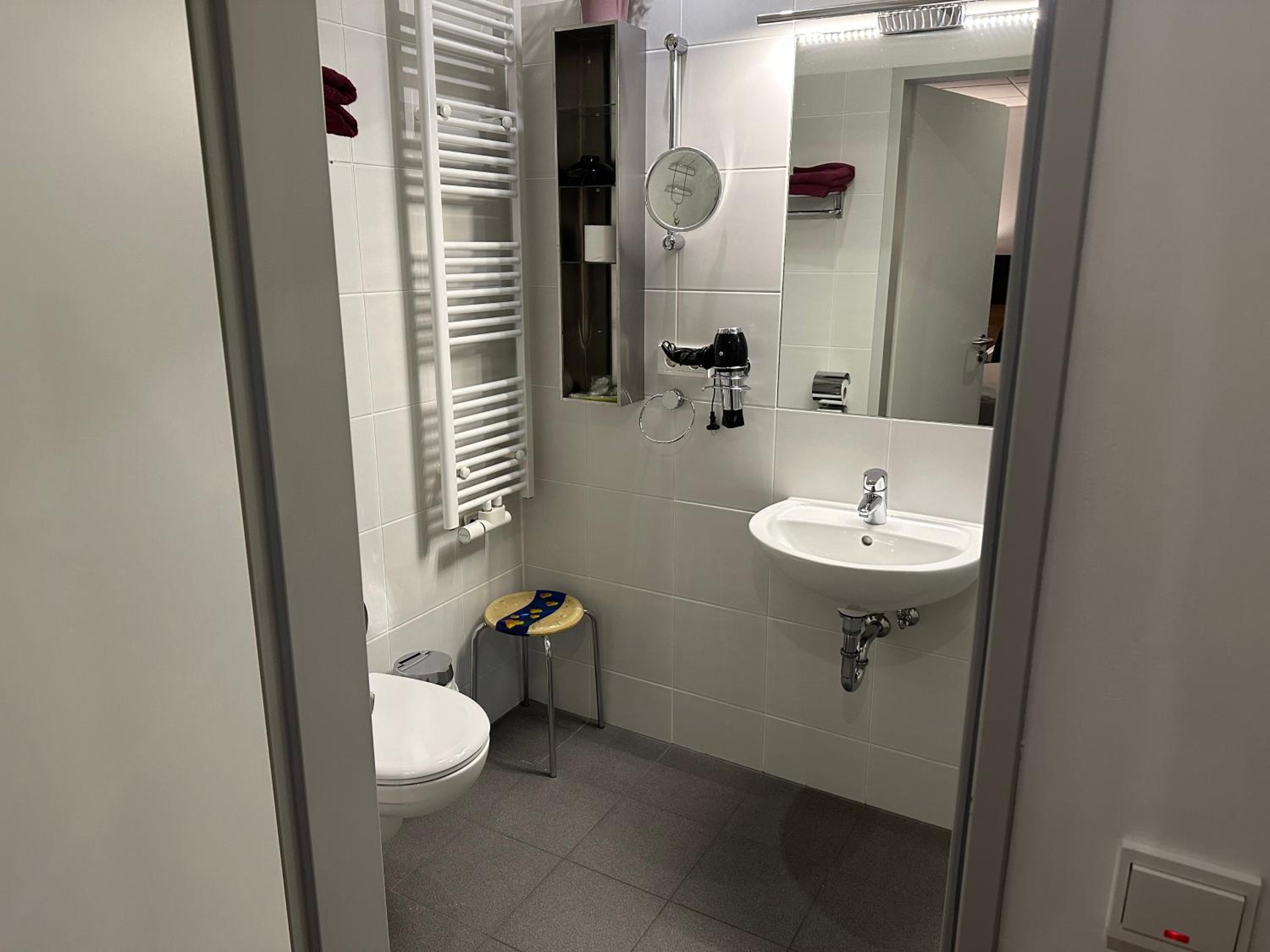 Das Bad sieht aus, wie im Khs. Das Zimmer lieblos.
