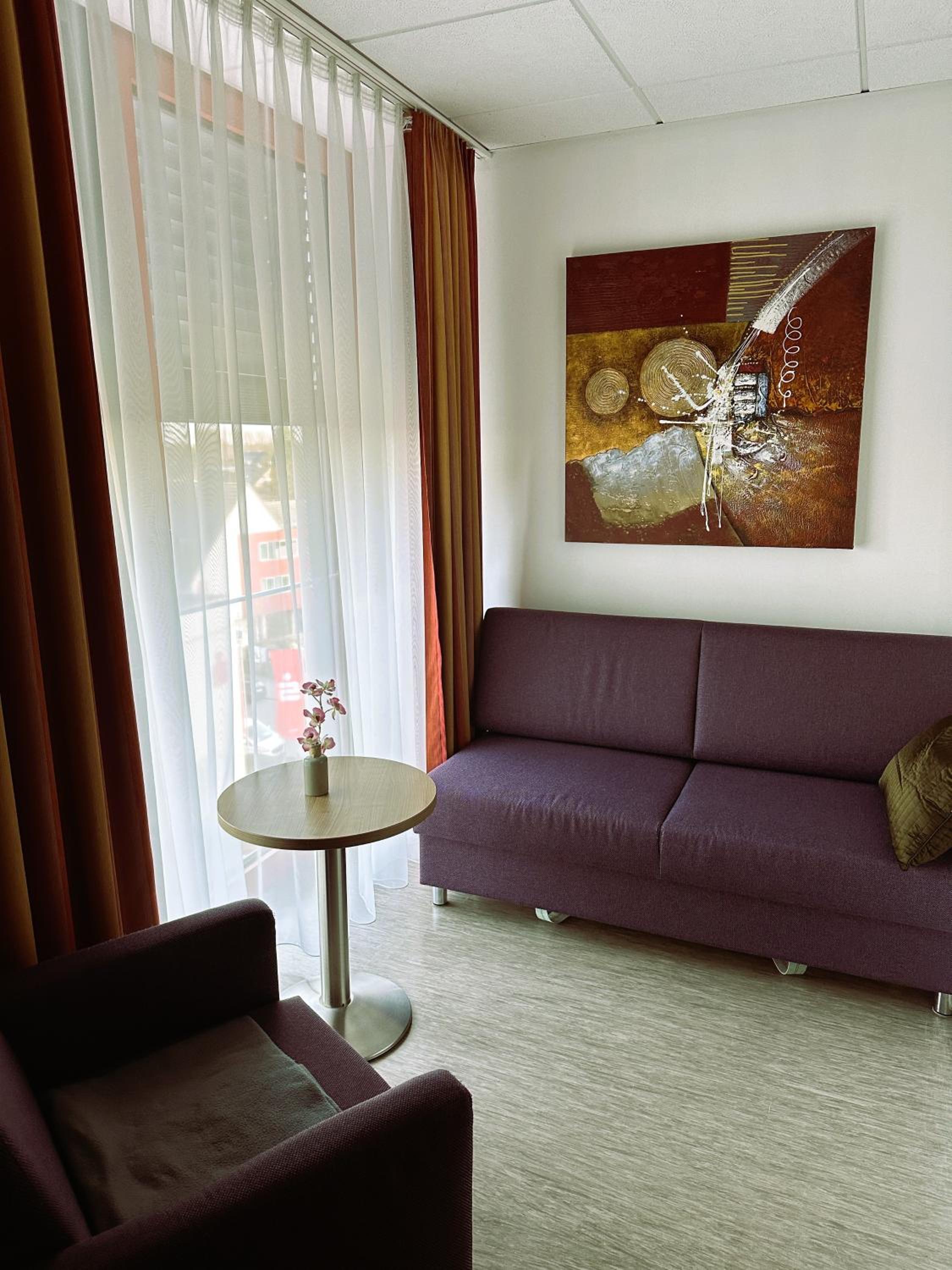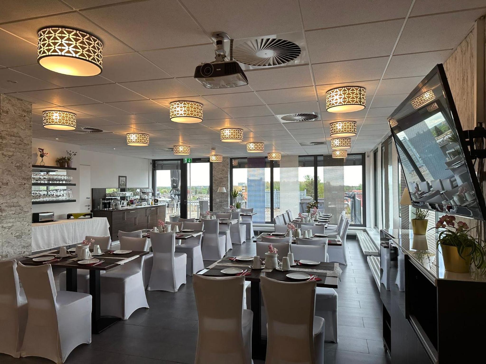Nüchternes, sehr neues Business Hotel ohne Schnickschnack. Alles sehr sauber. Frühstücksraum mit Dachterrasse. Super Pizzeria in wenigen Gehminuten vom Hotel.