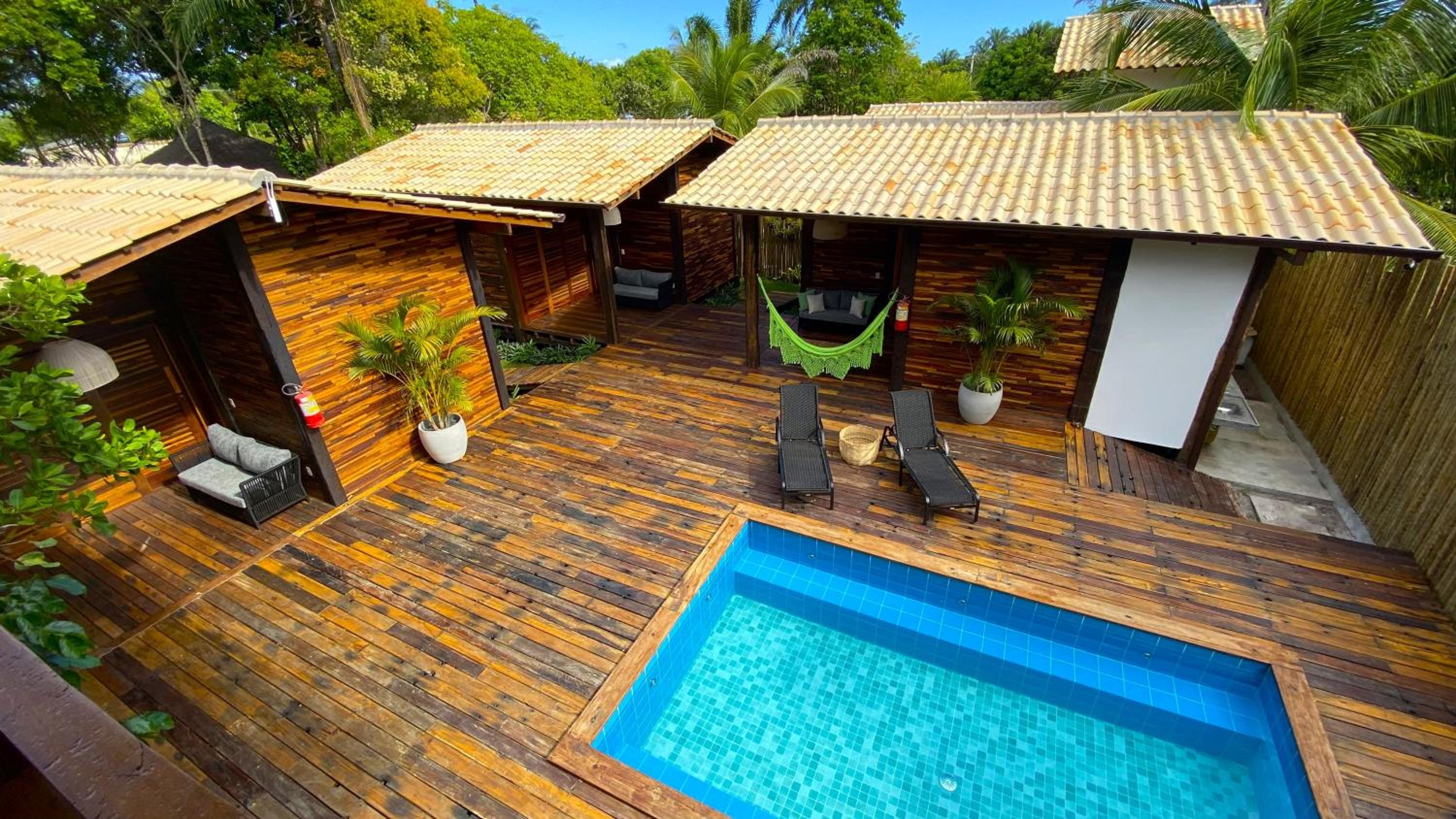 Akua Bungalows, nestled in Marau, offers a serene escape just 300 meters from Taipu de Fora. Enjoy the outdoor pool, hot tub, and lush garden during your stay.