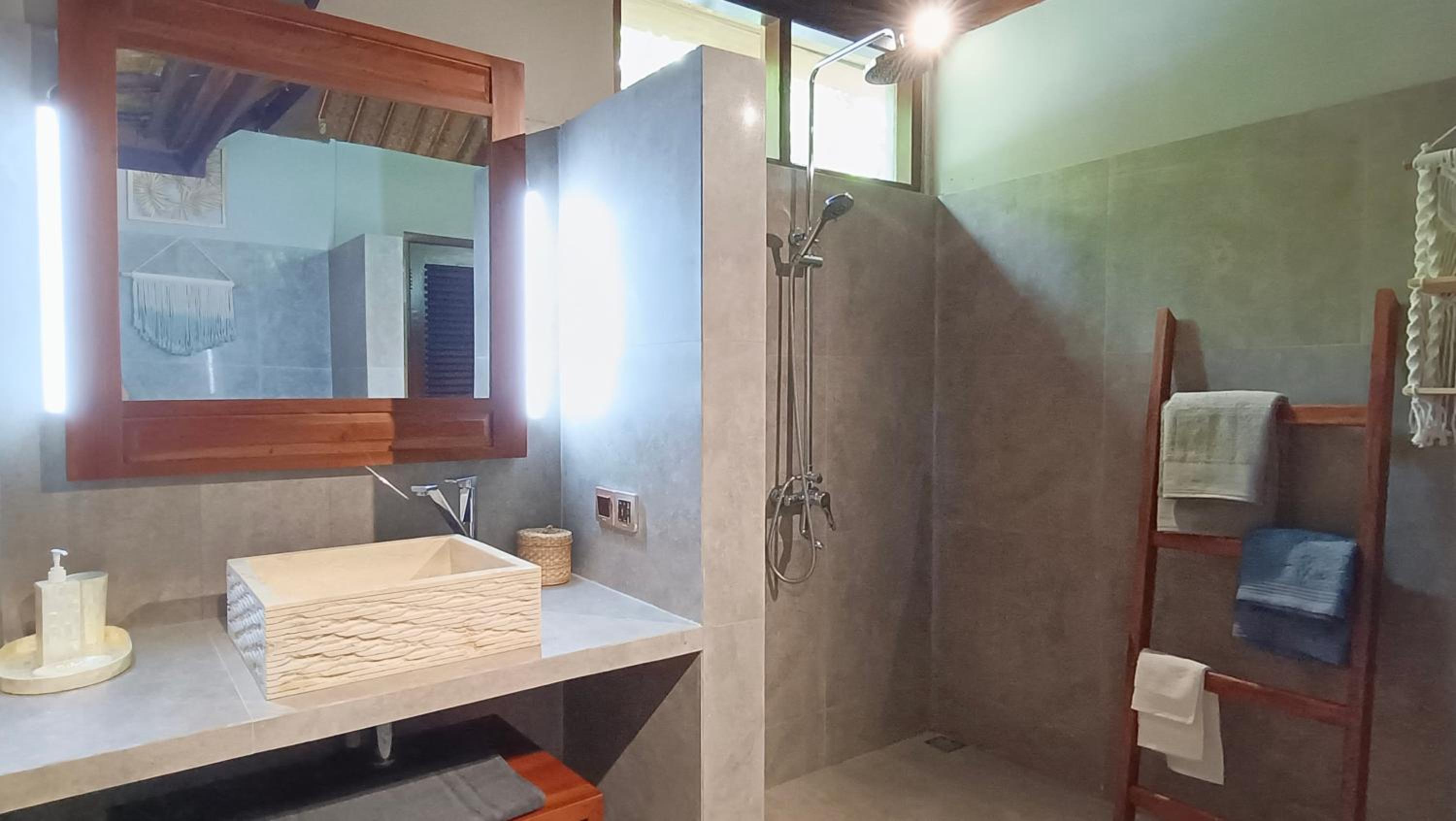 Mention spéciale pour la douche : de l’eau bien chaude, un bon débit, et surtout une douche fermée — un vrai plaisir après un mois passé dans des douches ouvertes !