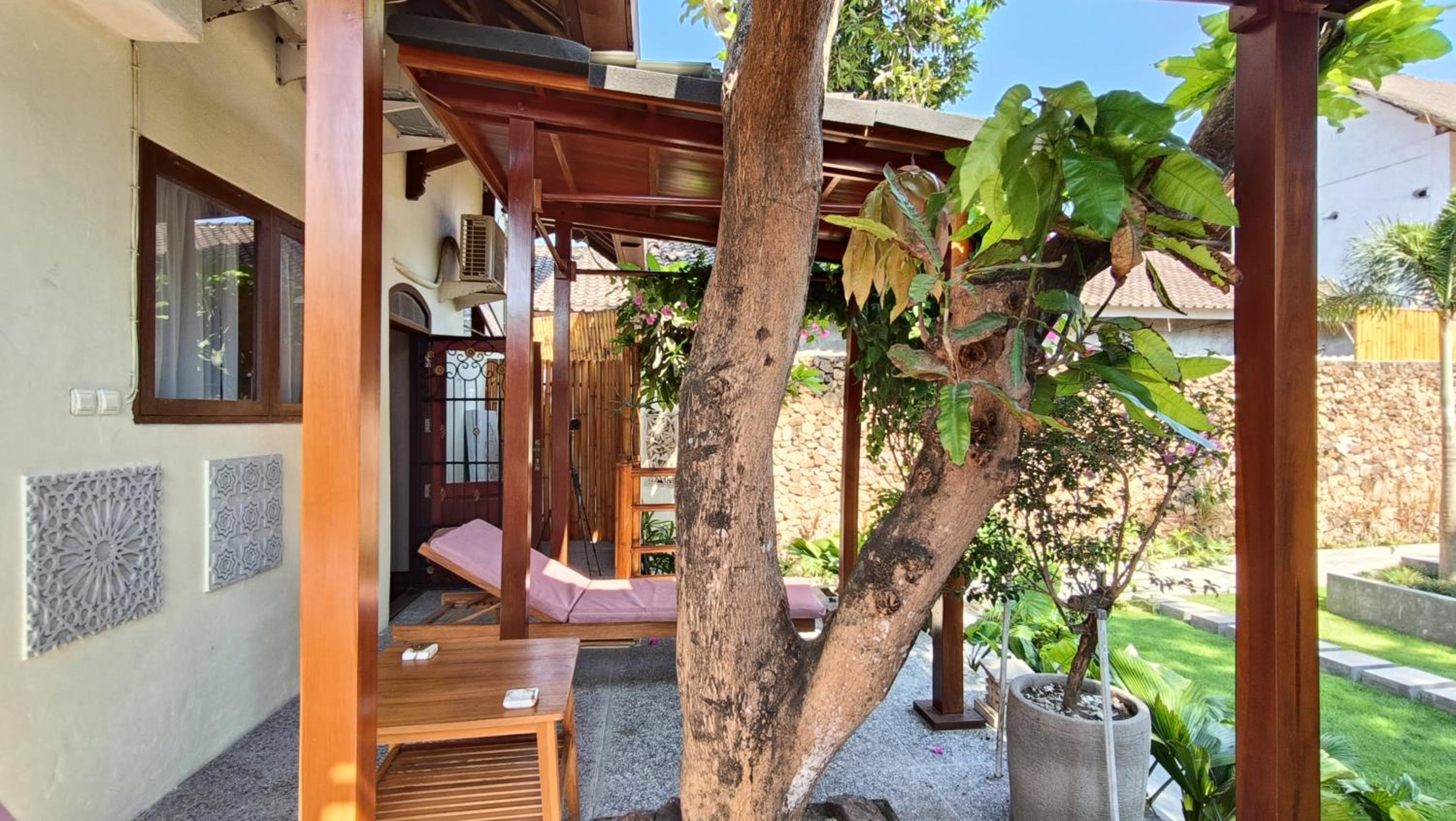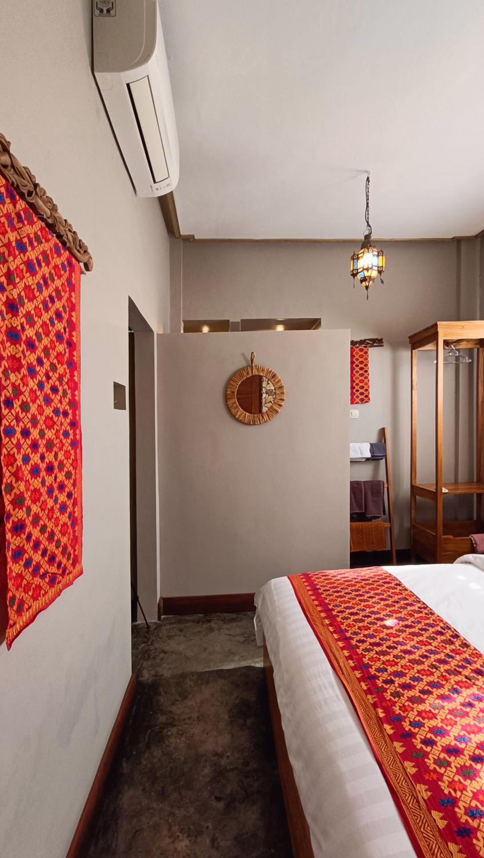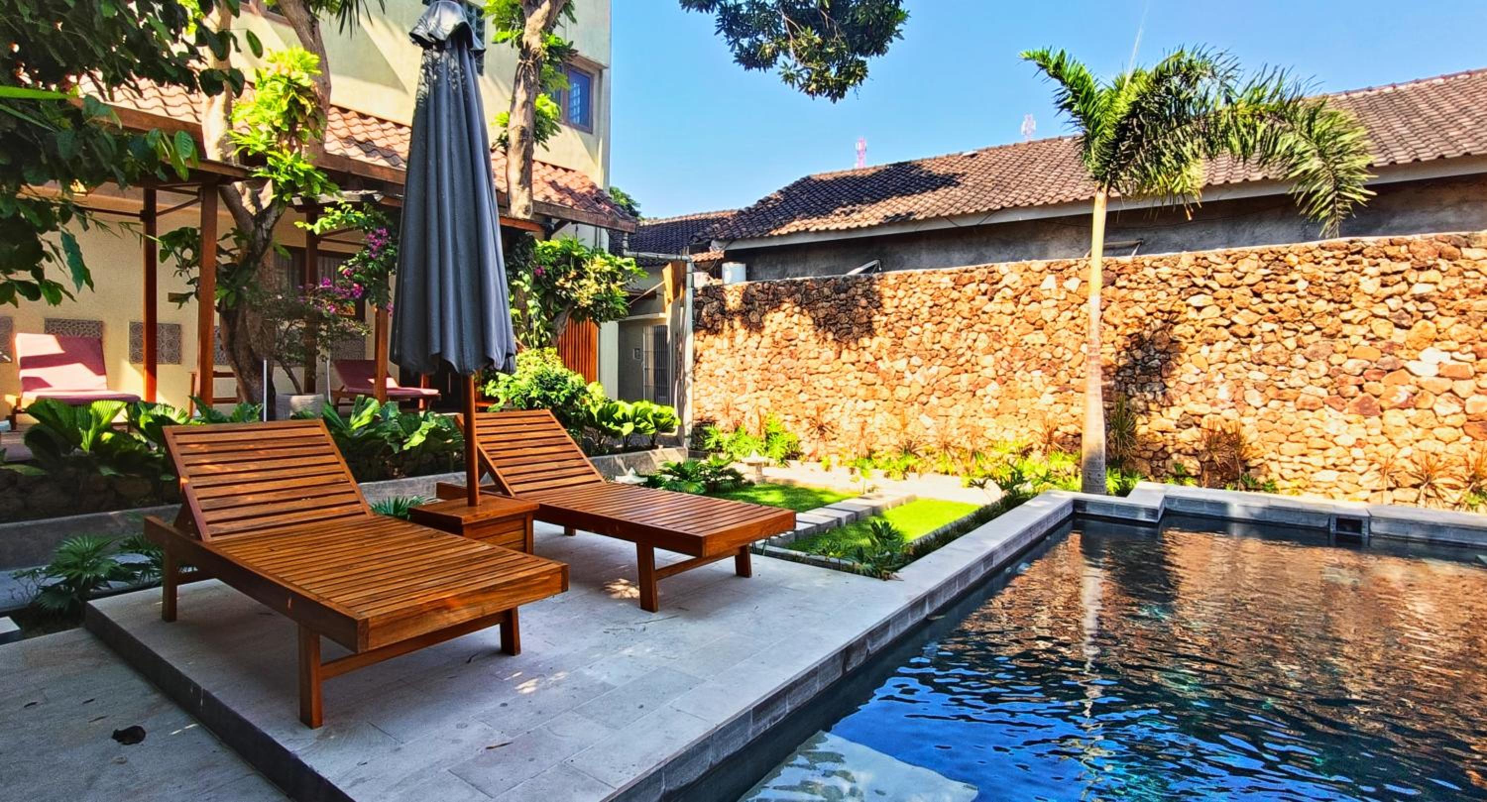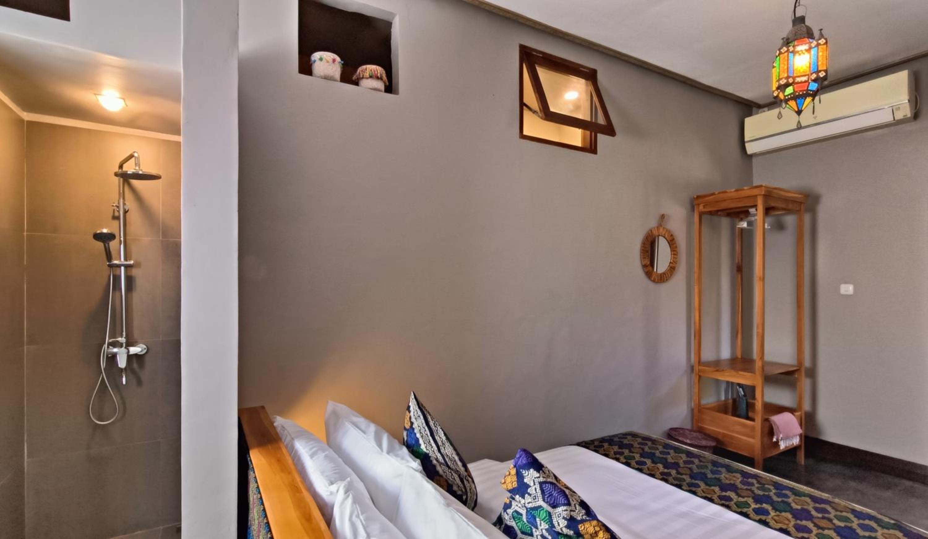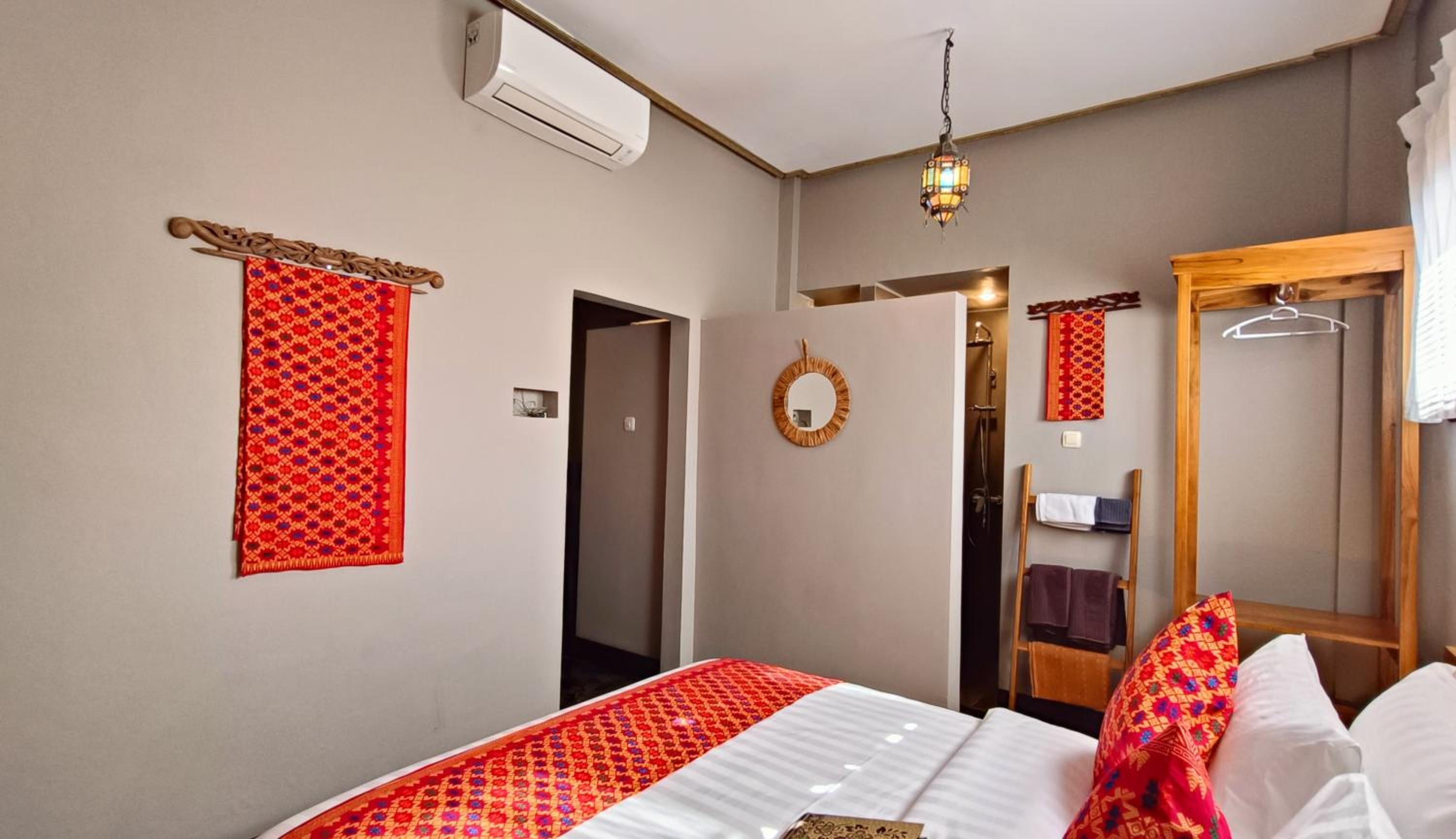 The place is right in the centre of town so no need for transport. My room was to the rear of the property so tranquil and an oasis to the bustling crowds just outside the front. The room was that classic mix of Indonesian culture and modern touches. Bathroom was stylish and had an excellent rain shower. Aircon and fridge worked perfectly. Staff couldn’t be more helpful and accommodating and organised transport from the dock. Would stay here for 1st trip to Kuta every time.