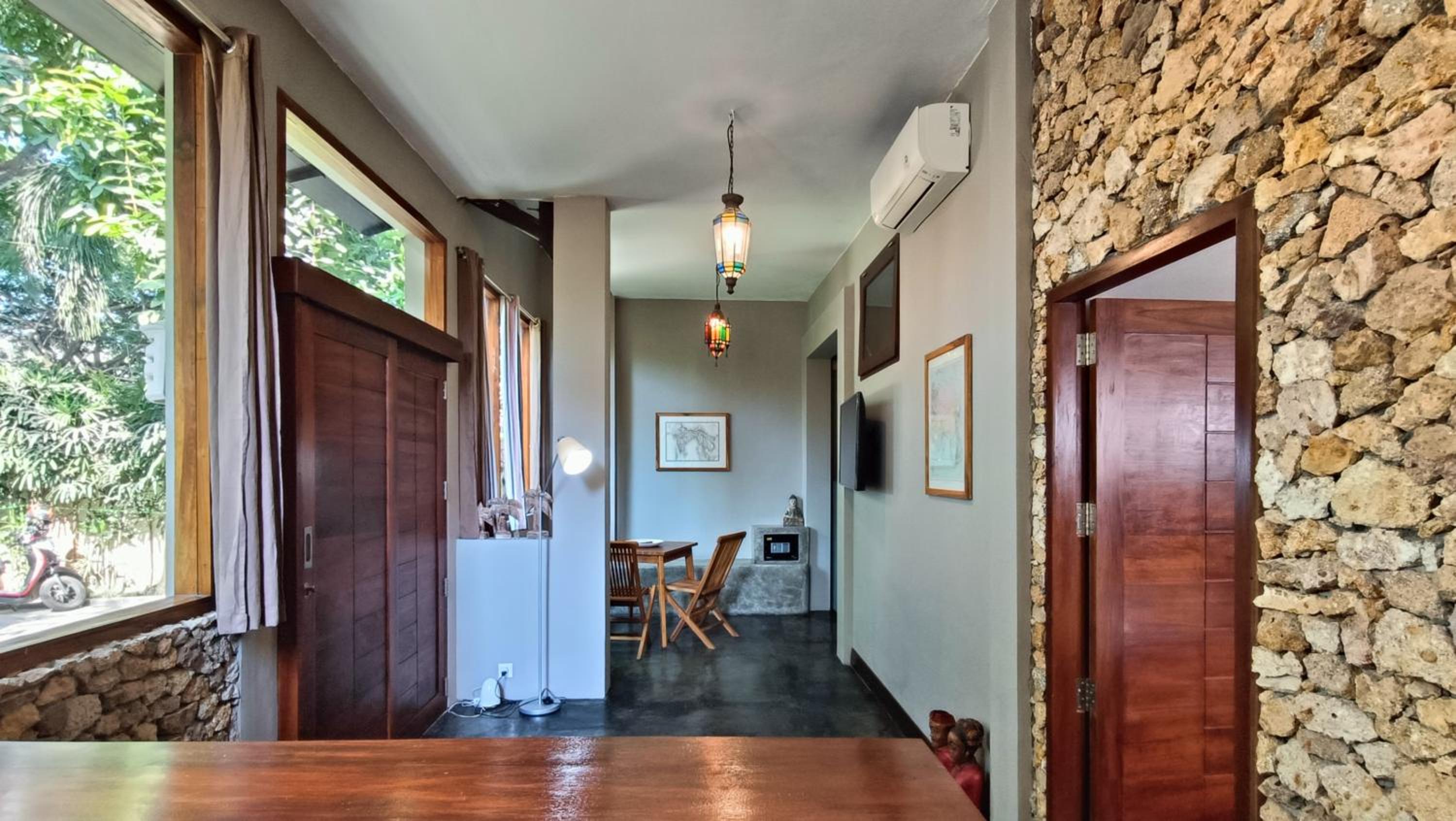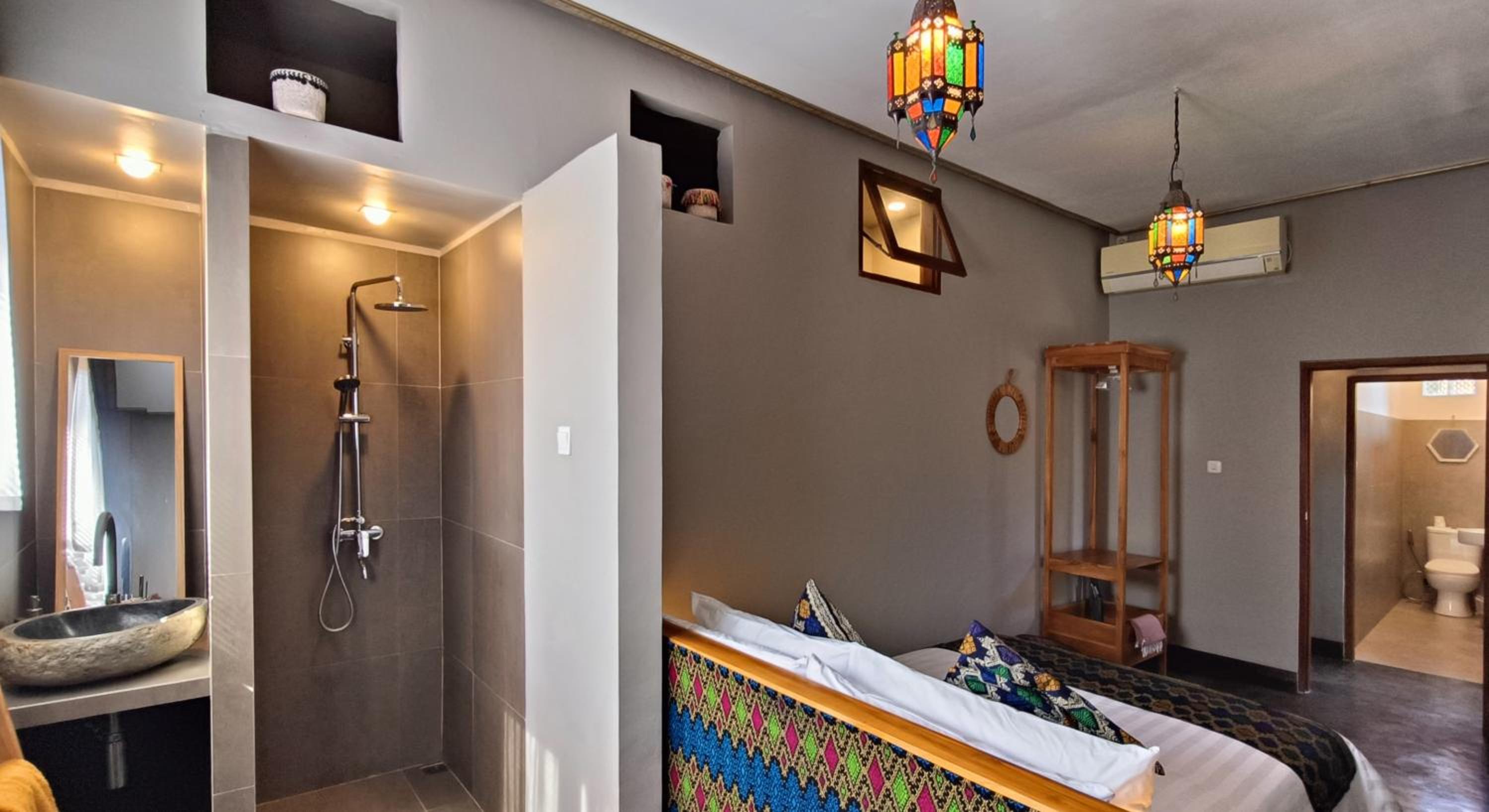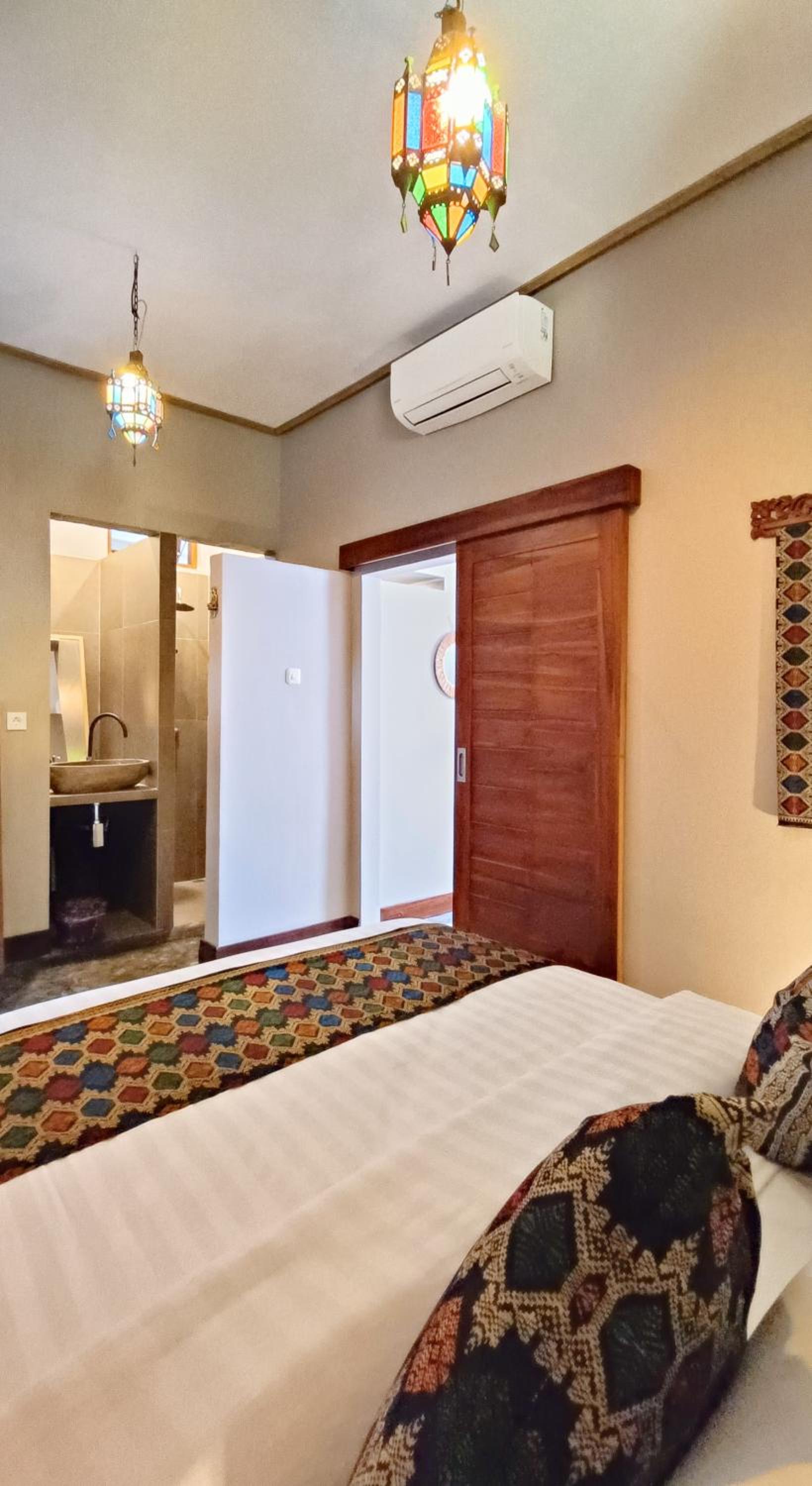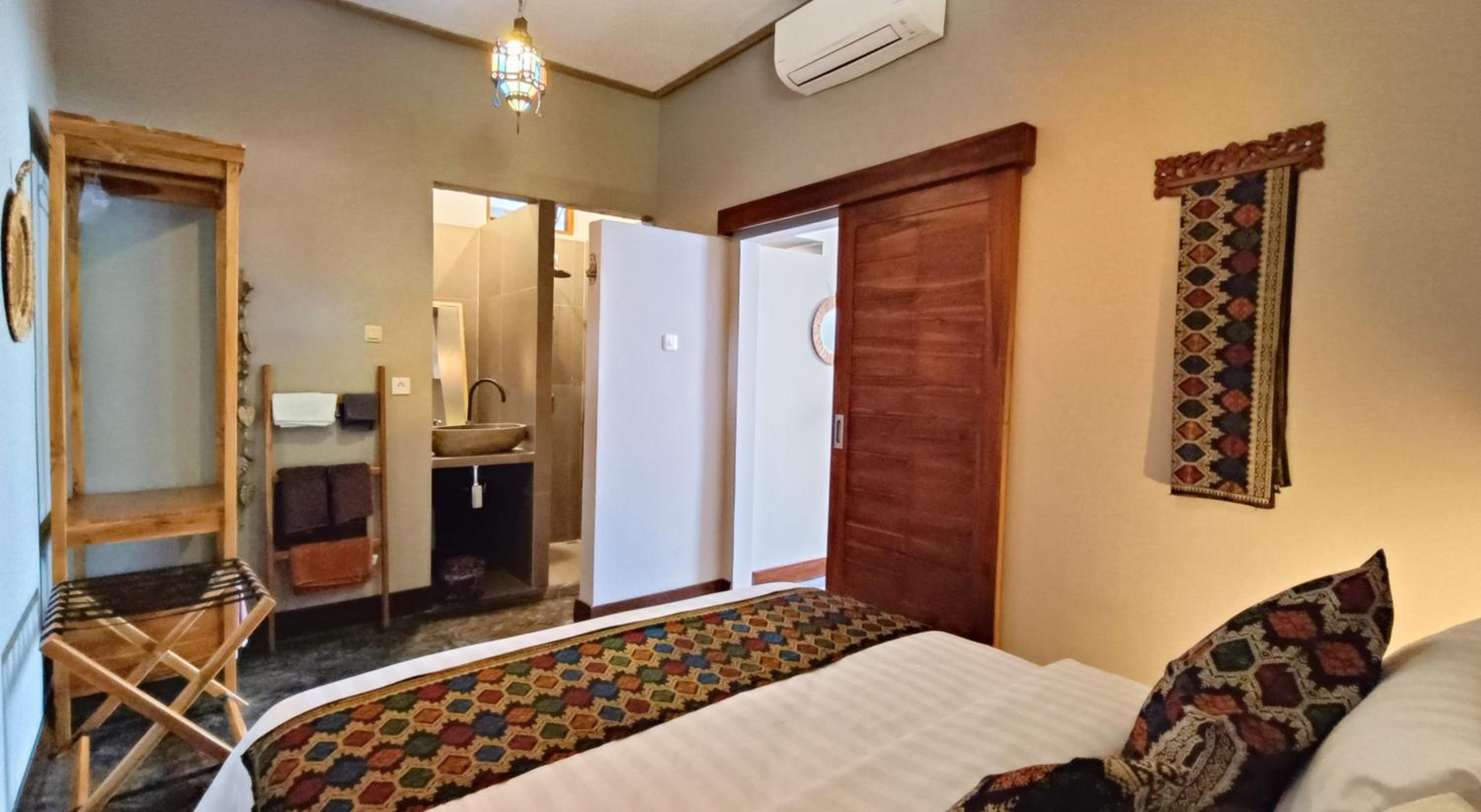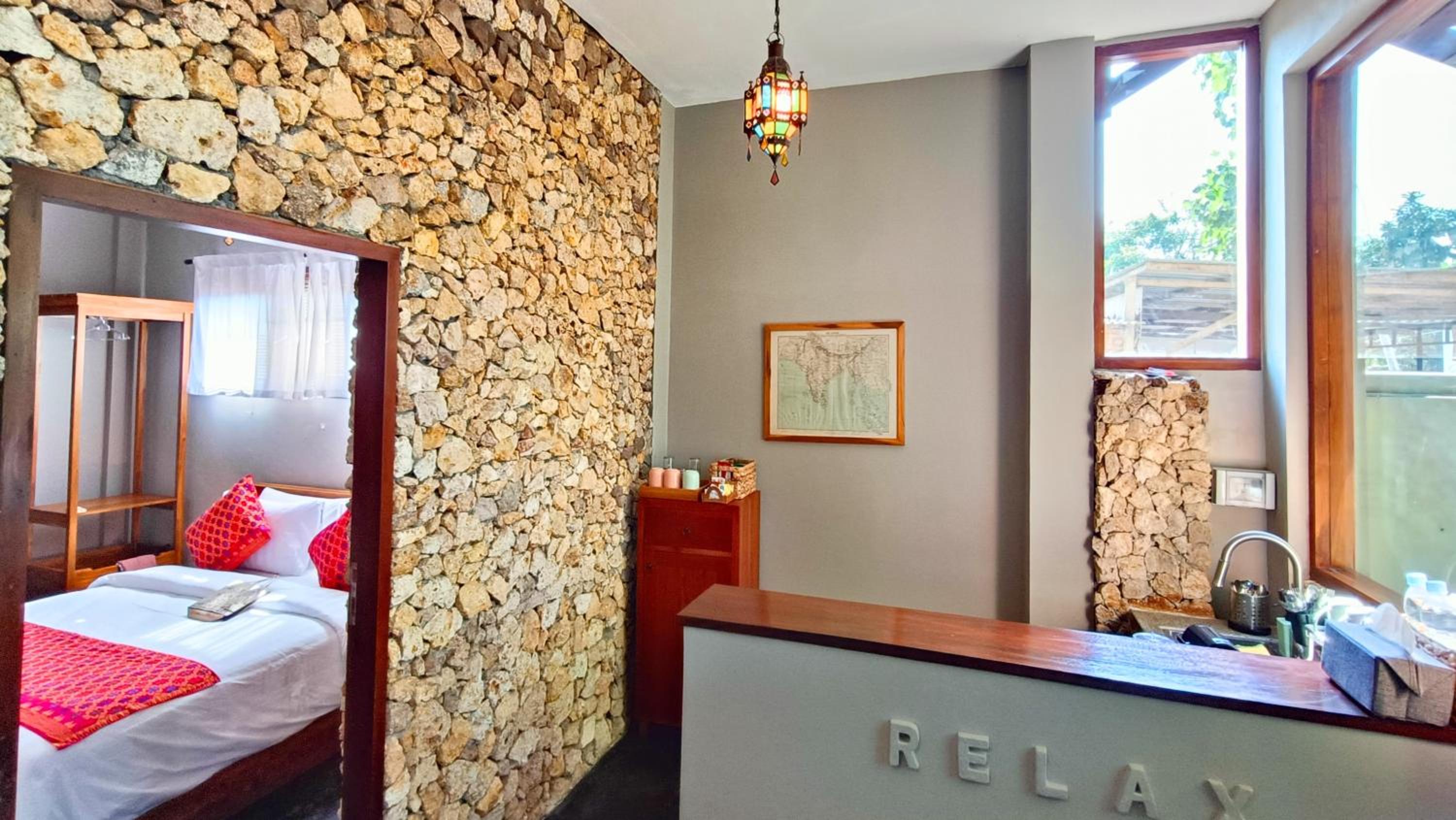The place is right in the centre of town so no need for transport. My room was to the rear of the property so tranquil and an oasis to the bustling crowds just outside the front. The room was that classic mix of Indonesian culture and modern touches. Bathroom was stylish and had an excellent rain shower. Aircon and fridge worked perfectly. Staff couldn’t be more helpful and accommodating and organised transport from the dock. Would stay here for 1st trip to Kuta every time.