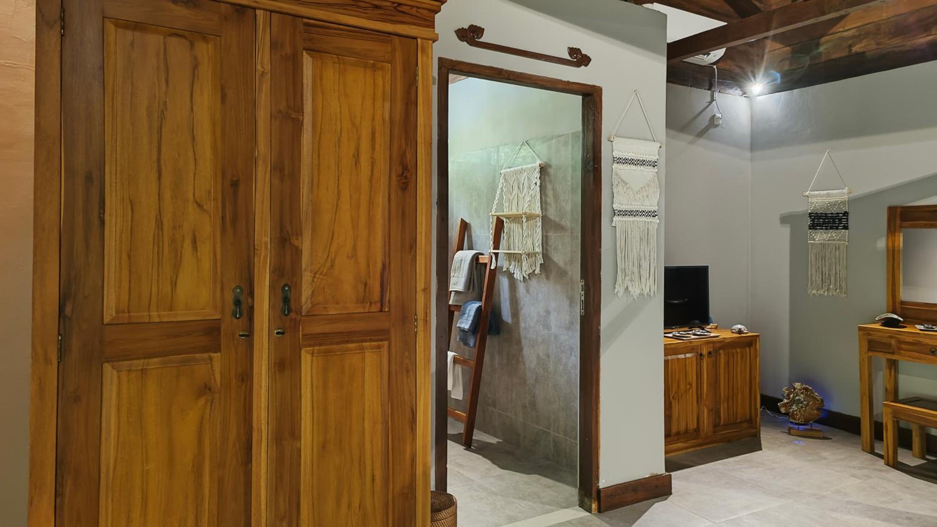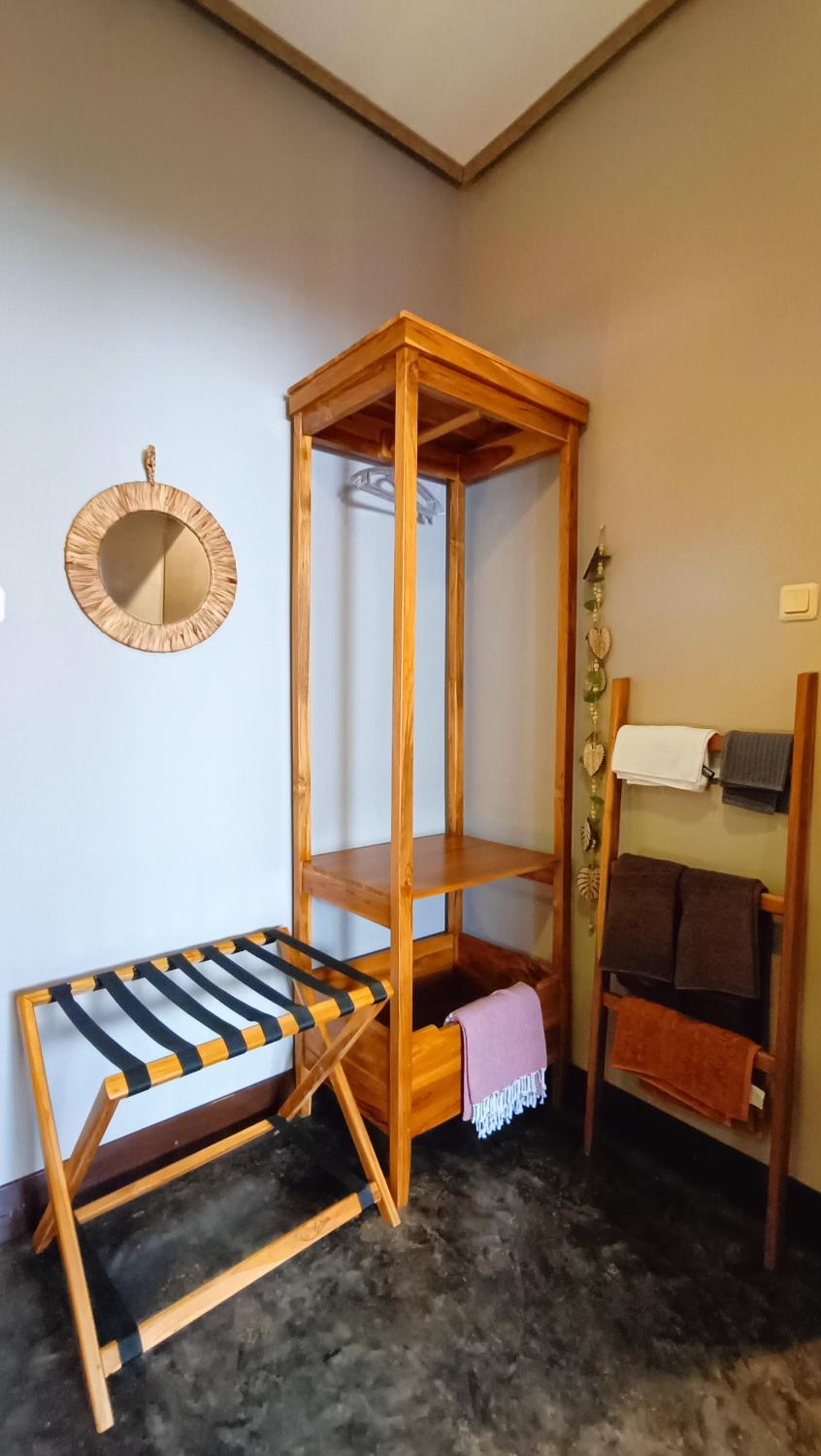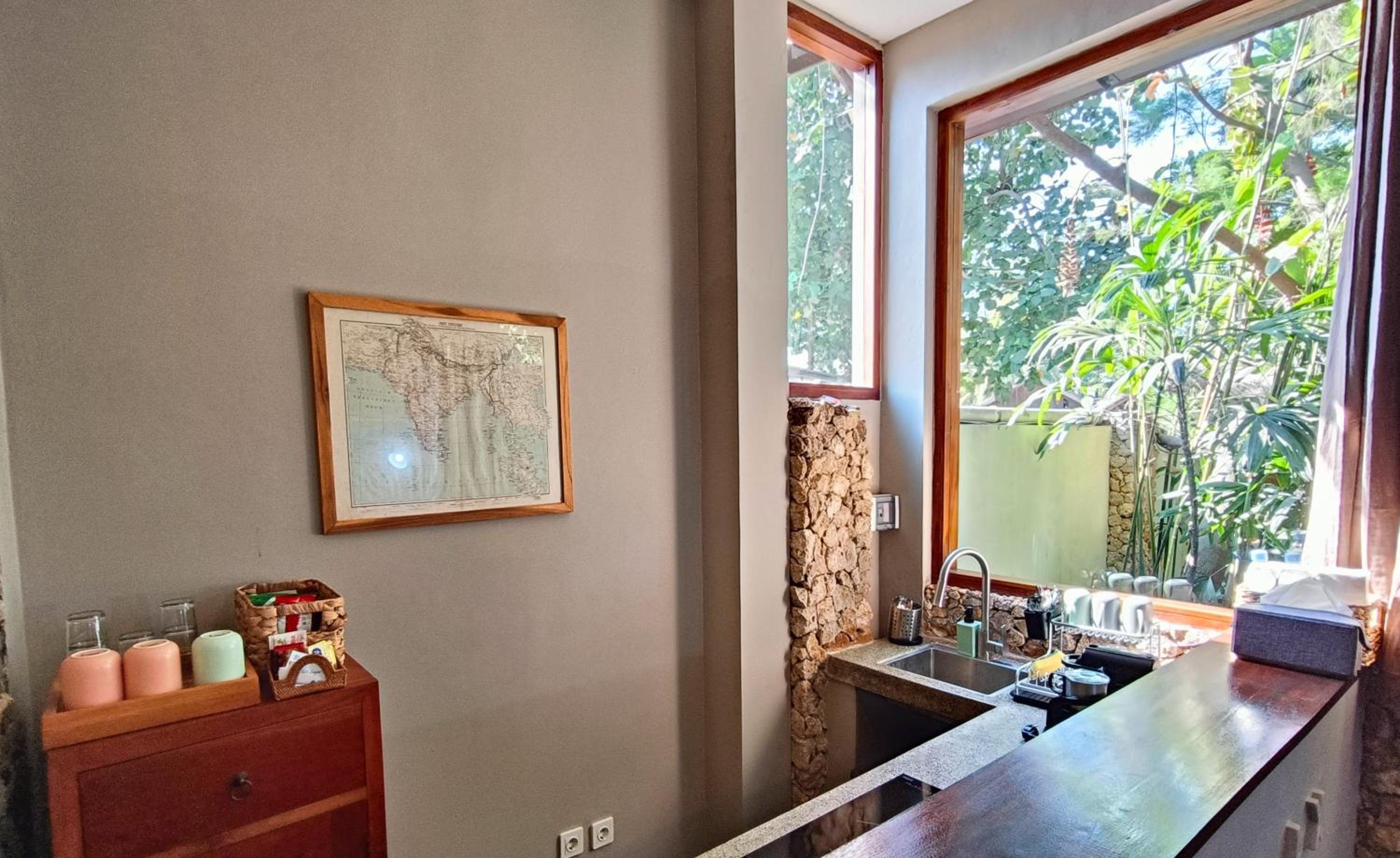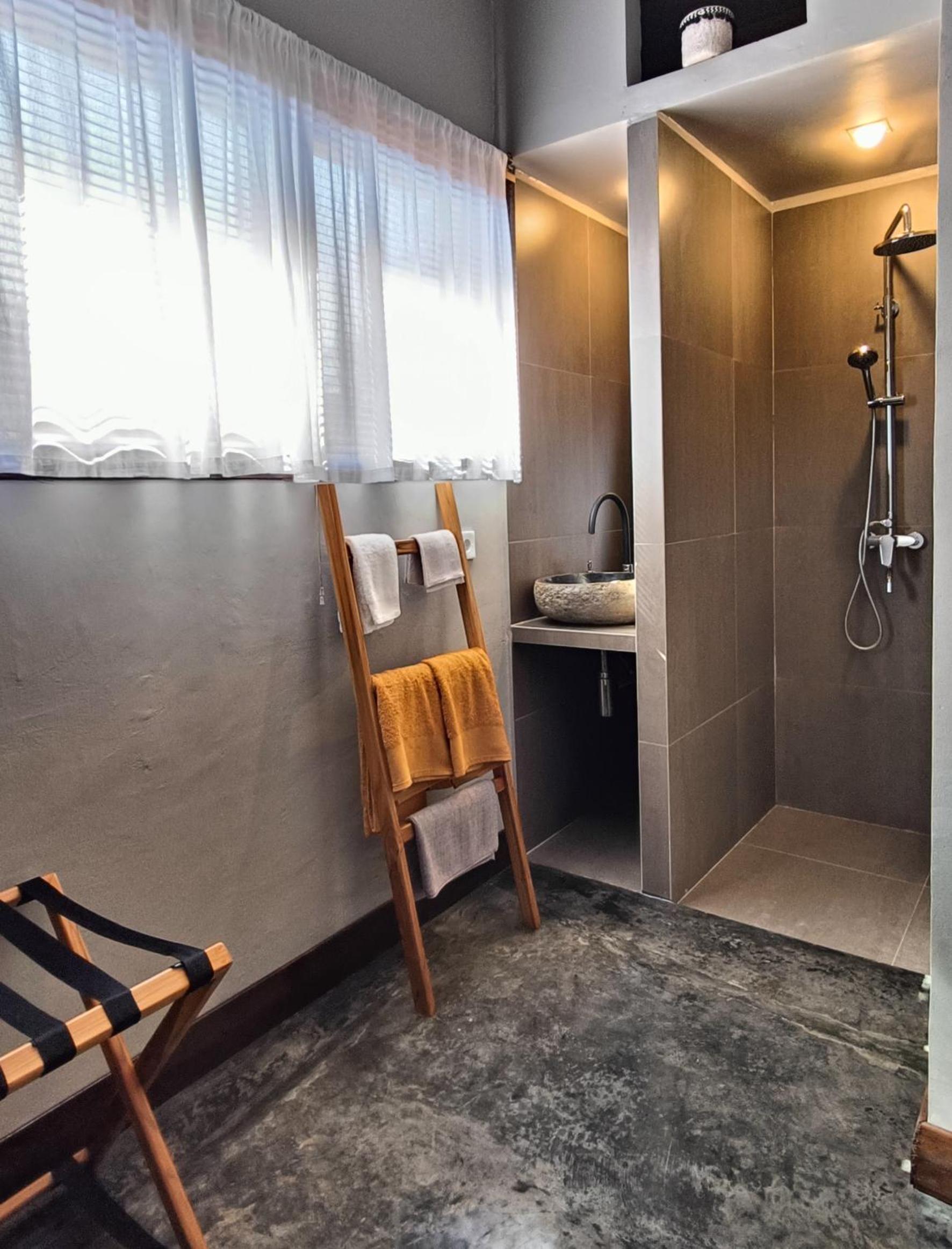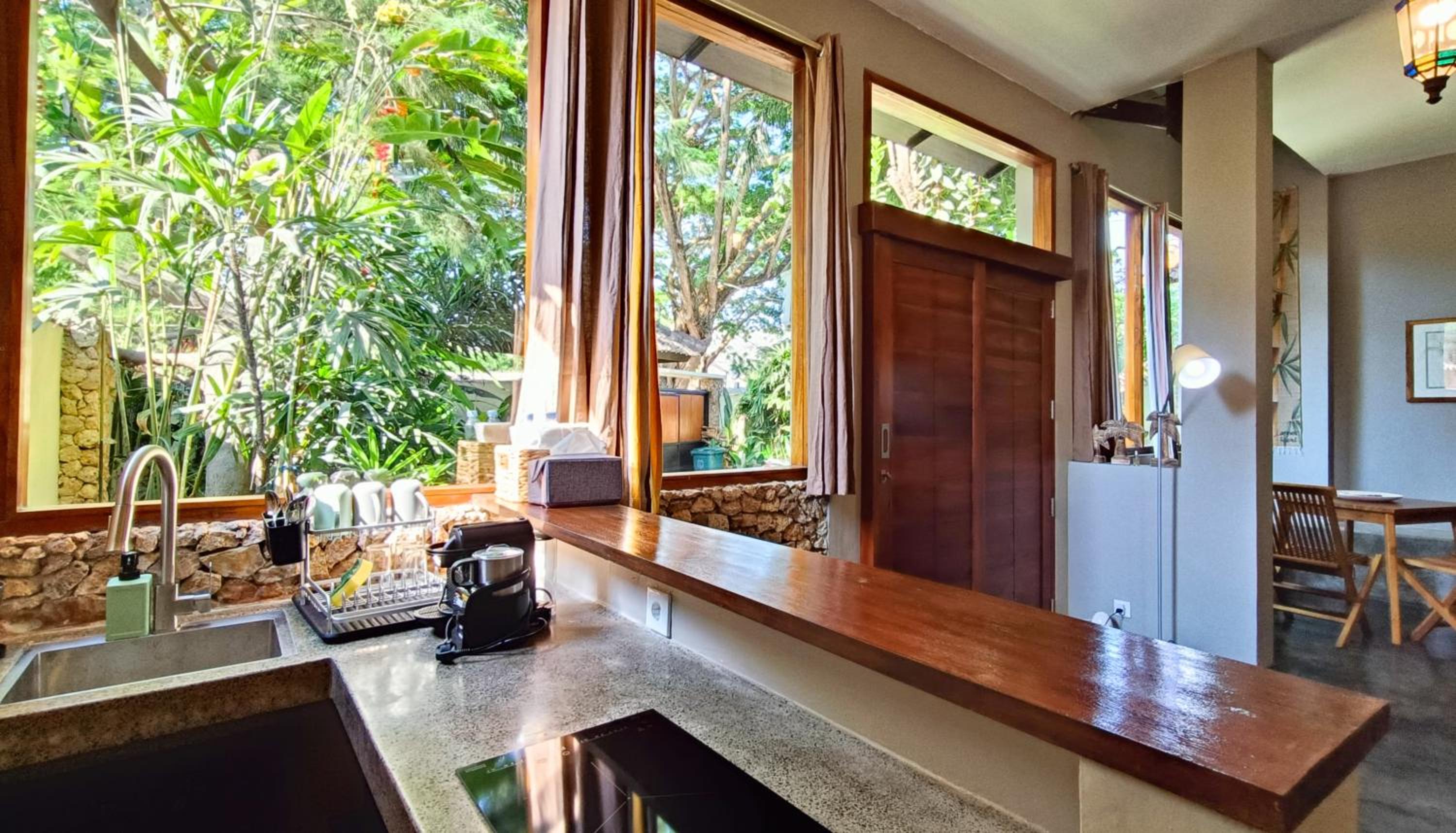 The place is right in the centre of town so no need for transport. My room was to the rear of the property so tranquil and an oasis to the bustling crowds just outside the front. The room was that classic mix of Indonesian culture and modern touches. Bathroom was stylish and had an excellent rain shower. Aircon and fridge worked perfectly. Staff couldn’t be more helpful and accommodating and organised transport from the dock. Would stay here for 1st trip to Kuta every time.