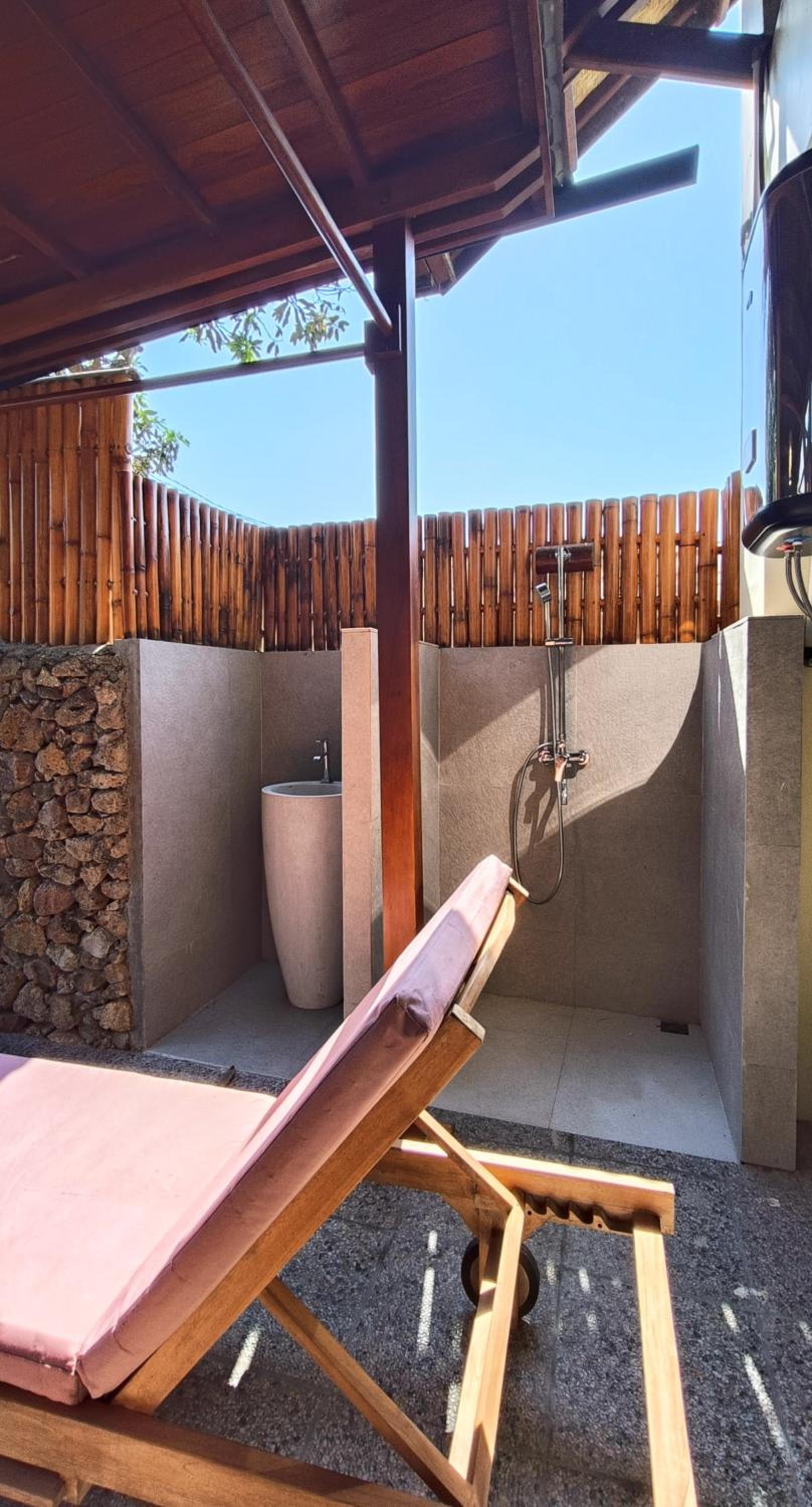 Petit point à noter : il y a parfois quelques bruits de poules à proximité, et la piscine est partagée entre les villas (et non privée comme indiqué sur Booking). Rien de gênant, mais bon à savoir.