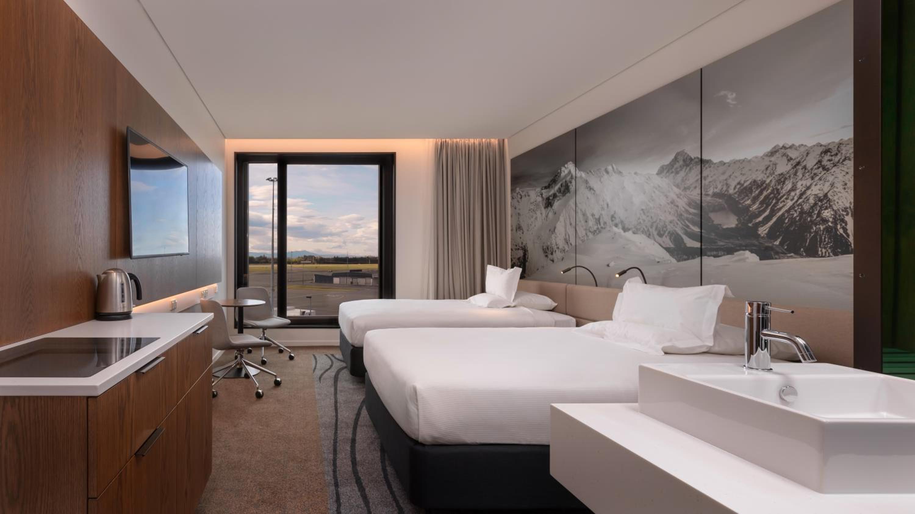 At Novotel Christchurch Airport, luxury meets convenience just steps away from the terminals. Modern Rooms with Comfort in Mind feature flat-screen TVs, plush bedding, and elegant bathrooms with bathrobes and slippers.