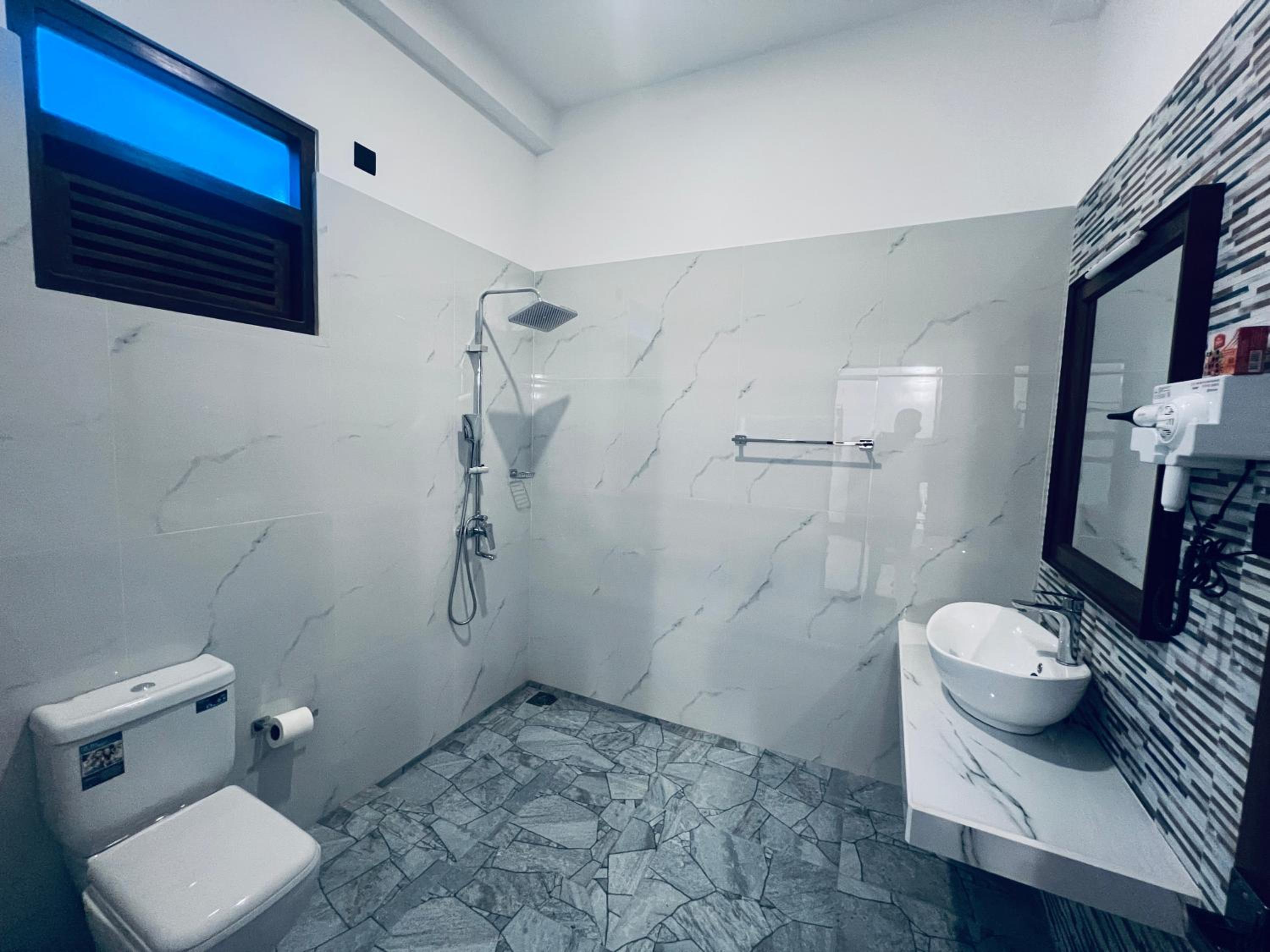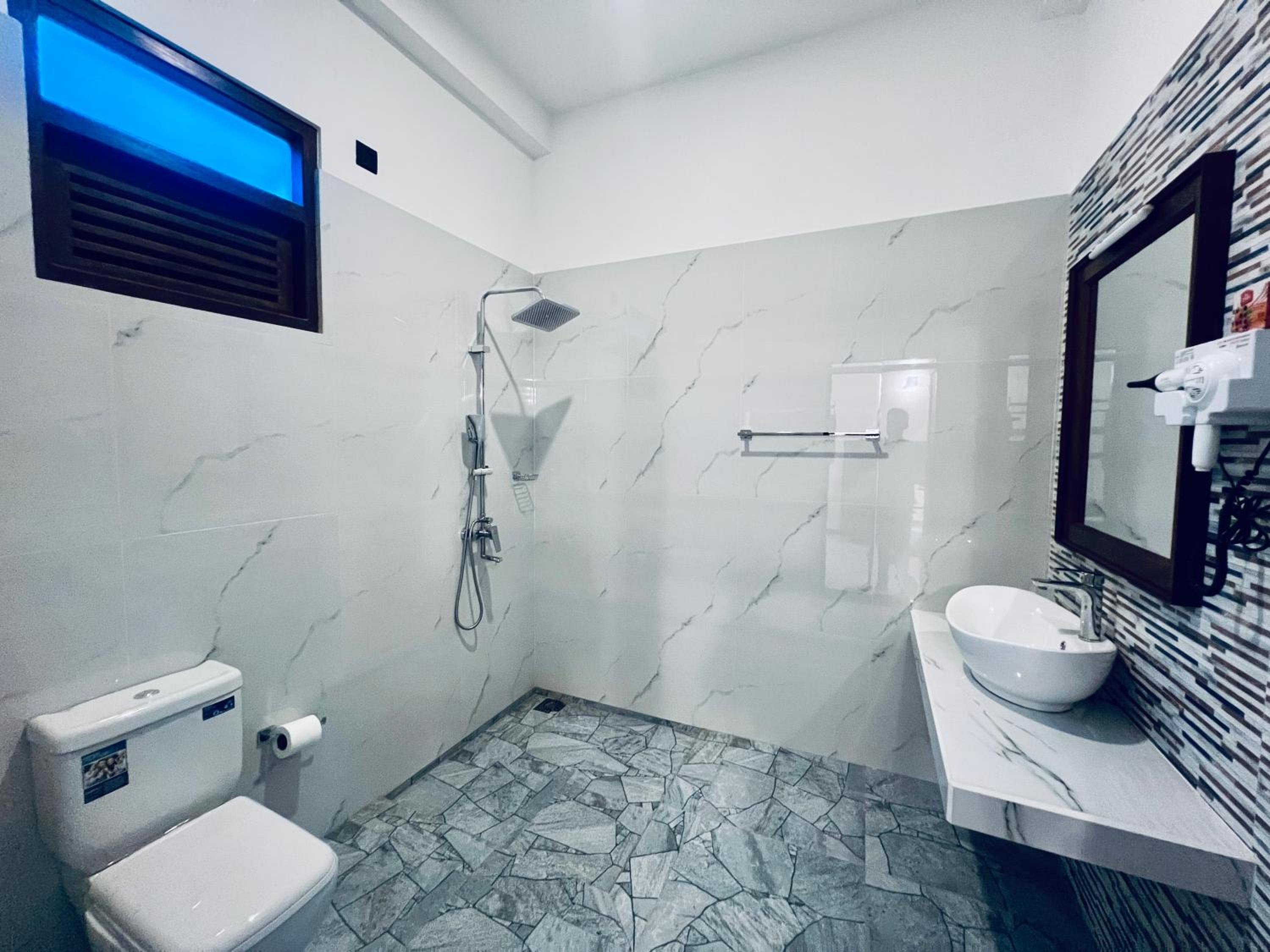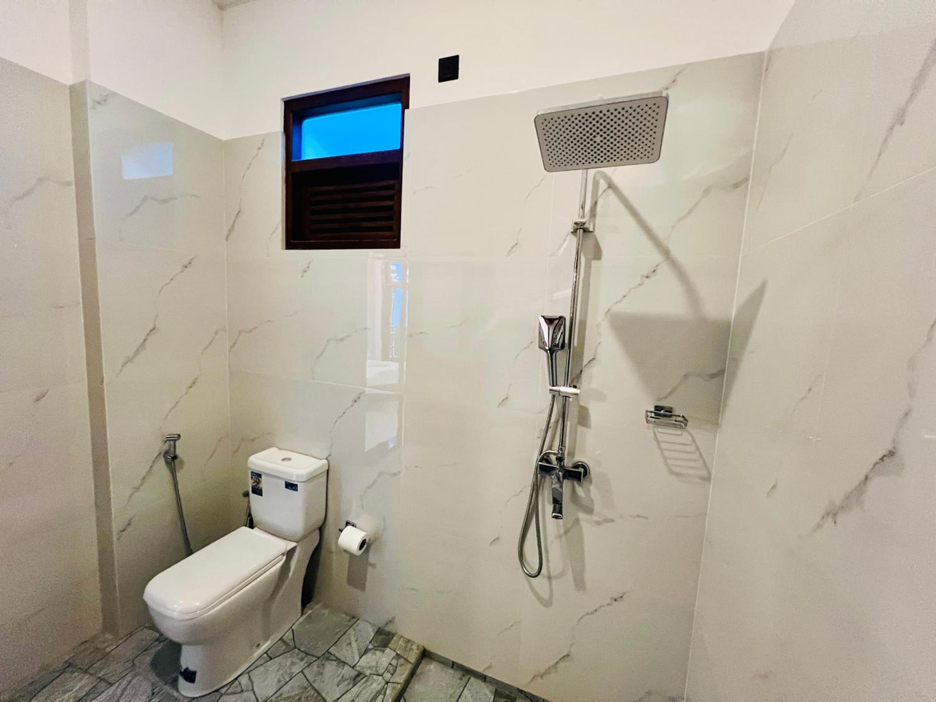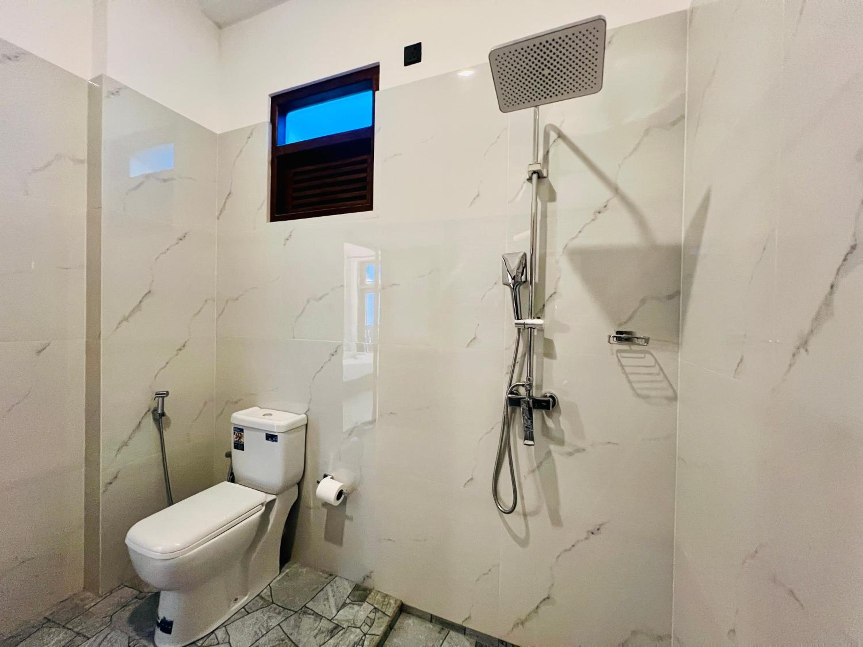 Water pressure could be a bit stronger in the shower but still a very nice bathroom experience with 24/7 instant hot water. Good ventilation and no bugs! That's a first for me in Sri Lanka.