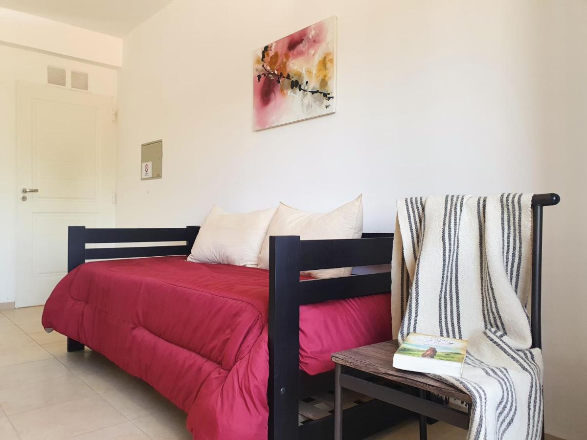 Experience tranquility at Médanos Negros Departamentos, a sustainable aparthotel in San Juan offering a serene garden and peaceful street views.