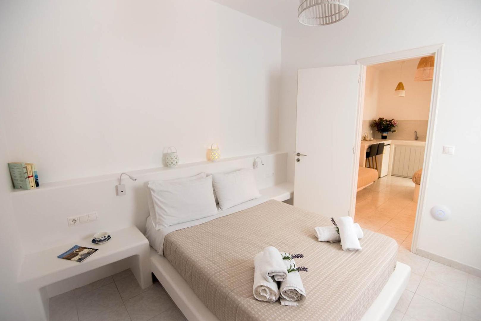 We loved absolutely everything at Eleana Studios, from the warm welcome to the beautiful buildings. The personal touch was evident throughout our stay. The family were happy to recommend restaurants (great ones! :)), beaches, bus schedules, and also drove us to Naoussa as we didn't have a car. The studios are only a short walk from a lovely beach, and we thoroughly enjoyed our stay on this quieter side of the island.