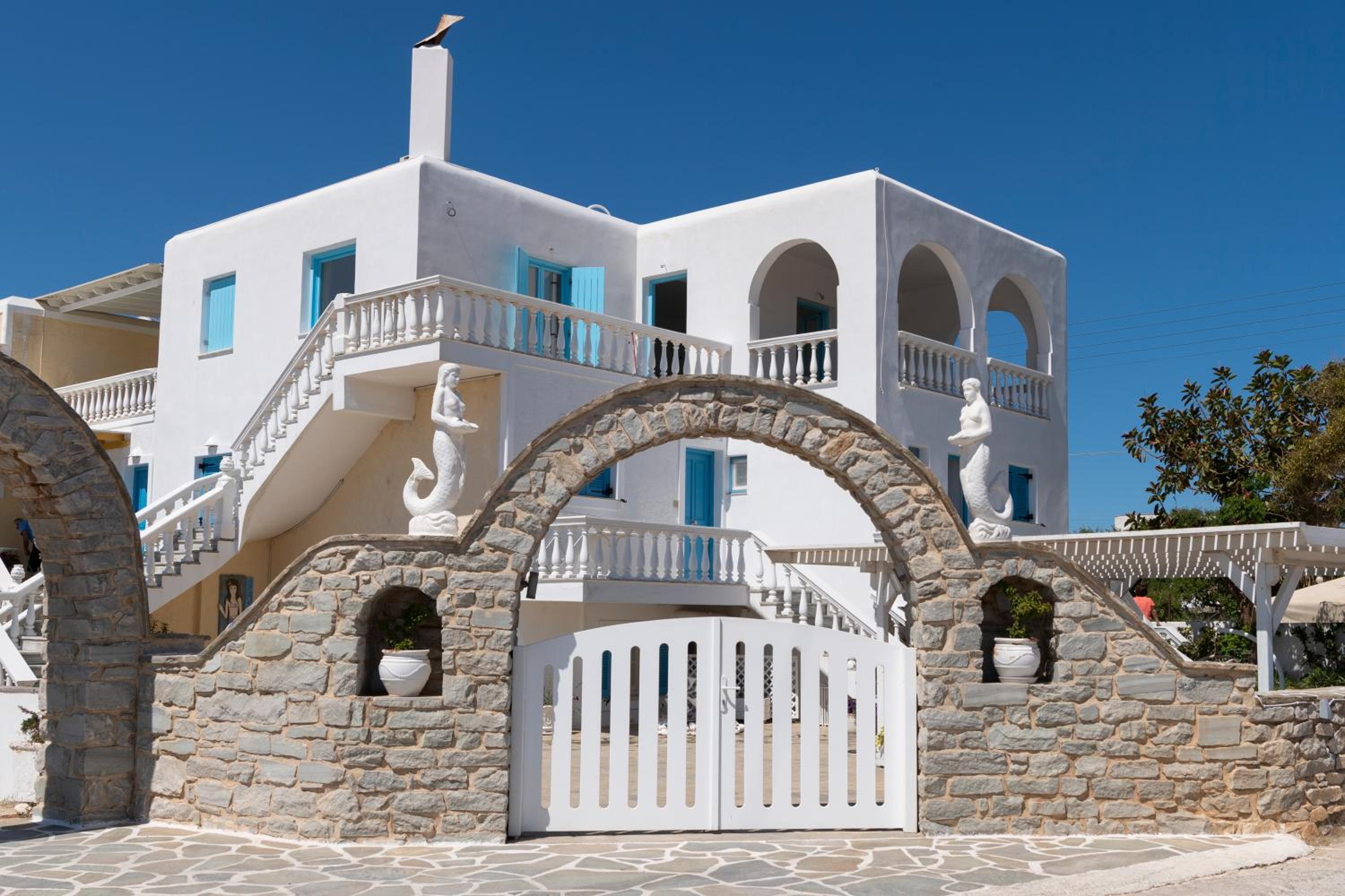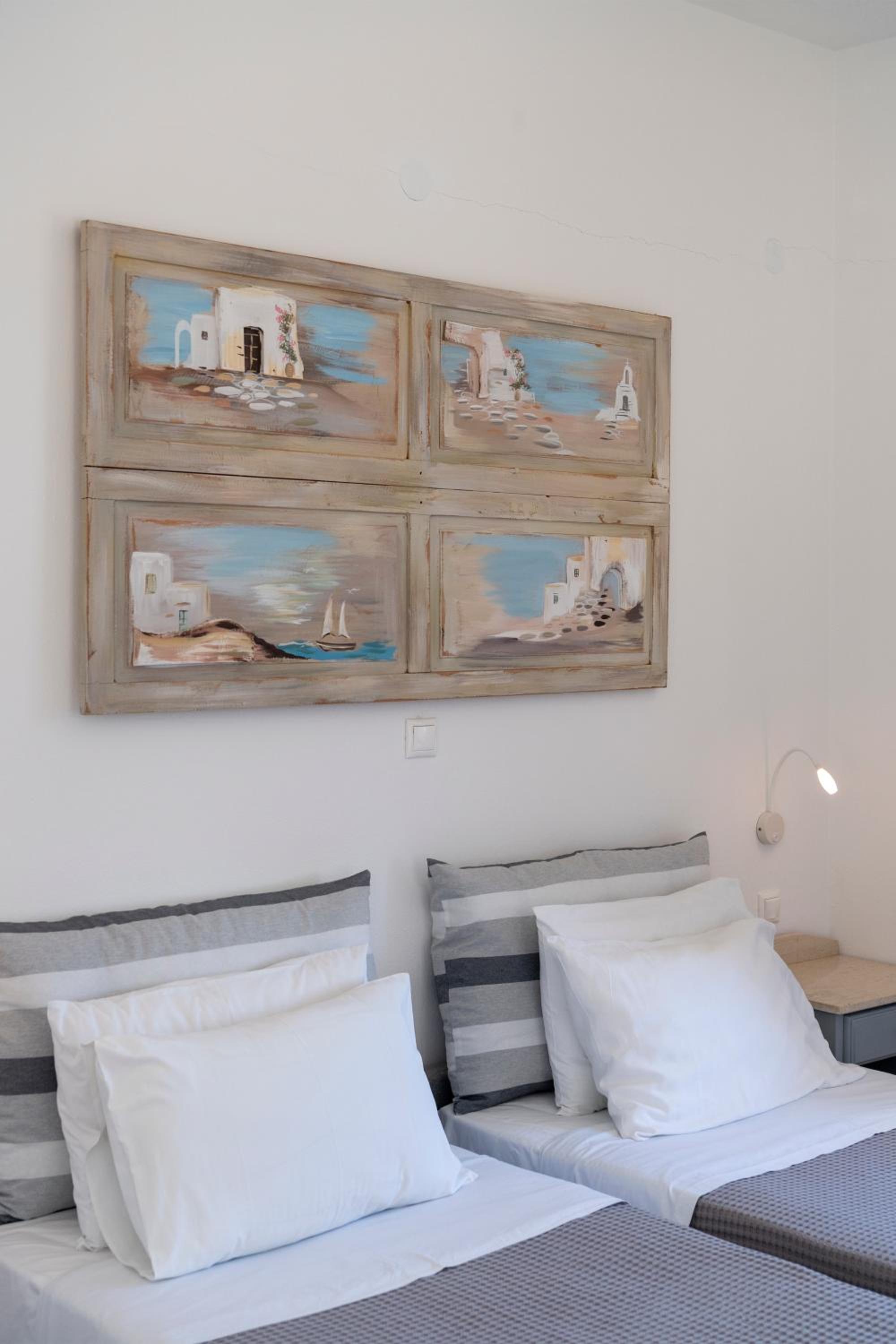 Un edificio con mucho encanto y con la arquitectura típica de las islas griegas. Las habitaciones son muy agradables y el personal está muy pendiente de lo que necesites. Sobre todo el desayuno es una experiencia muy cercana con mujeres que preparan comida típica griega pero además ofrecen bastante variedad. La localización me parece muy buena ya que no estás en el ruido de Naoussa pero la tienes cerca, y estás al lado de los restaurantes y la playa de Ambelas, una zona que nos encantó. Creo que es una opción muy completa para alojarte!