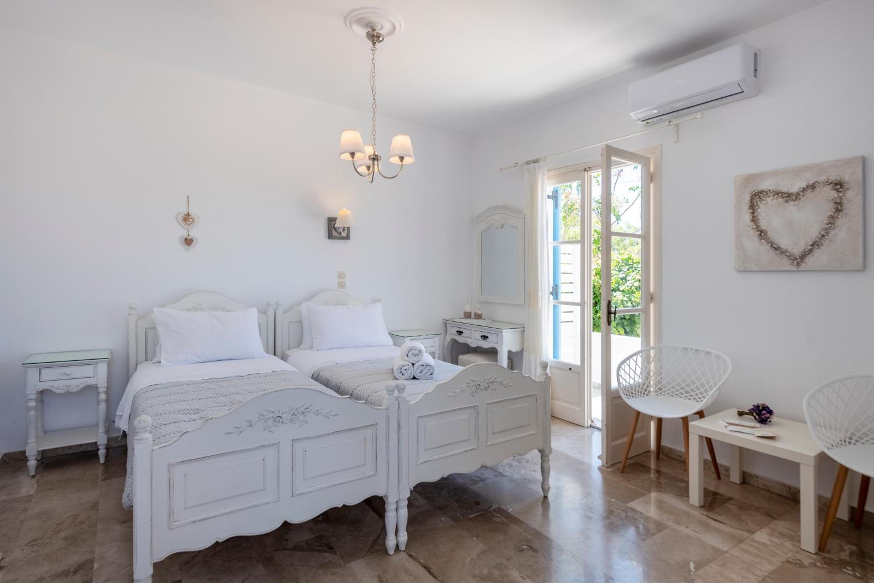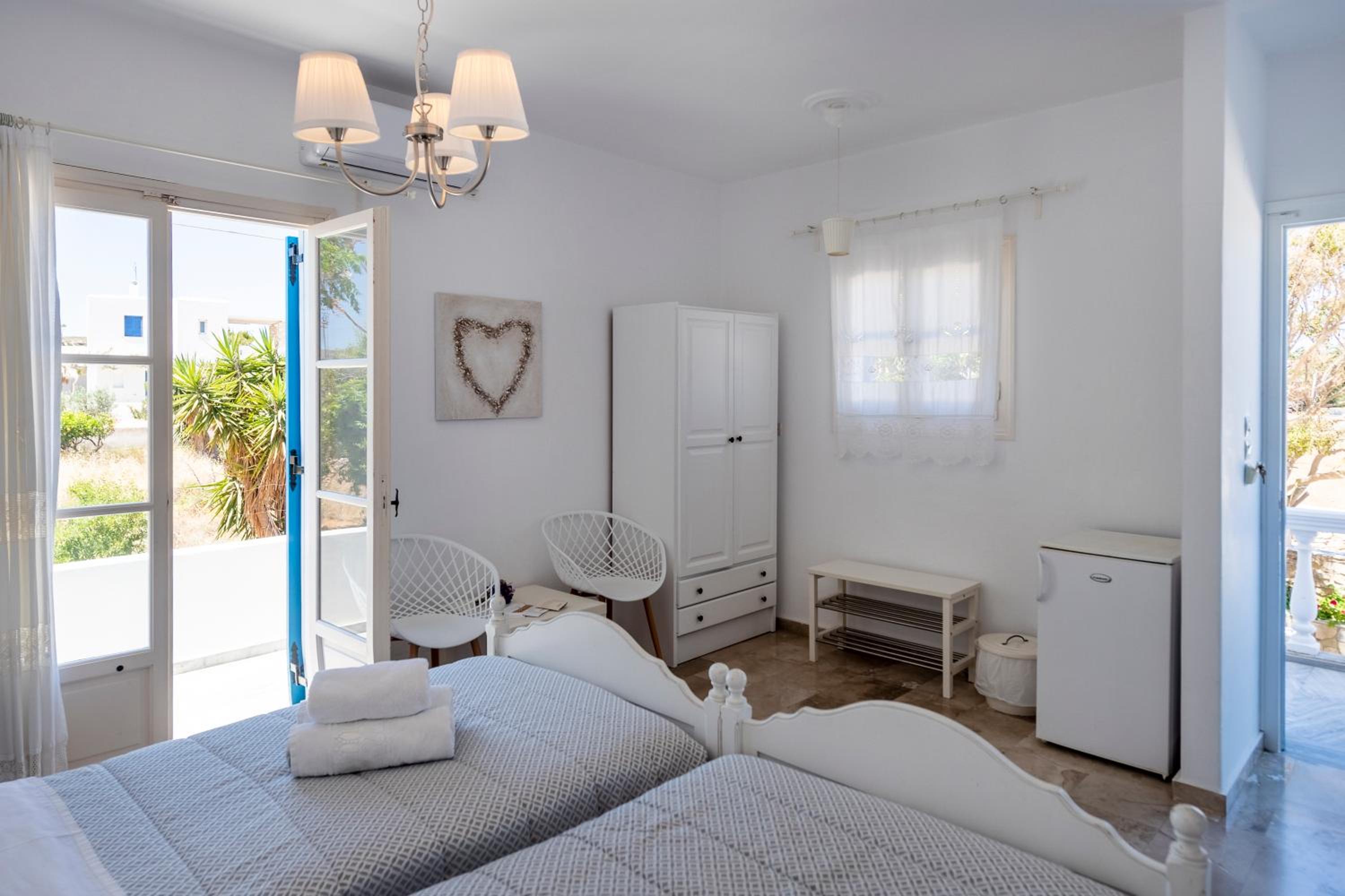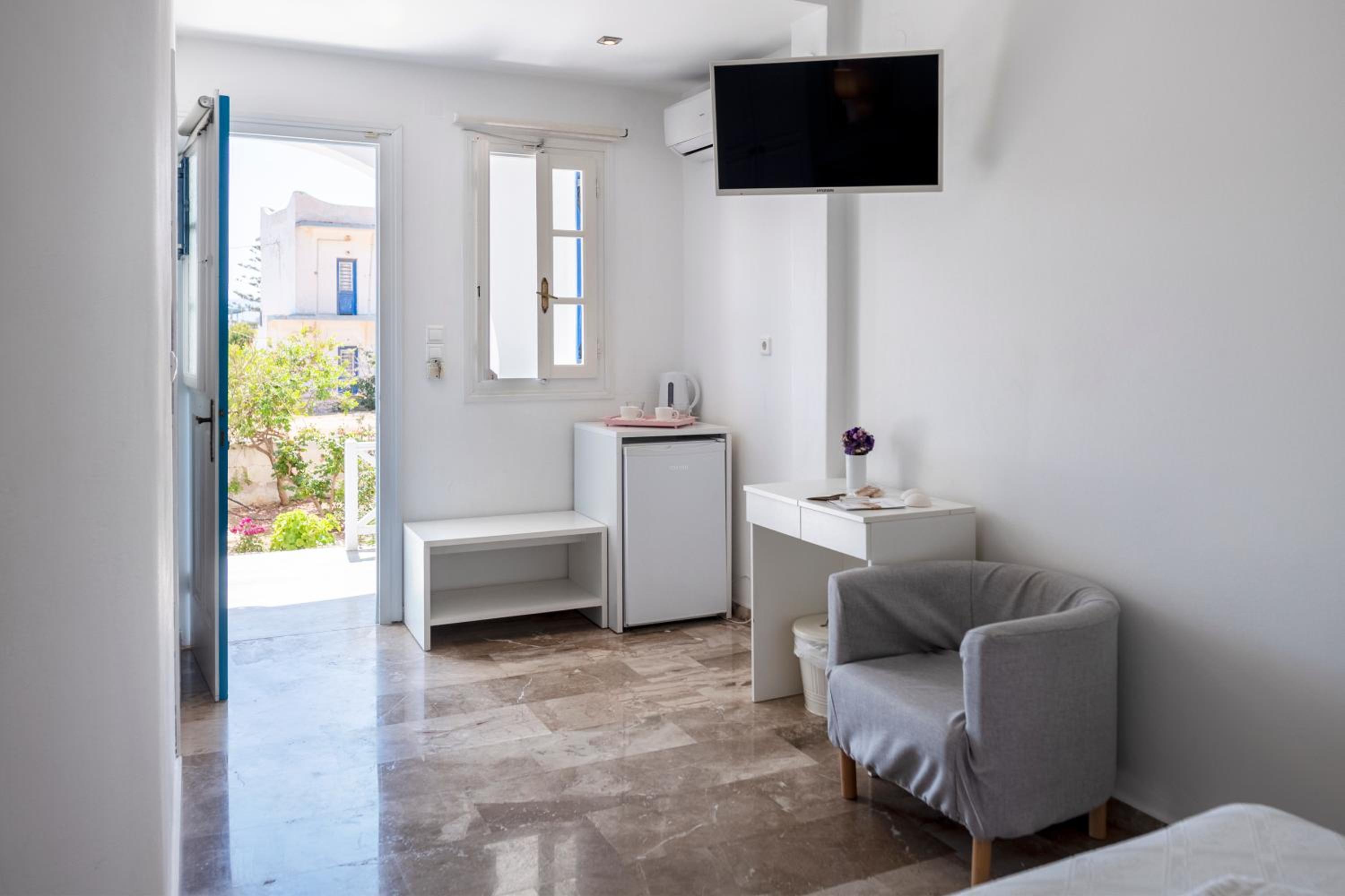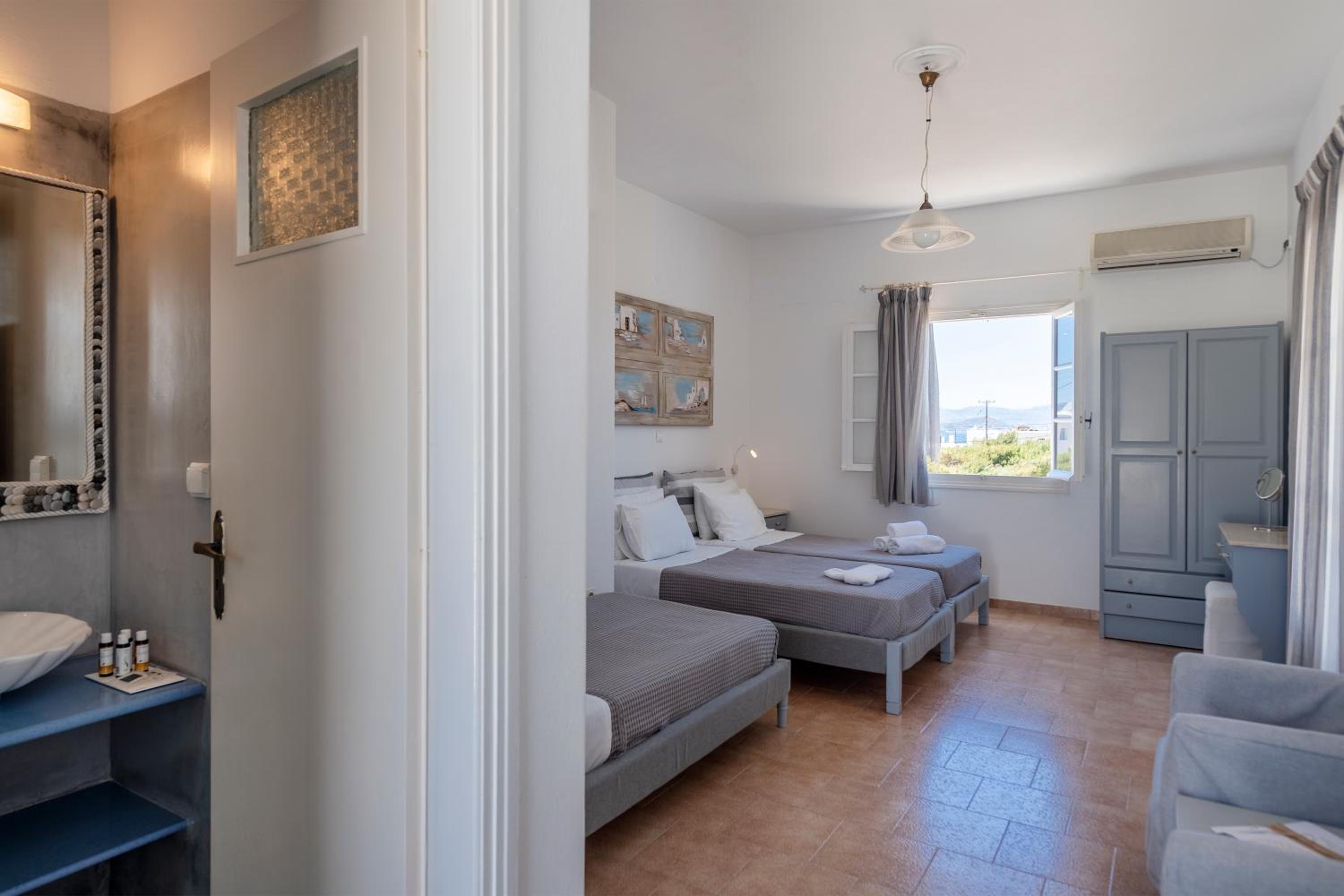 Lo staff è come una famiglia. Accogliente e premuroso. Ottima colazione. Silenzio assoluto. Le stanze sono molto belle. La posizione è vicina al mare e a pochi.minuti da Naoussa un centro imperdibile