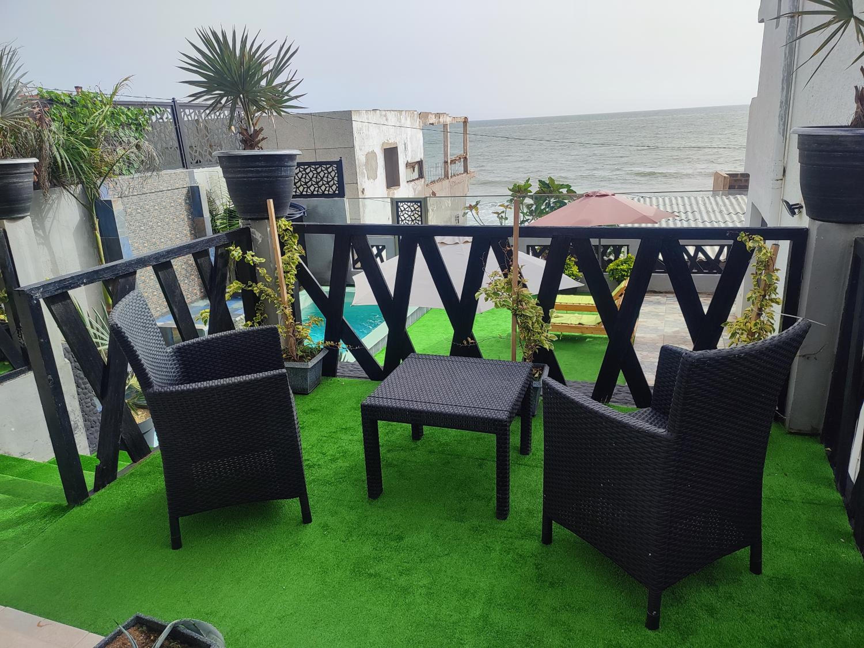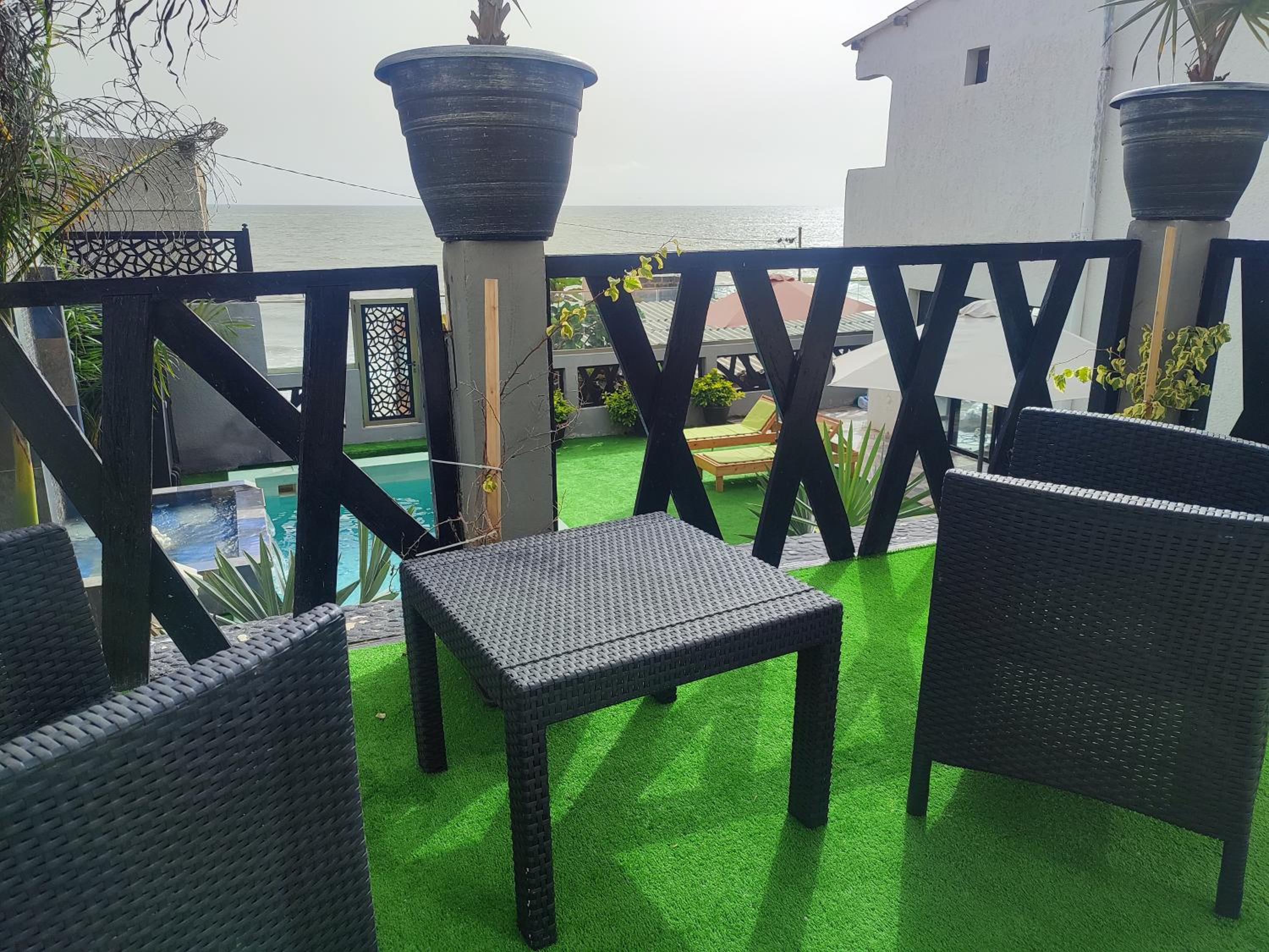 Well-Appointed Guest Rooms: Experience comfort and luxury in the guest rooms featuring a seating area, flat-screen TV, sea views, and modern amenities like air conditioning and free WiFi.