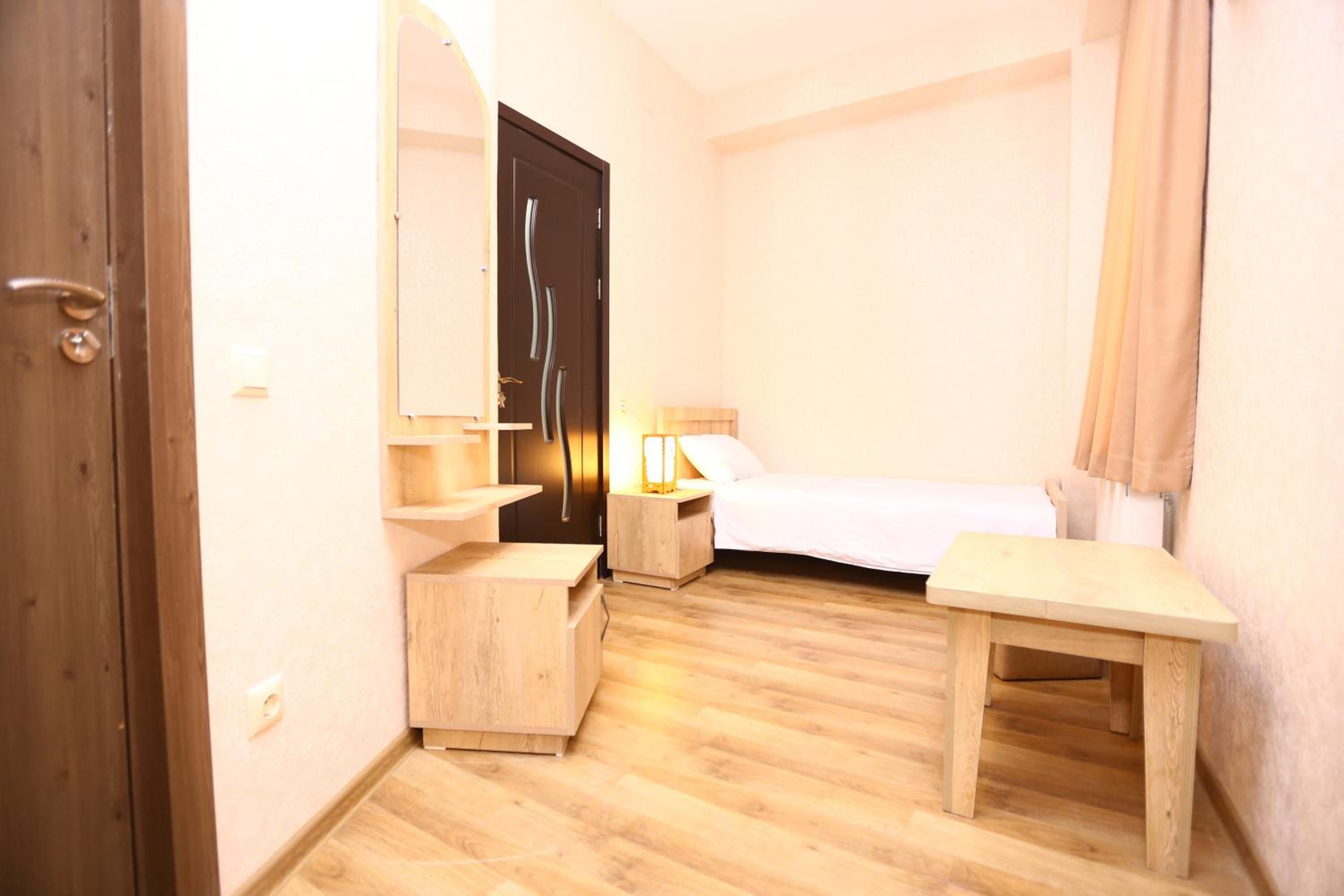 В ванной комнате есть биде-лейка. Одноместный номер небольшой, но комфортный: есть место для вещей, зеркало, кондиционер. Также предоставляется бутылка воды.