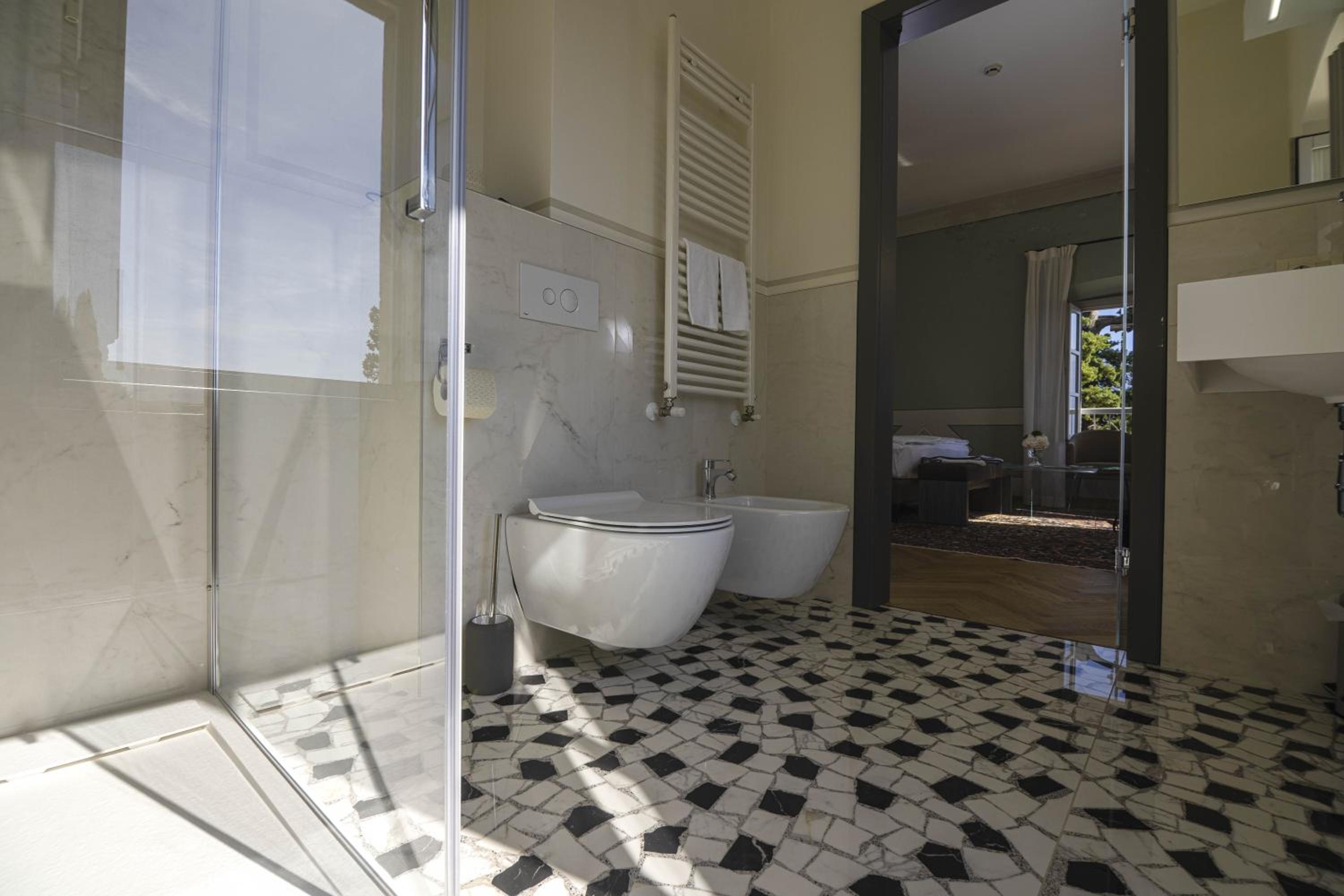 Zentrale Lage, eigener, nachts abgeschlossener Parkplatz, eigener Abstellraum für Fahrräder; toll renovierte Villa, sehr zuvorkommendes Personal