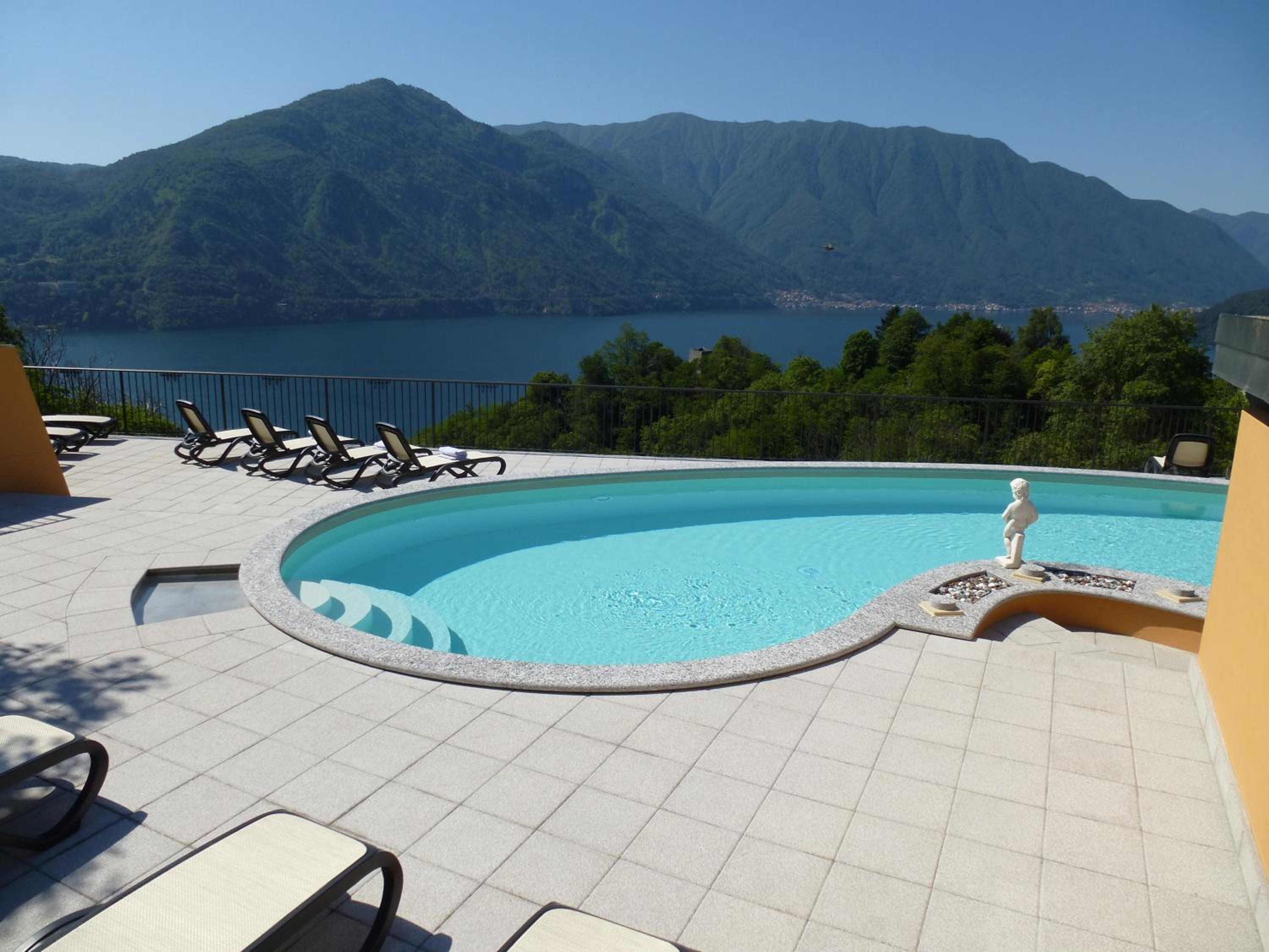 la vue en panorama sur le lac de Come, belle terrasse, facile d'accès, belle piscine, hôtel un peu suranné, mais c'est ce qui fait son charme à l'italienne. la gentillesse de tout le personnel, le restaurant est excellent, le calme loin de l'effervescence des villes touristiques et pourtant situé dans une ville de renommée du Lac. nous avons pris tous nos repas sur place, ce qui n'arrive jamais pendant nos vacances, la carte est super, proposition d'une demi-pension mais trop copieuse pour nous. j'ai entendu parler de leur minestrone excellent, et j'en ai parlé, le lendemain je l'avais dans mon assiette, fabuleux....belle ambiance familiale, tout le monde parle français. besoin d'être véhiculé, car éloigné du centre, mais on a qu'une envie: rester sur place! parking sur place en sous-sol ou à l'entrée de l'hôtel.