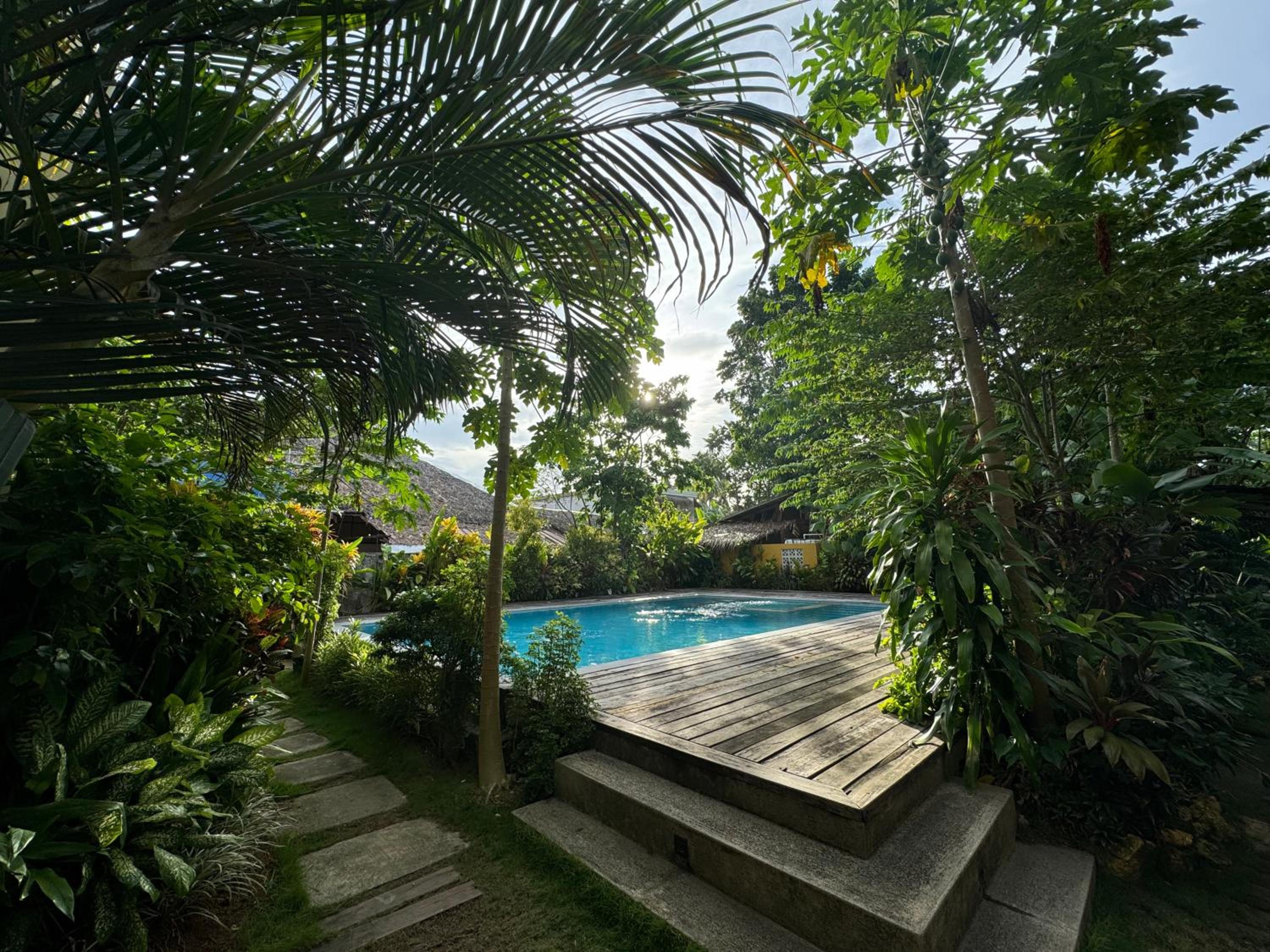 Tolle Unterkunft mit einer schönen Anlage. Das Personal war immer sehr freundlich und man konnte Roller mieten und Ausflüge buchen. Das Hotel hat eine gute Lage nicht weit von General Luna und von Cloud 9 entfernt.