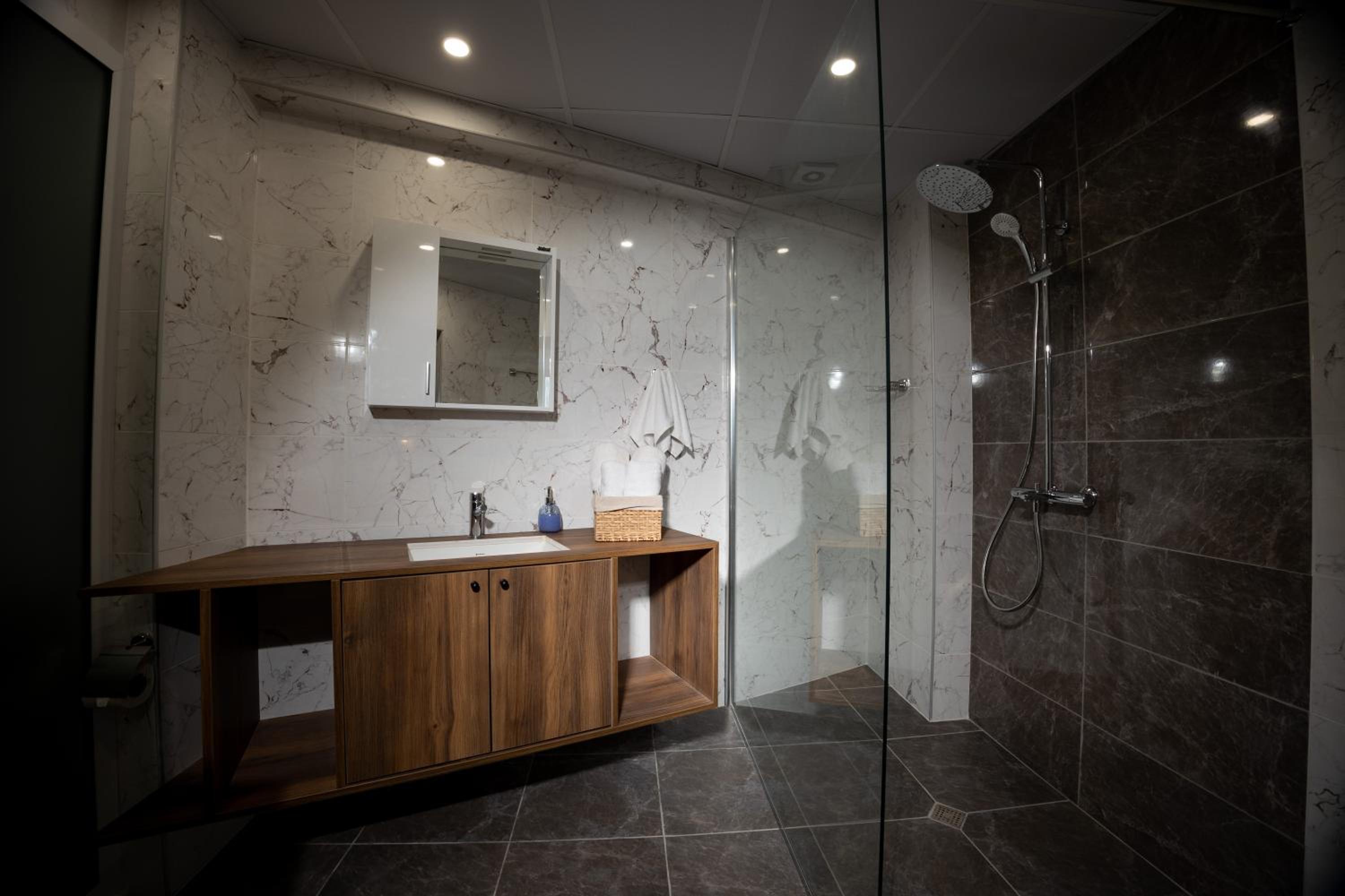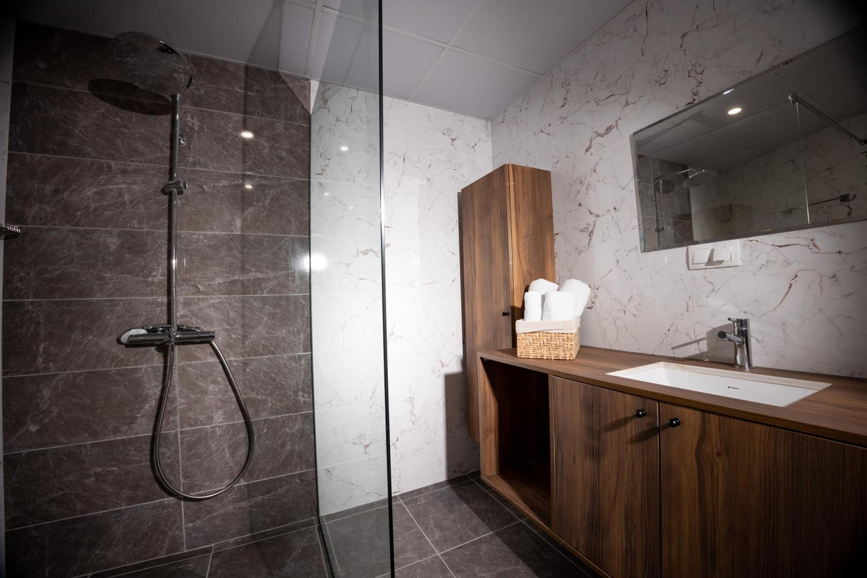 На мой взгляд, номера в отеле не предусмотрены для размещения в зимний период. Наш номер был очень просторным и обогревался одним лишь кондиционером, иного способа отопления не было. Ванная комната была ледяной, заходить в нее было весьма неприятно (я не говорю уже о том, чтобы принимать душ). Спать пришлось с включенным кондиционером. Для меня это неприемлемо. Мы, конечно, наверное, избалованы "зимними" (горнолыжными) отелями с обогревателями/батареями, когда даже приходится окошко приоткрывать (так тепло), здесь лично мне в плане тепла было некомфортно(( Для остальных сезонов, наверняка, размещение в отеле подойдет больше. Но зимой около отеля/в окрестностях так красиво, особенно, когда выпадает снег (как было в нашем случае). Мне кажется, собственнику отеля/администрации стоит предусмотреть что-то дополнительно для отопления номеров (включая ванные комнаты) зимой.