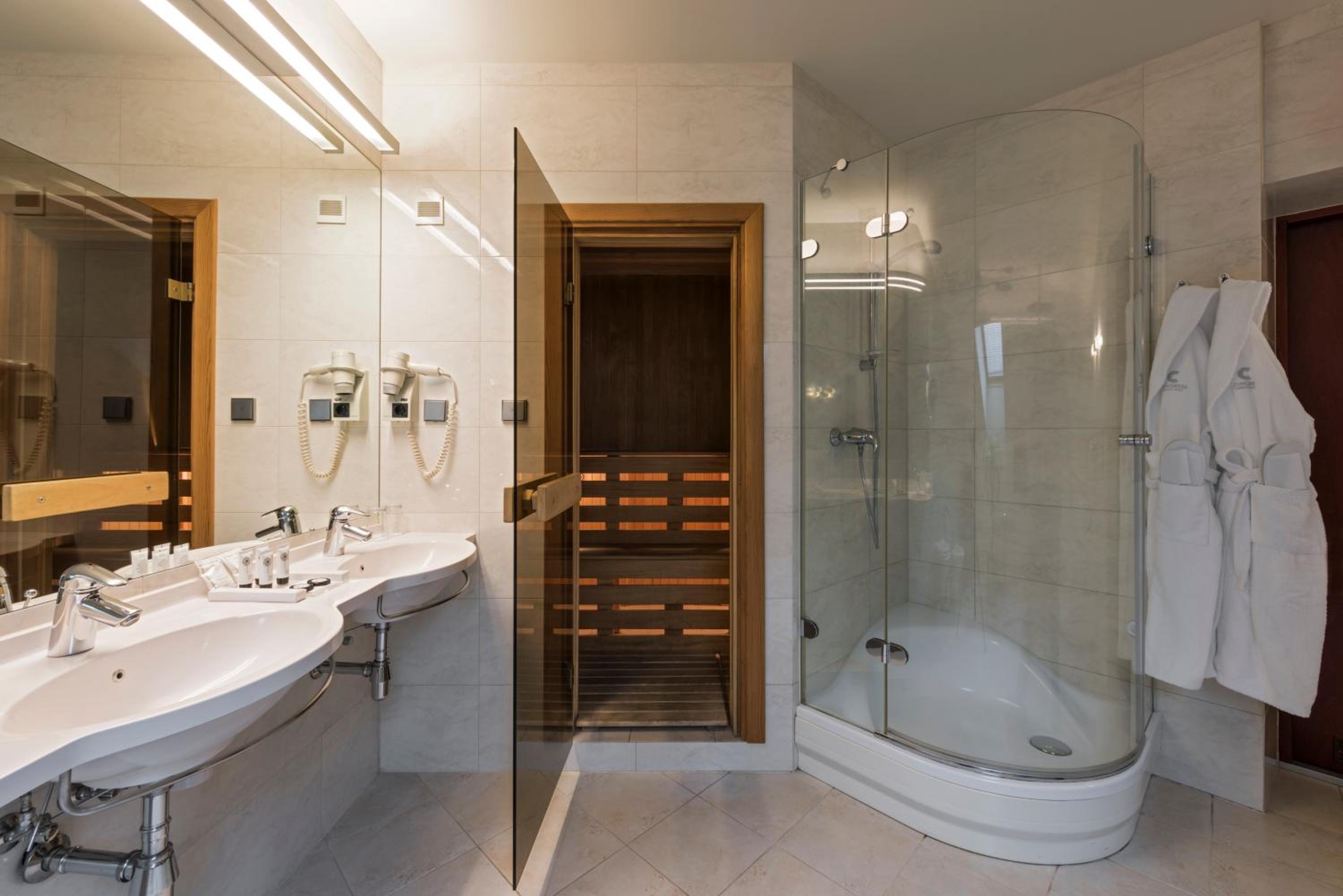 Indulge in Comfort: Experience individually controlled air conditioning, free WiFi, and a minibar in our classically furnished rooms with warm tones and wooden accents.