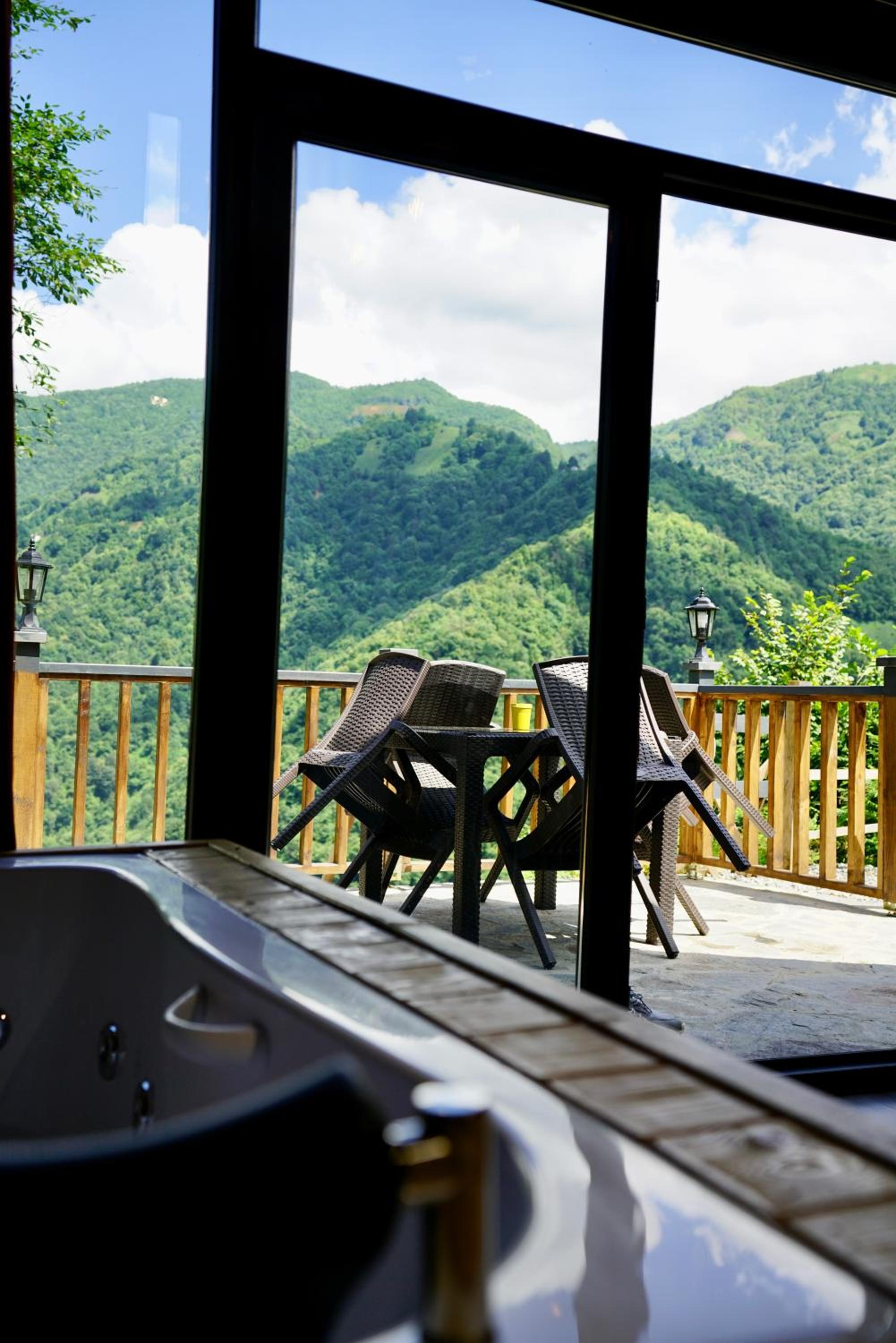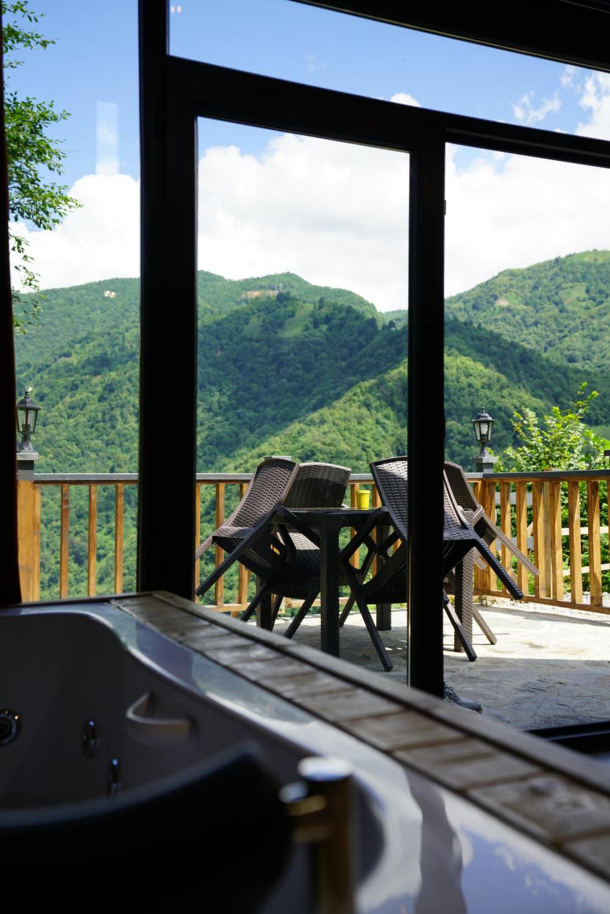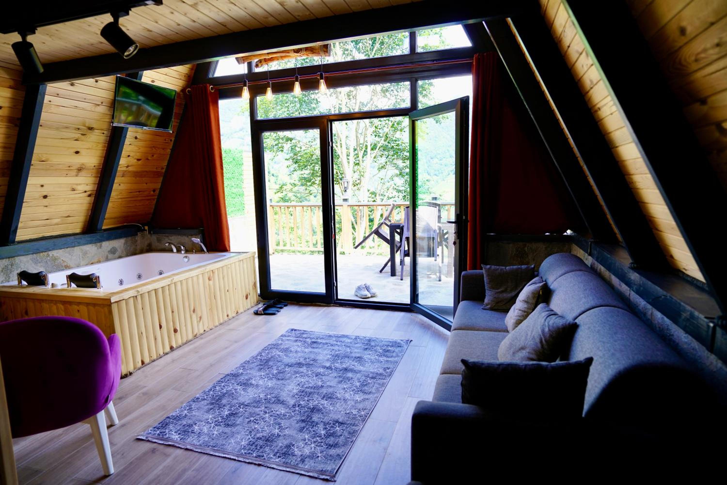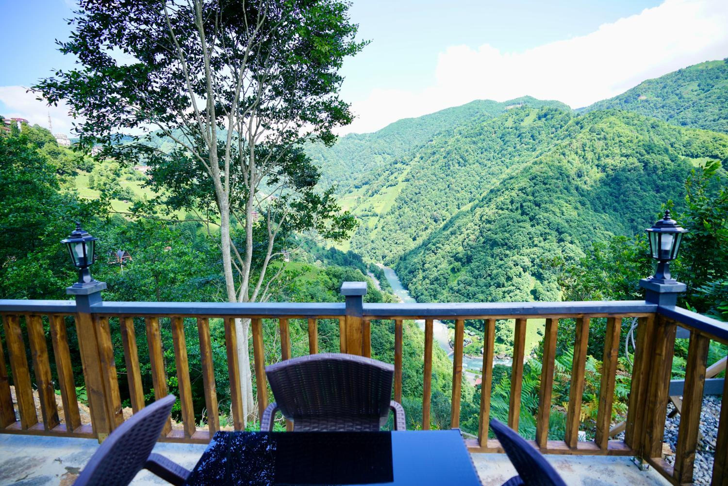 LUSER BUNGALOW, nestled in Ardeşen, boasts a charming balcony overlooking the tranquil river, offering a serene retreat. The property provides a well-equipped kitchen, cozy living area, and a private entrance for a homely feel.
