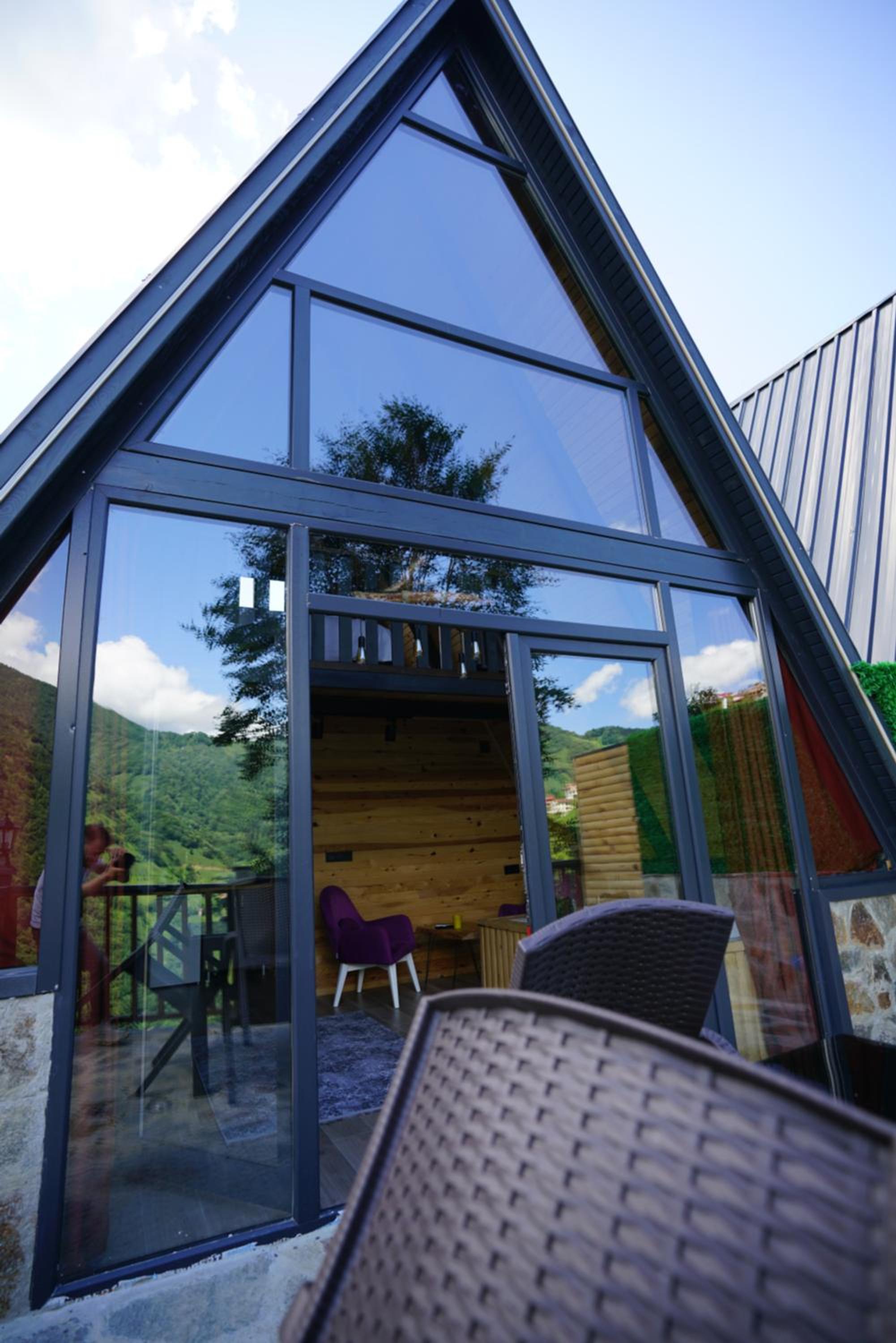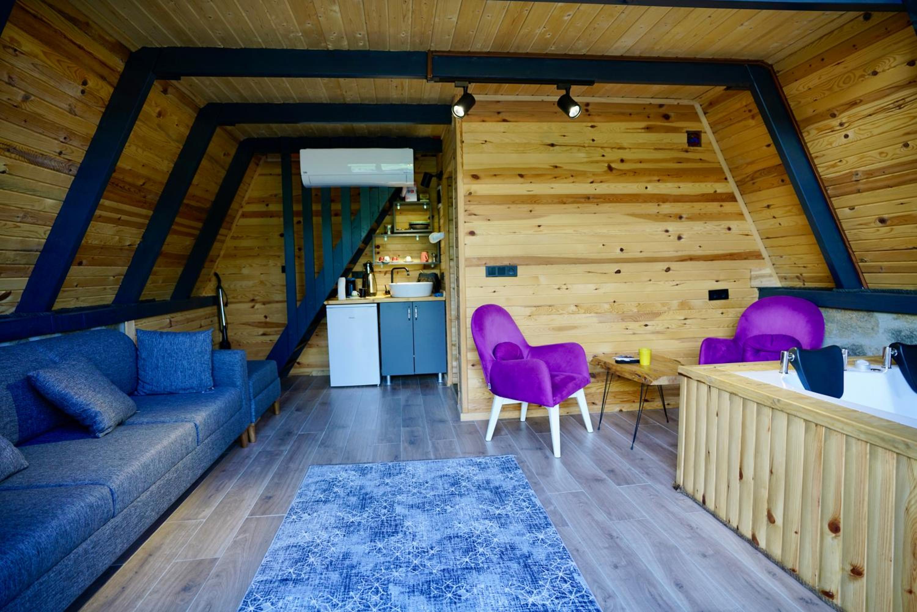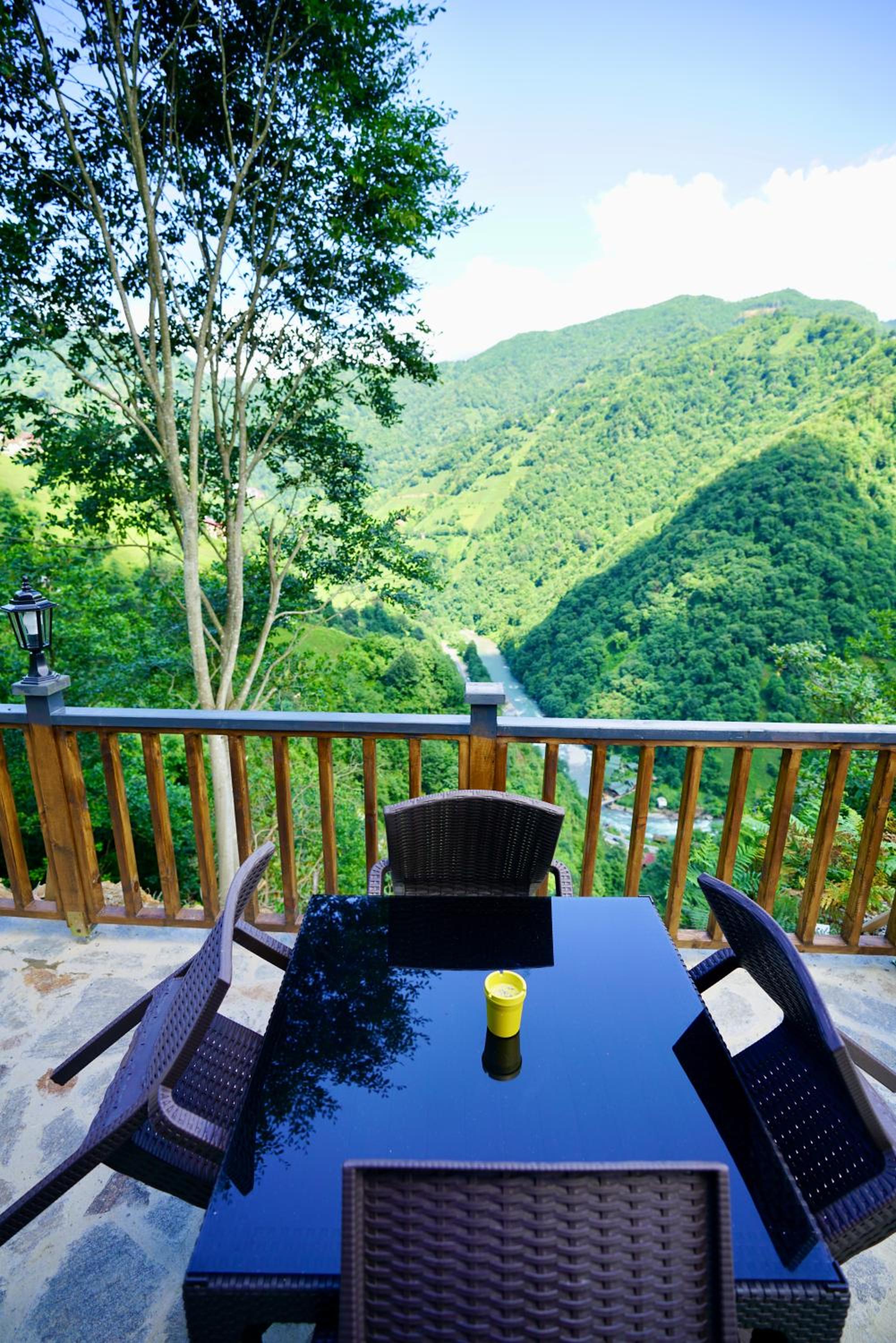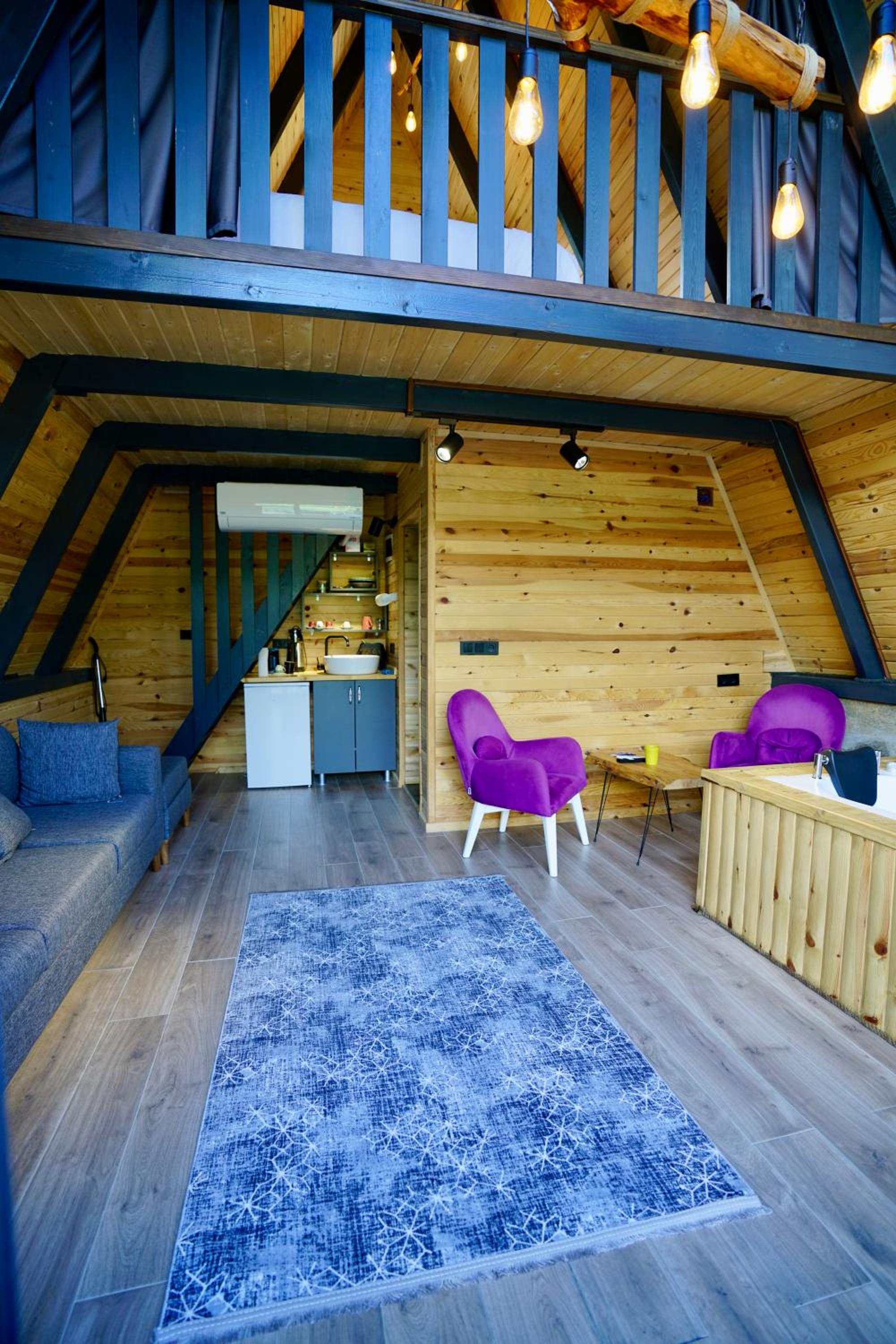 LUSER BUNGALOW, nestled in Ardeşen, boasts a charming balcony overlooking the tranquil river, offering a serene retreat. The property provides a well-equipped kitchen, cozy living area, and a private entrance for a homely feel.