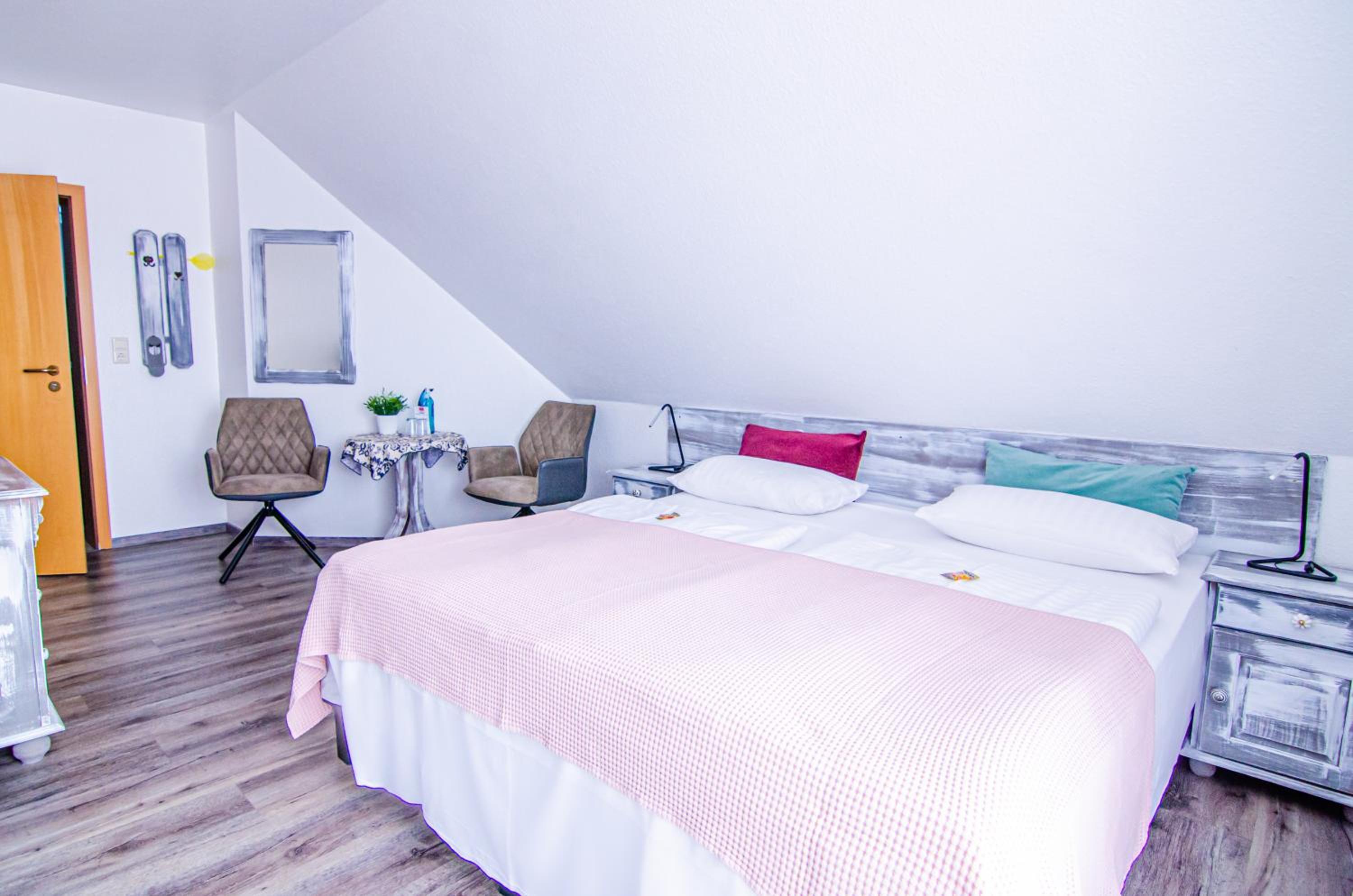 Die Zimmer sind extrem klein und für außerhalb der Saison eigentlich zu teuer. Mit knapp 190 cm habe dauernd Kontakt zur Dachschräge gehabt. Meinen Sommerurlaub möchte ich hier nicht verbringen.